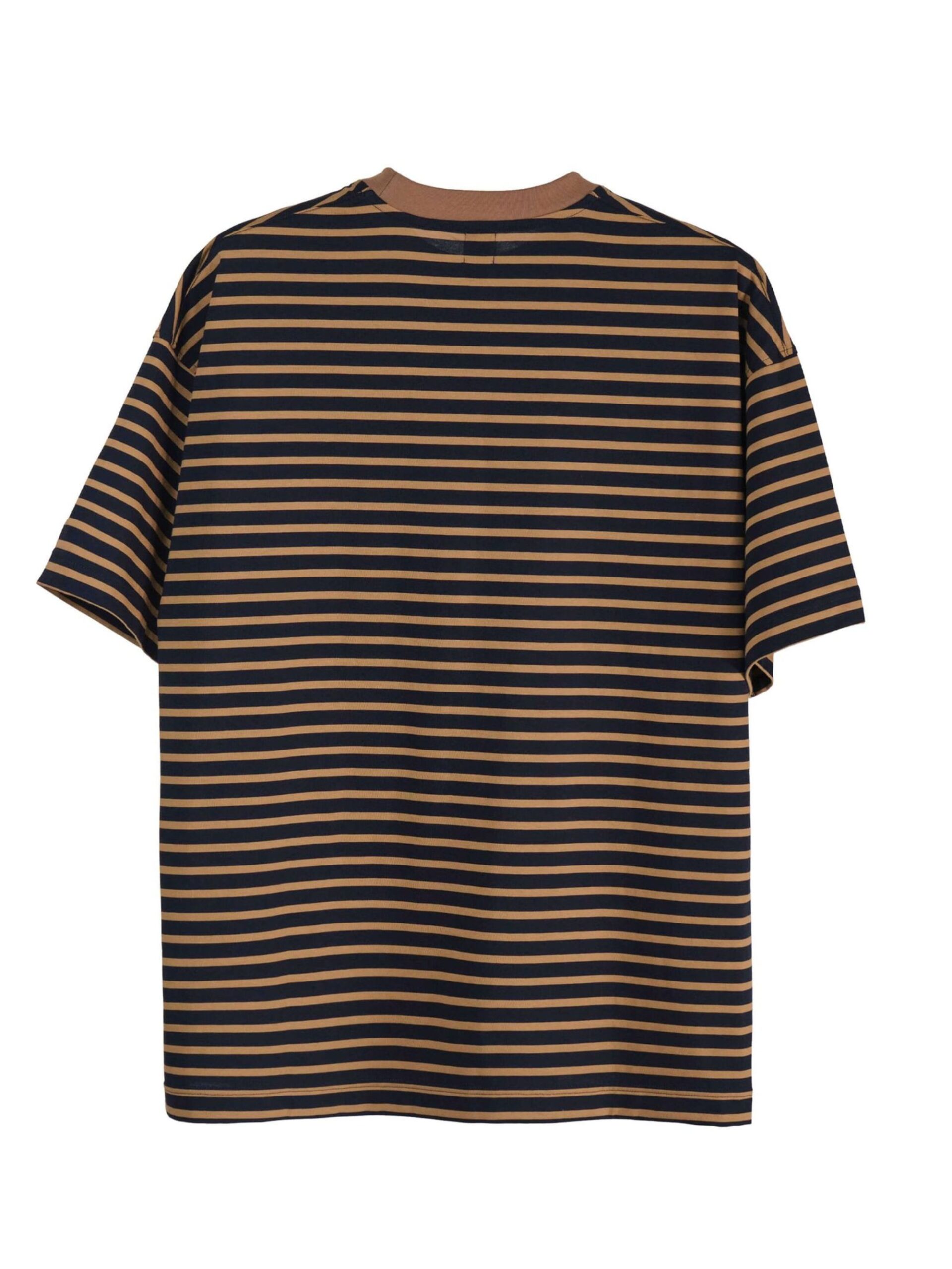 BROWN SOFT COTTON BORDER STRIPE TSHIRT (K8139302)