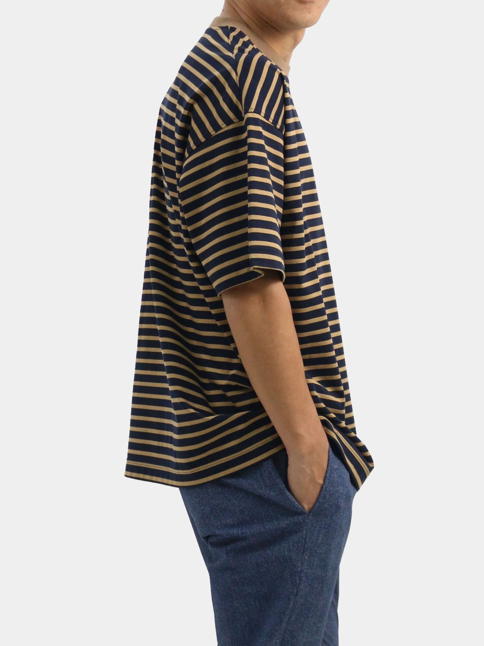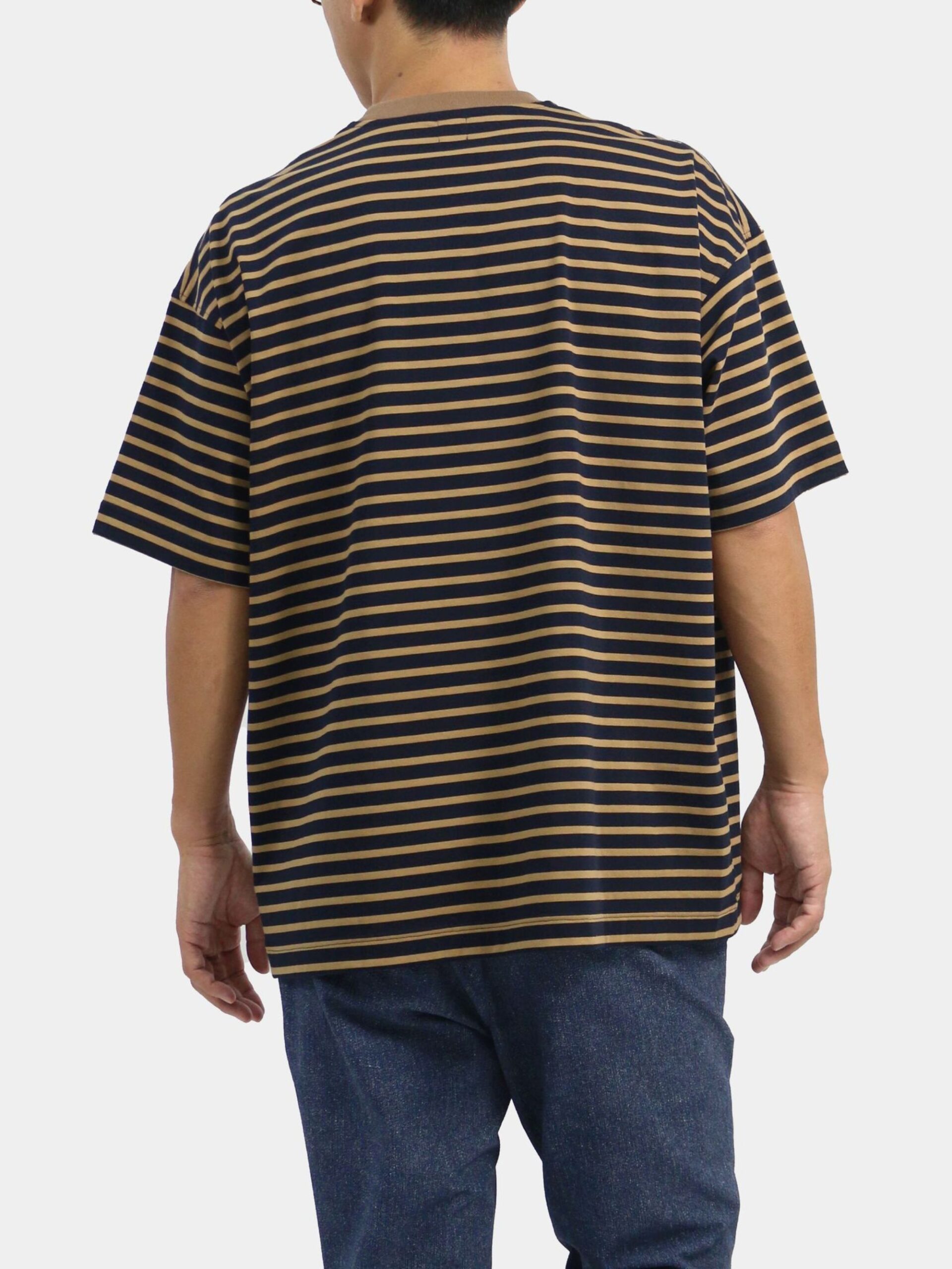 เสื้อยืด ผ้า Jersey cotton เนื้อนุ่ม ผลิตจากเส้นใยด้ายฝ้ายเส้นยาวจากอินเดีย เสื้อยืดตัวนี้ไม่ได้มีฟังก์ชั่น แต่เน้นความสดใส ให้อารมณ์ต้อนรับความเป็น Spring ที่กำลังจะมาถึง จะเป็นลาย Border stripe มีงานปัก impala emblem บริเวณชายเสื้อฝั่งซ้าย ทรงเสื้อรุ่นนี้ปรับจากทรง Oversize ให้ความกว้างของแขนและช่วงตัวเล็กลง เพื่อให้ดูกระชับมากขึ้น