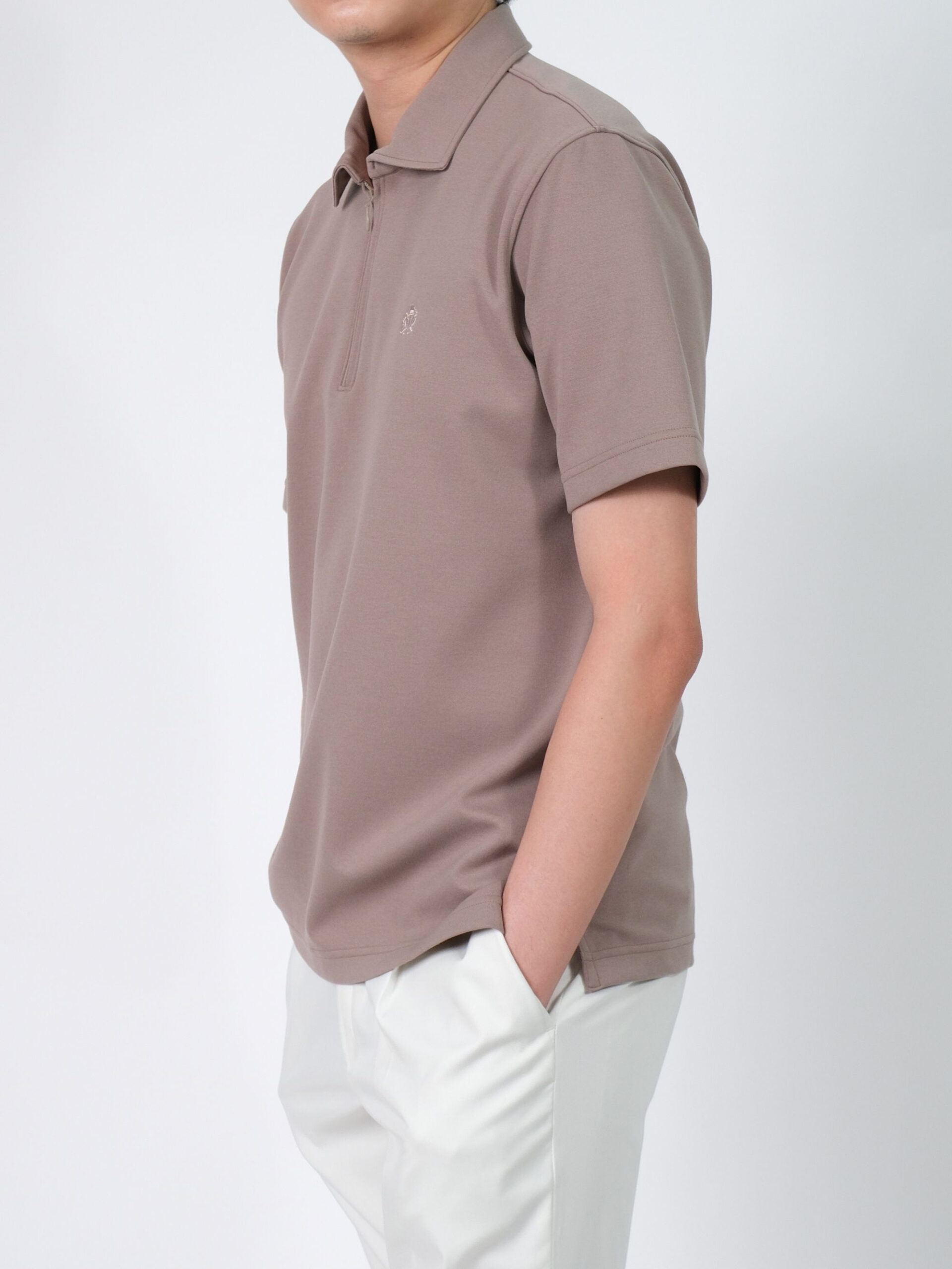 STRETCH PUNCH FABRIC ZIPPER POLO SHIRT