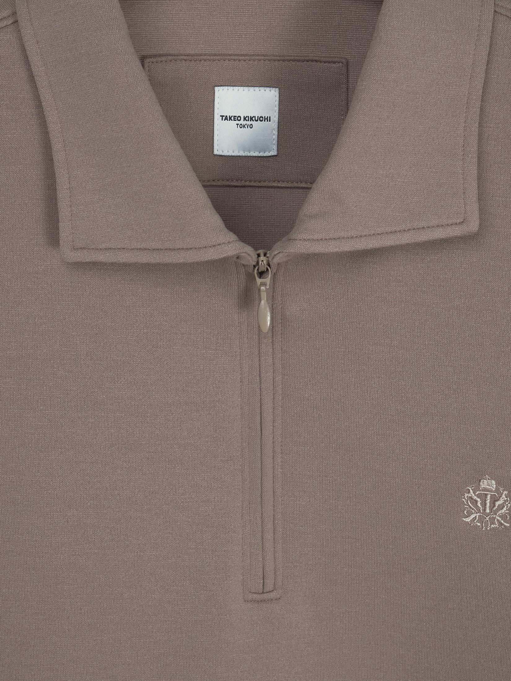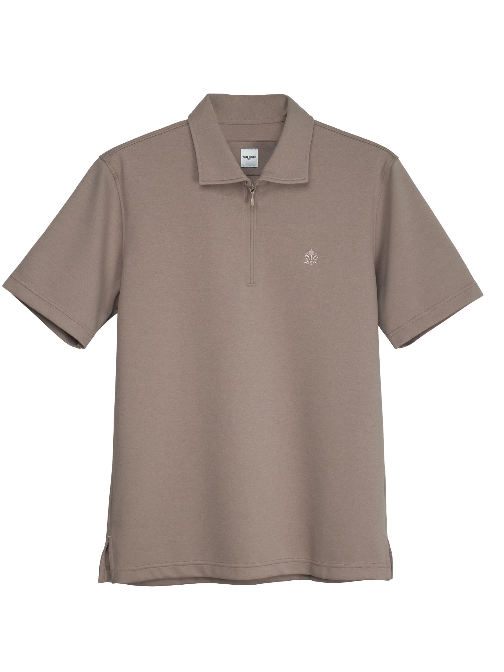 BROWN STRETCH PUNCH FABRIC ZIPPER POLO SHIRT (K8133999)