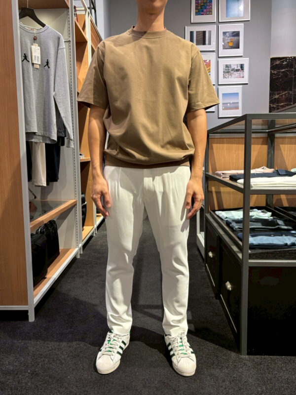 จับคู่กับกางเกงทรง Easy Pants สีขาว รุ่นขายดี ‘RELY WAITZ FUNCTIONS EASY PANTS’ กางเกงที่ผลิตจากพลาสติกรีไซเลิค ดีไซน์คลาสสิก เสริมลุคให้ดูเรียบหรู ตัวกางเกงมีการออกแบบให้กันการโปร่งแสงกันโป้ ผ้ามีคุณสมบัติป้องกันแสงยูวี แห้งเร็ว ยับยาก และให้ความรู้สึกเย็นสบาย ขนาดที่สวมใส่ Size: 02/M รอบเอว 72 cm, ความยาวกางเกง 100 cm, สะโพกกว้าง 107.4 cm, ปลายขา 27.5 cm.
