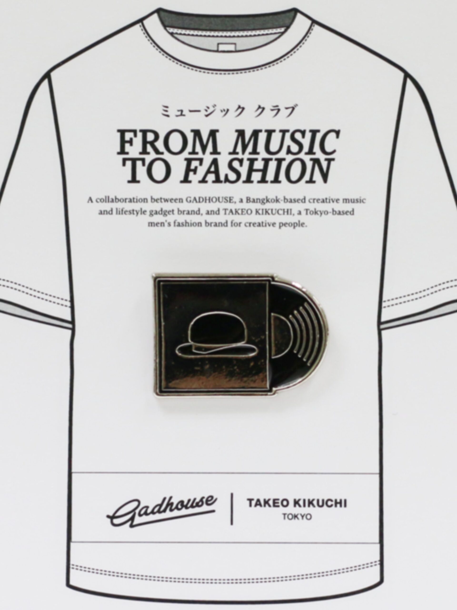 แบรนด์ Gadhouse แบรนด์ที่มีชื่อเสียงทางด้านเครื่องเล่นแผ่นเสียงและแผ่น Vinyl ออกแบบร่วมกับแบรนด์ Takeo kikuchi แบรนด์เสื้อผ้าแฟชั่นผู้ชายจากประเทศญี่ปุ่น ภายใต้คอนเซ็ปท์ “FROM MUSIC TO FASHION” ด้วยวัสดุโลหะเกรดพรีเมียม สามารถติดบนกระเป๋าผ้า และเสื้อผ้า เพื่อช่วยให้การ Styling ในแต่ละวันดูไม่น่าเบื่อ และมีกิมมิกที่น่าสนใจ