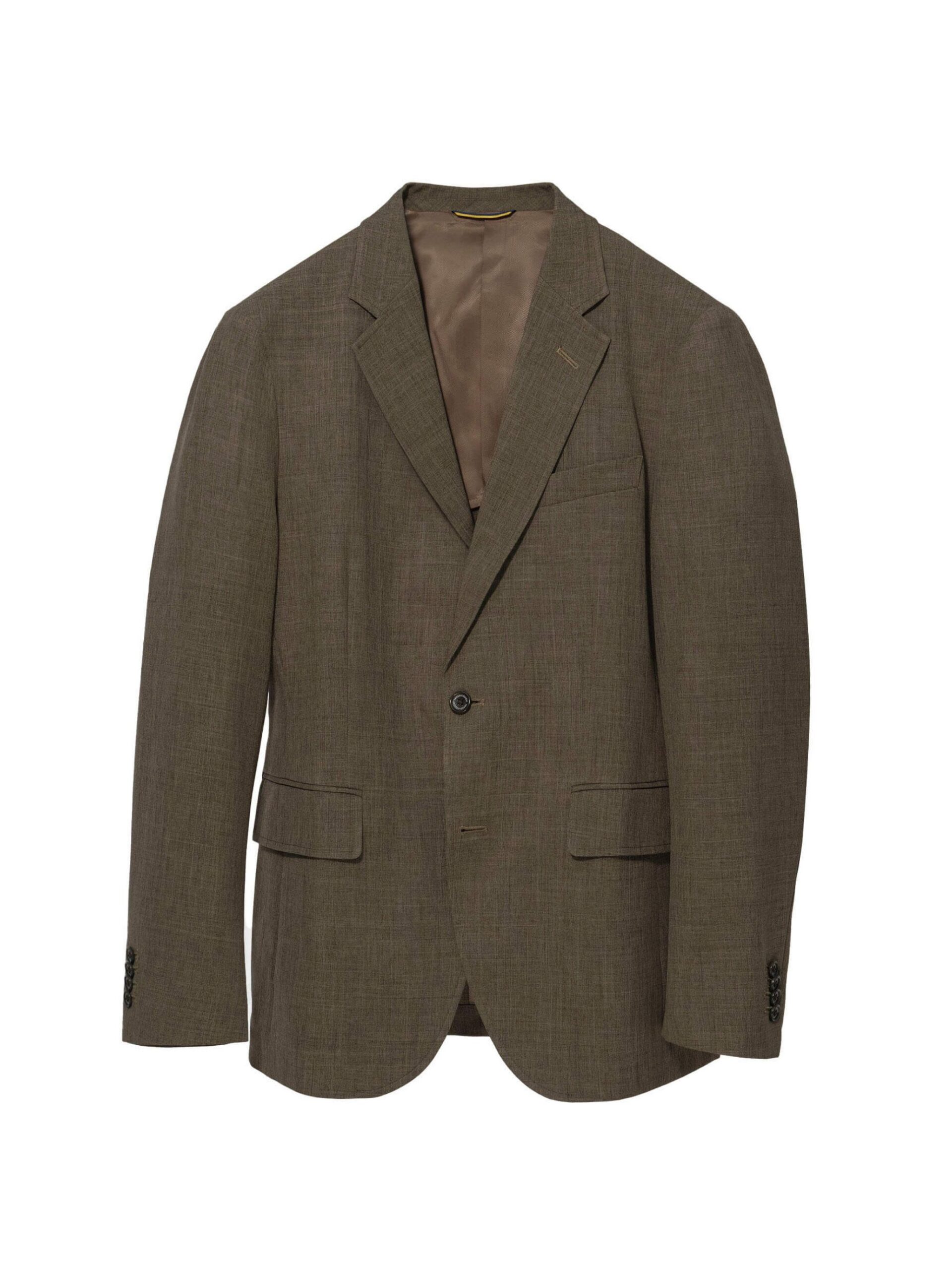 แจ็คเก็ตสูท ผ้า polyester ที่มี texture และผิวสัมผัสเหมือนผ้าใยธรรมชาติ ทำทรีทเทนต์มาอย่างพิเศษ เช่น water repellent (สารเคลือบกันน้ำ), crease resistant (กันยับ), cool touch (สัมผัสเย็นสบาย) ผ้าและกระดุม import มาจากประเทศญี่ปุ่น ทรง classic ตามแบบฉบับของ city setter สามารถแยกชิ้นใส่กับกางเกงได้