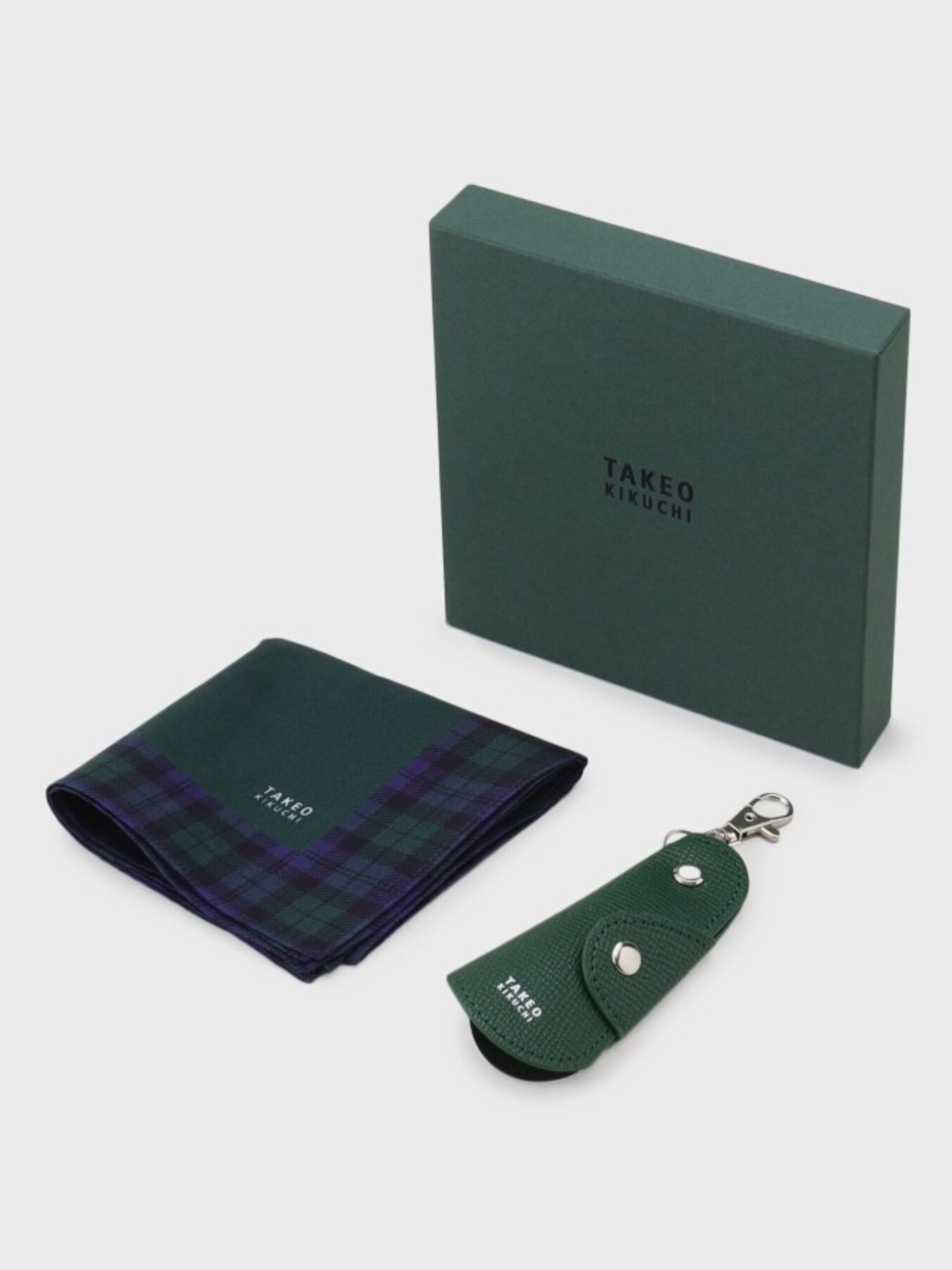 The shoehorn is made of elegant synthetic leather and metal, and the handkerchief has a plain panel-like check pattern printed on it. Each handkerchief comes in a catchy pasted box that matches the color of the handkerchief.