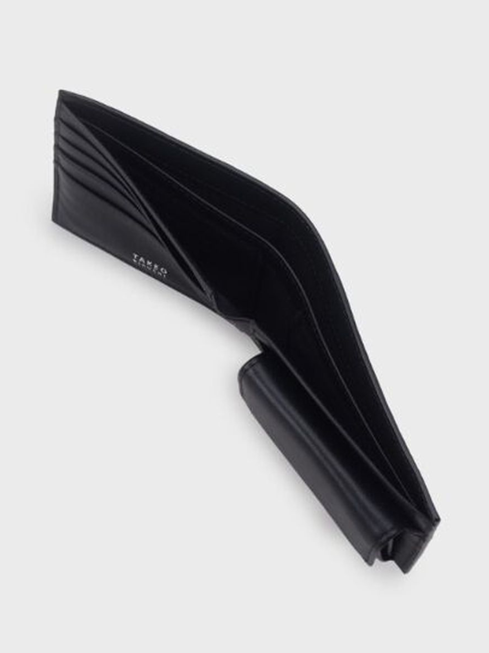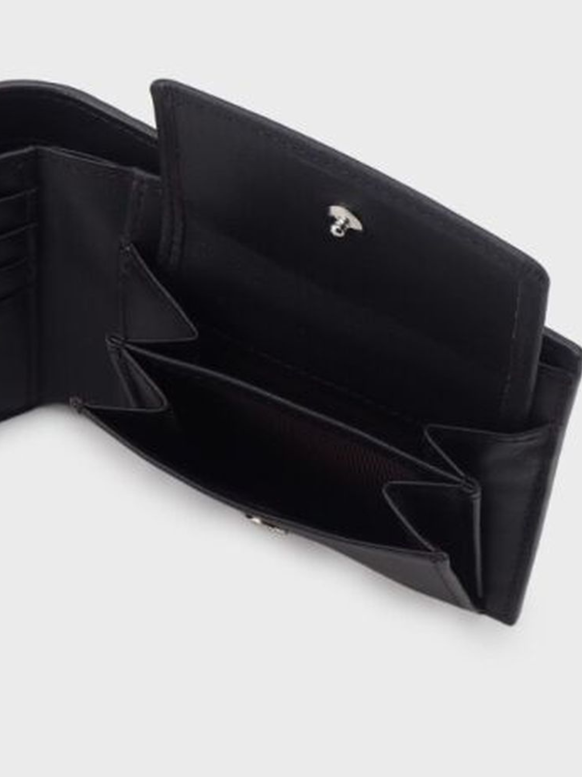 กระเป๋าสตางค์พับสองตอน พร้อมดีไซน์บล็อกลายเส้น ผลิตจากหนังอิตาลีแบบนุ่มและเรียบหรู