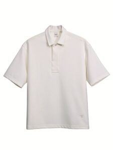 เสื้อโปโล 2Way Collar ทรงหลวม สามารถใส่ได้สองแบบ แบบปิดคอ หรือแบบ Open Collar ก็เพิ่มความ Casual ขึ้นมาได้ มีดีไซน์เพิ่มขนาดตัว Placket ให้ใหญ่กว่าปกติ แต่ยังตอบรับกับความเรียบง่ายและความเงาของผ้า มีงานปัก TK ตรงชายเสื้อ
