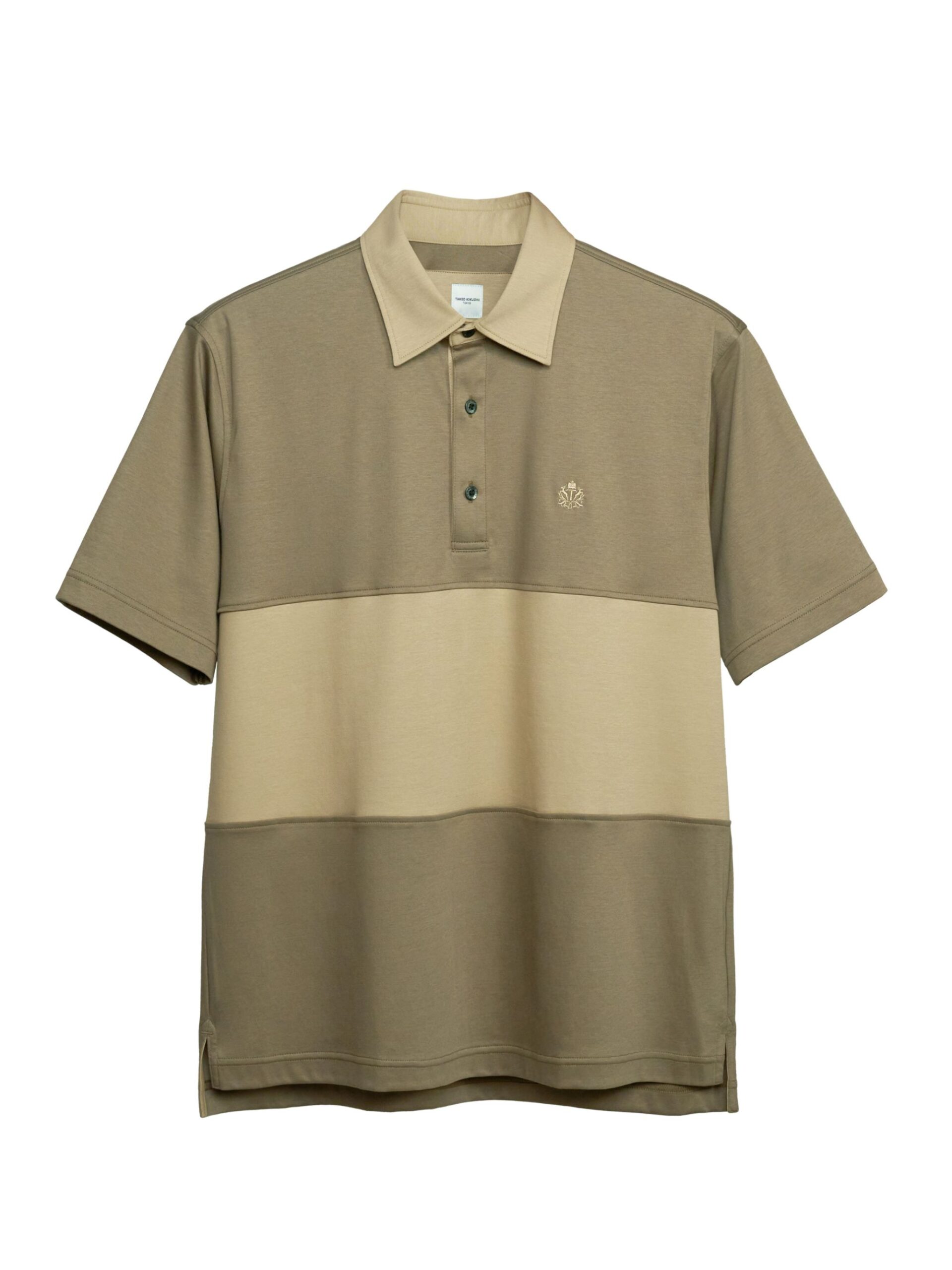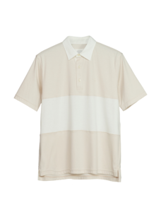 Polo shirt ที่ตัดต่อตรงช่วงกลางตัวด้วยผ้าสีต่างที่มีสรในทางเดียวกัน ตามสี concept ของ season นี้ นอกจากช่วงกลางตัวแล้ว ปกและสาบใน ก็จะเป็นสีต่างเช่นกัน ให้ดูเป็นแนว Classic สามารถ match ได้ง่าย