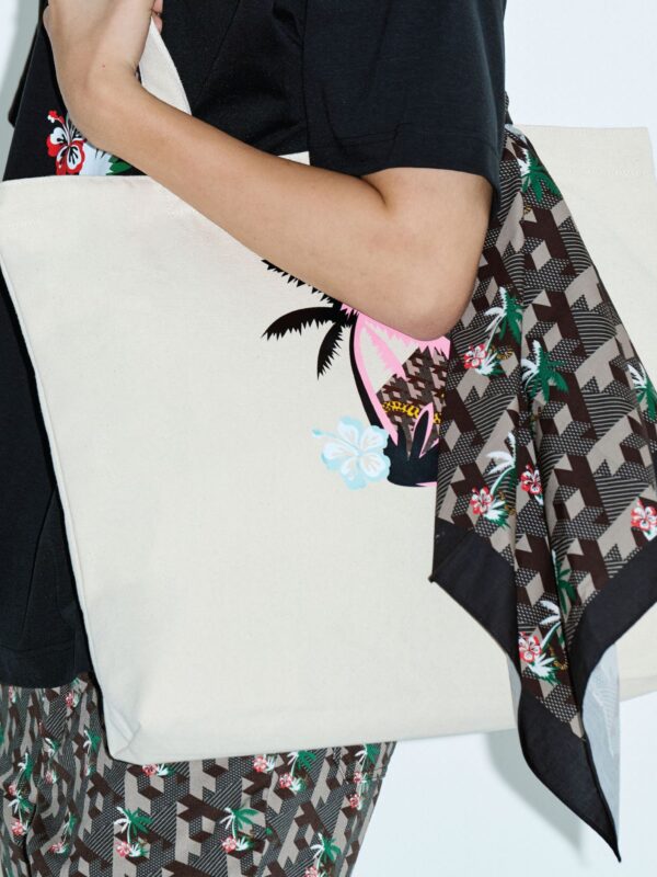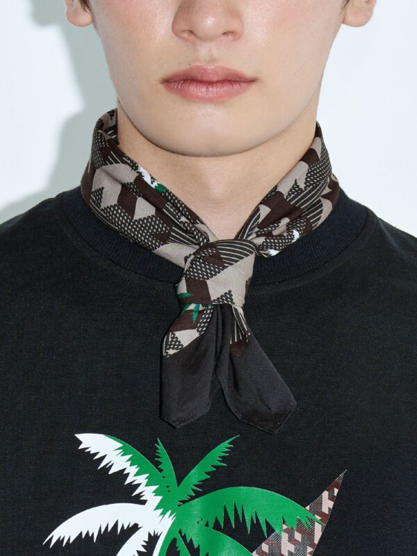 Bandana หรือผ้าสำหรับใช้ผูกสีสันจัดจ้าน ผลิตจากผ้า Cotton เนื้อผ้านิ่ม พิมพ์ลาย Collaboration สามารถนำมาผูกเป็นผ้าพันคอ หรือโพกหัวได้