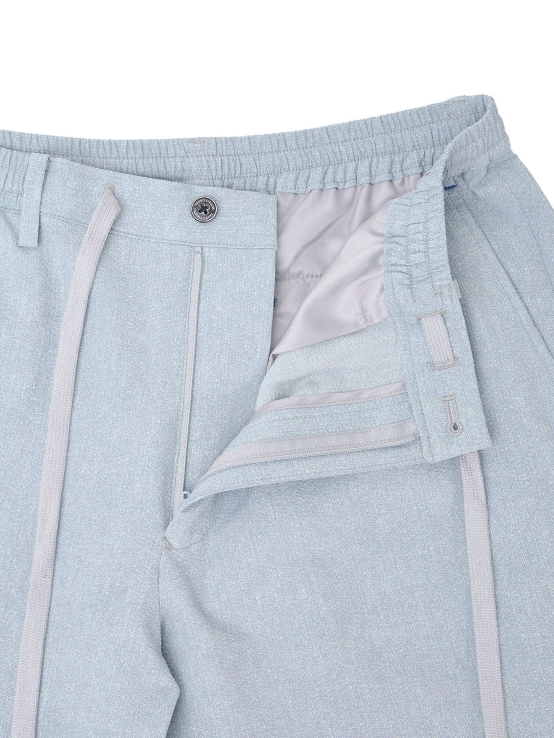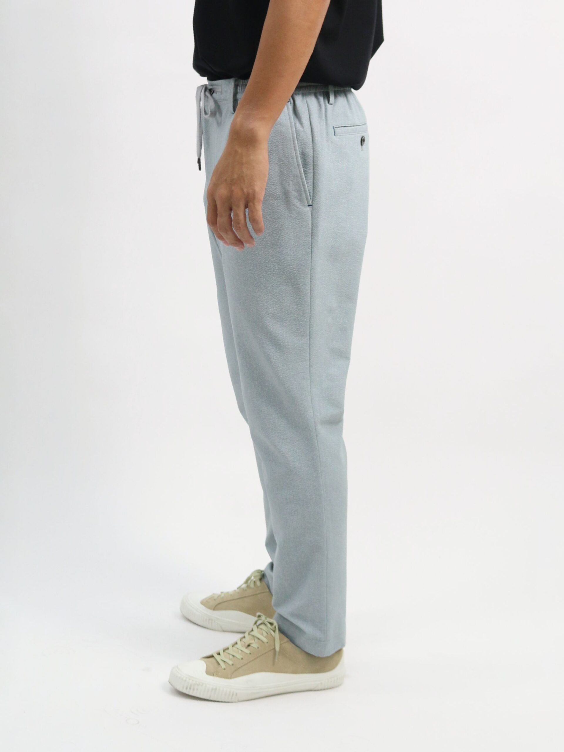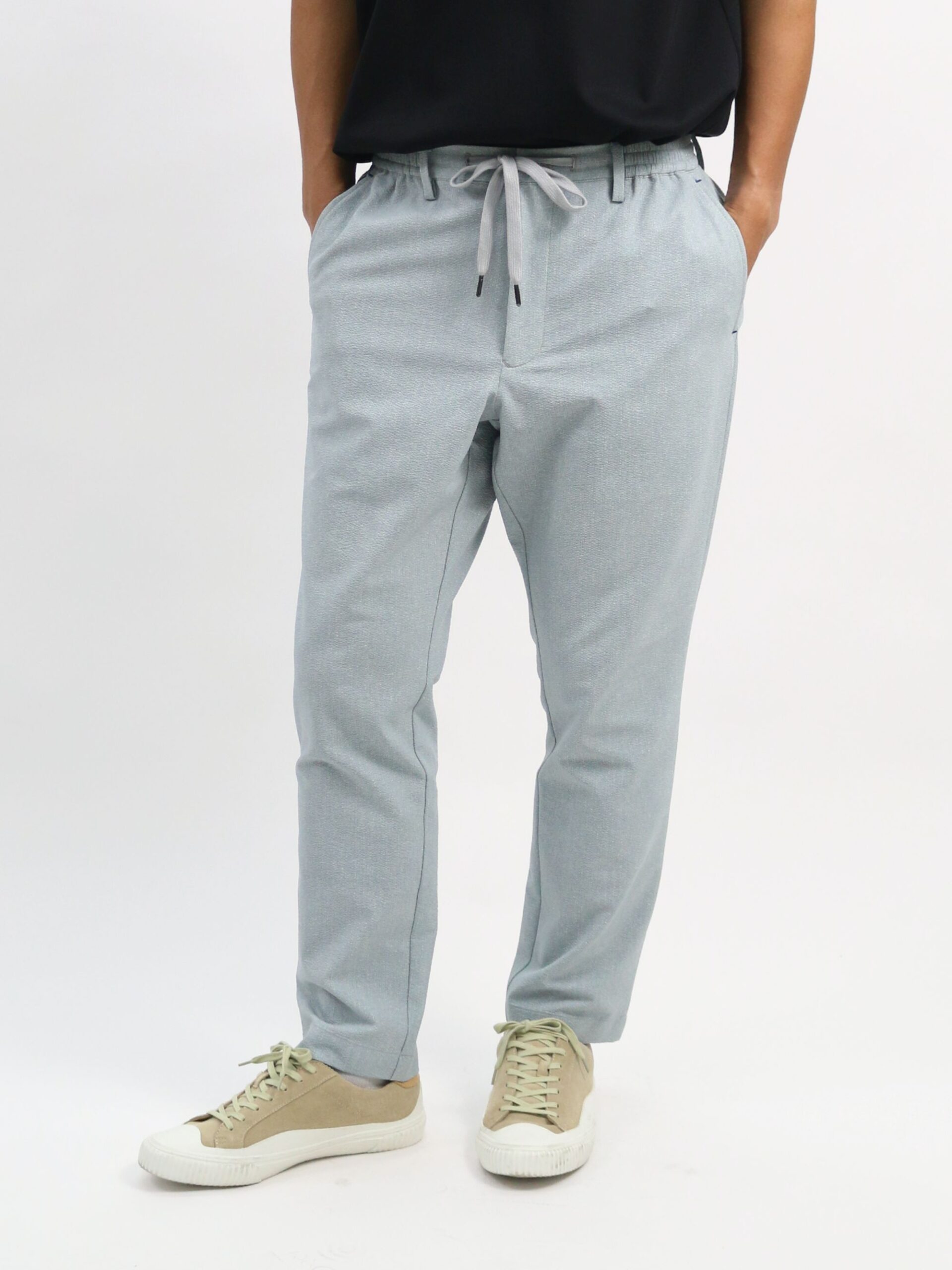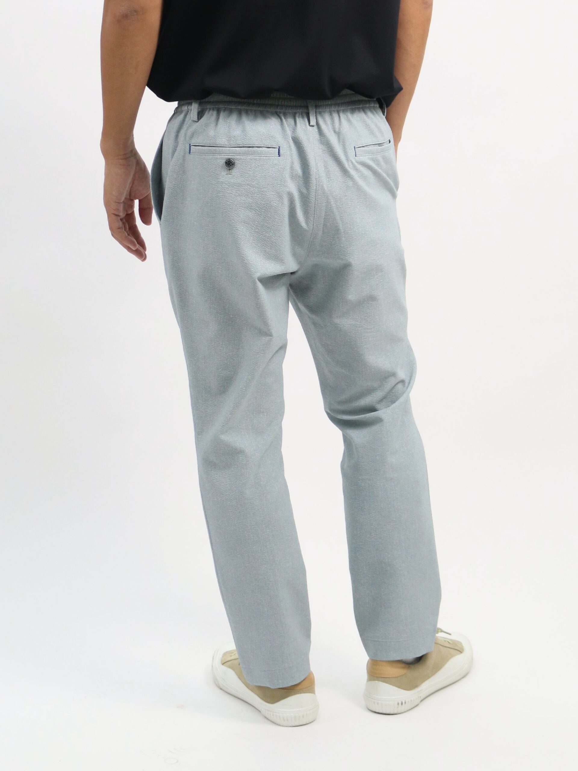 กางเกง Easy Pants ทำจากผ้าโพลีเอสเตอร์ Coolmax Ecomade ซึ่งเป็นโพลีเอสเตอร์รีไซเคิล เป็นมิตรต่อสิ่งแวดล้อม นอกจากนี้ยังมีคุณสมบัติ แห้งไว (Quick Dry), ยืดได้สองทาง (2-Way Stretch) และ Coolmax ที่ช่วยให้สวมใส่แล้วรู้สึกเย็นสบาย เนื้อผ้าเป็นแบบ Sucker ทำให้มีพื้นผิวเป็นลายคล้ายผ้าเดนิม ตกแต่งด้วยด้ายแท็กกิ้งสีต่างๆ เพิ่มดีเทลให้กับดีไซน์
