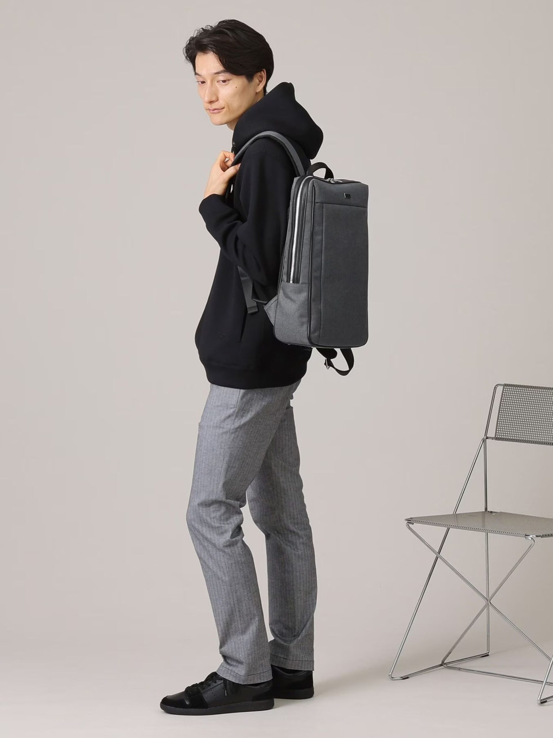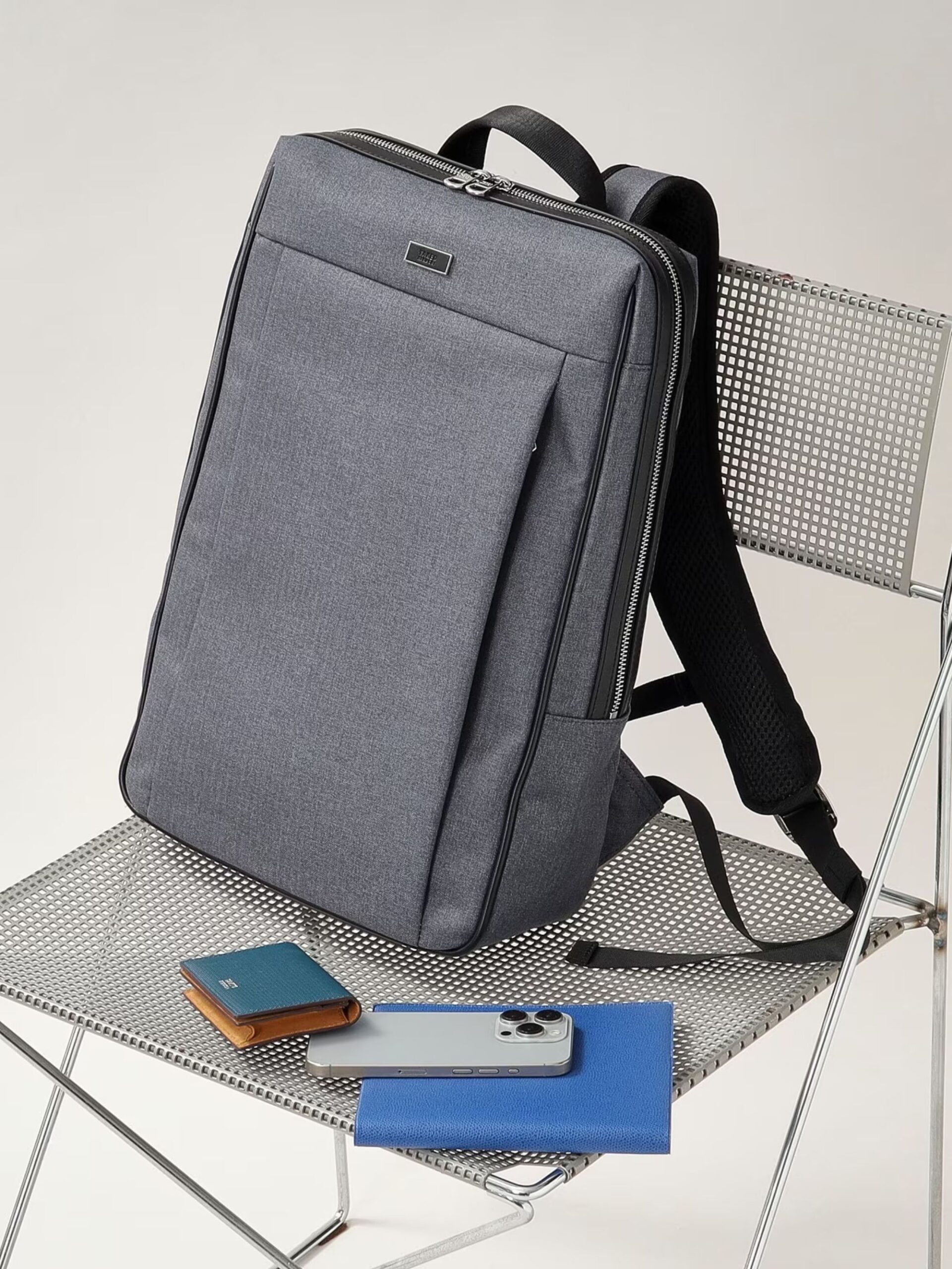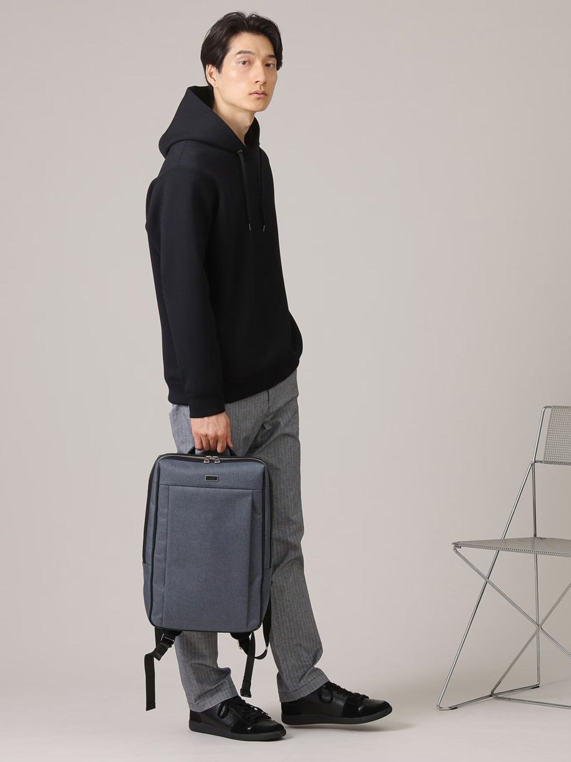 กระเป๋าเป้สะพายหลัง ทำจากผ้าใยสังเคราะห์พร้อมลวดลายลายก้างปลาอัน ออกแบบให้เรียบง่ายและบาง แผ่นโลโก้มีแผ่นโลหะและหนังผสมกันซึ่งให้ความรู้สึกหรูหรา ภายในใช้งานได้ดีและมีช่องใส่ PC ที่สามารถรองรับแล็ปท็อปและแท็บเล็ตได้ ทางแบรนด์ให้ความสนใจเป็นพิเศษกับการบุผ้า เพื่อไม่ให้รอยยับที่ด้านข้างและพื้นผิวมองเห็นได้ชัดเจน