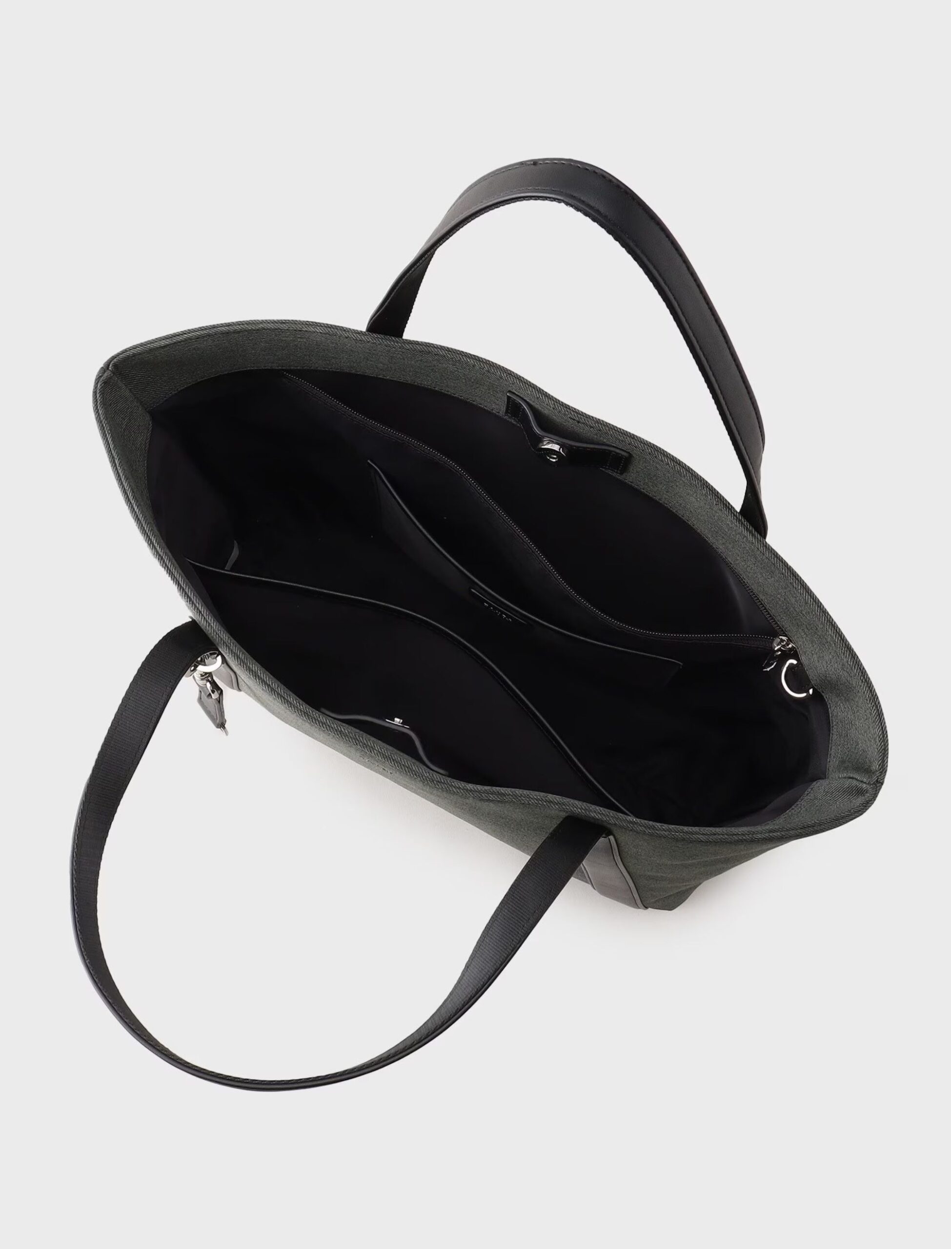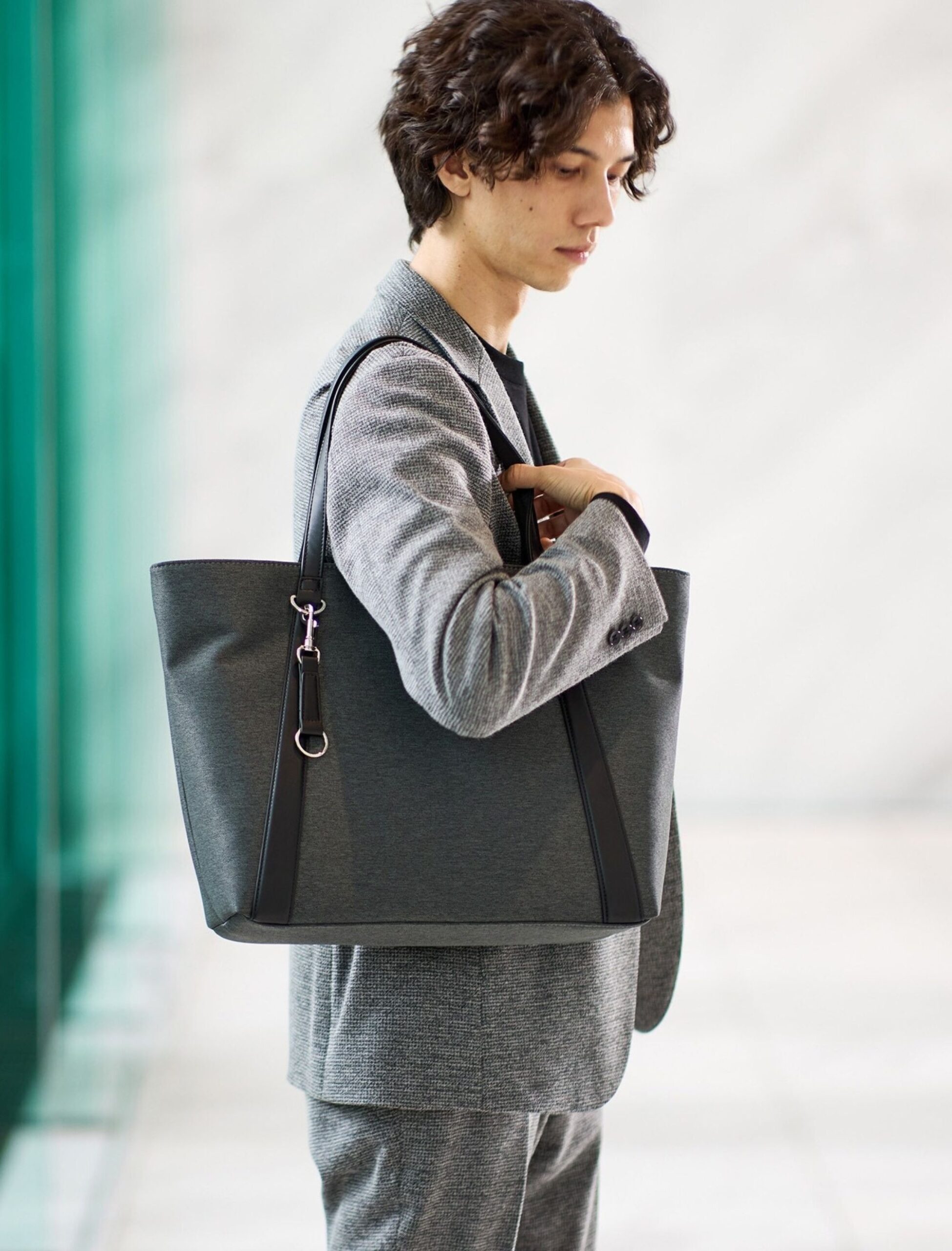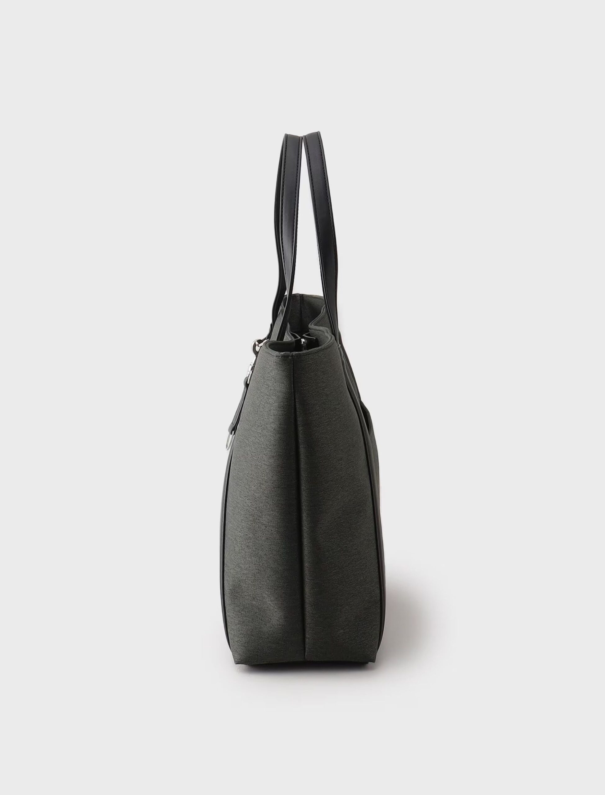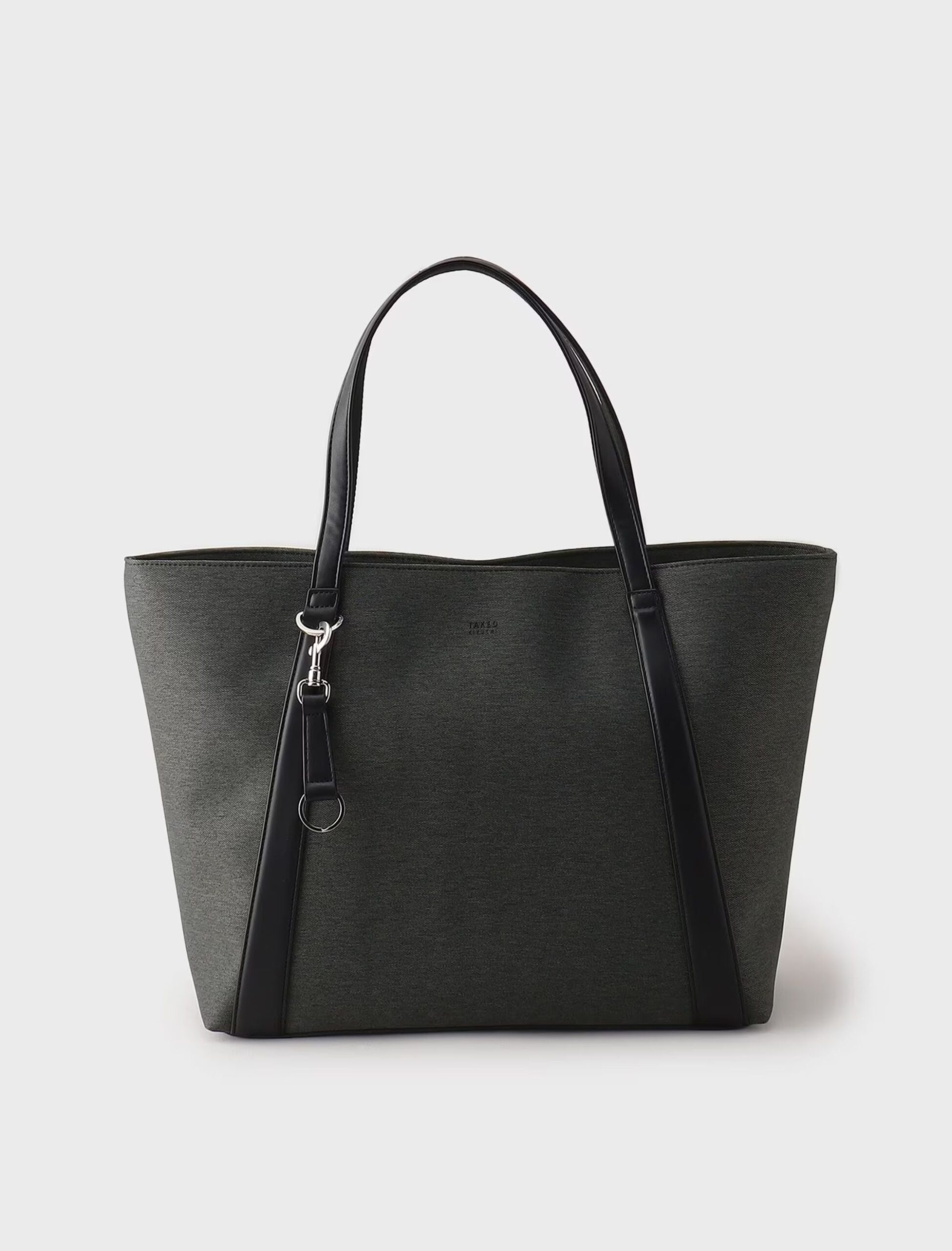 กระเป๋าโท้ทผลิตจาก Polyester ทำให้มีความทนทาน มีดีไซน์ที่โมเดิร์น แต่ยังคงความเรียบง่ายตามสไตล์ Quiet Luxury สามารถใช้ได้ในหลากหลายโอกาสทั้งในวันทำงานและวันหยุด ด้วยวัสดุที่ใช้ทำให้มีน้ำหนักเบา มาพร้อมห่วงสำหรับคล้องกุญแจ
