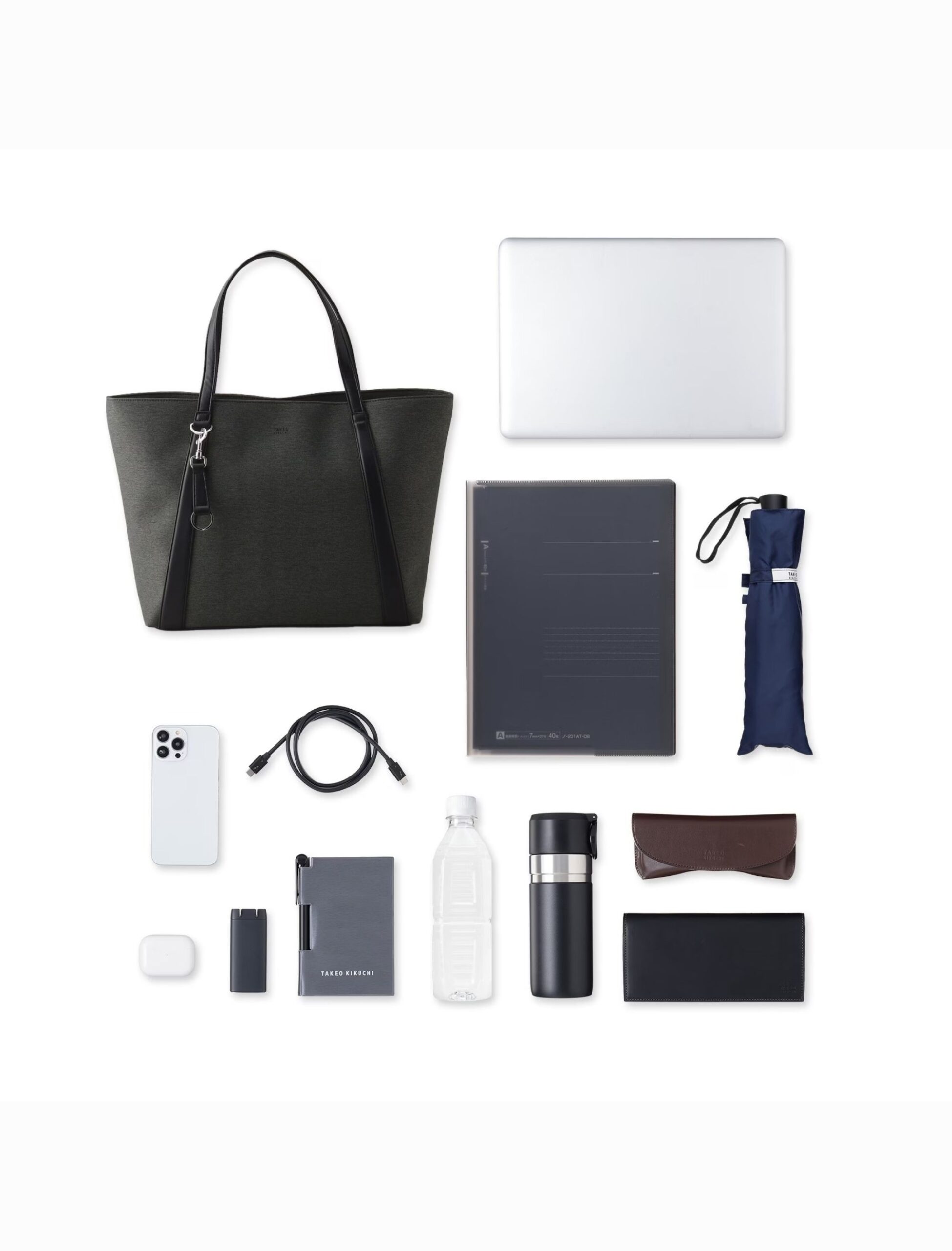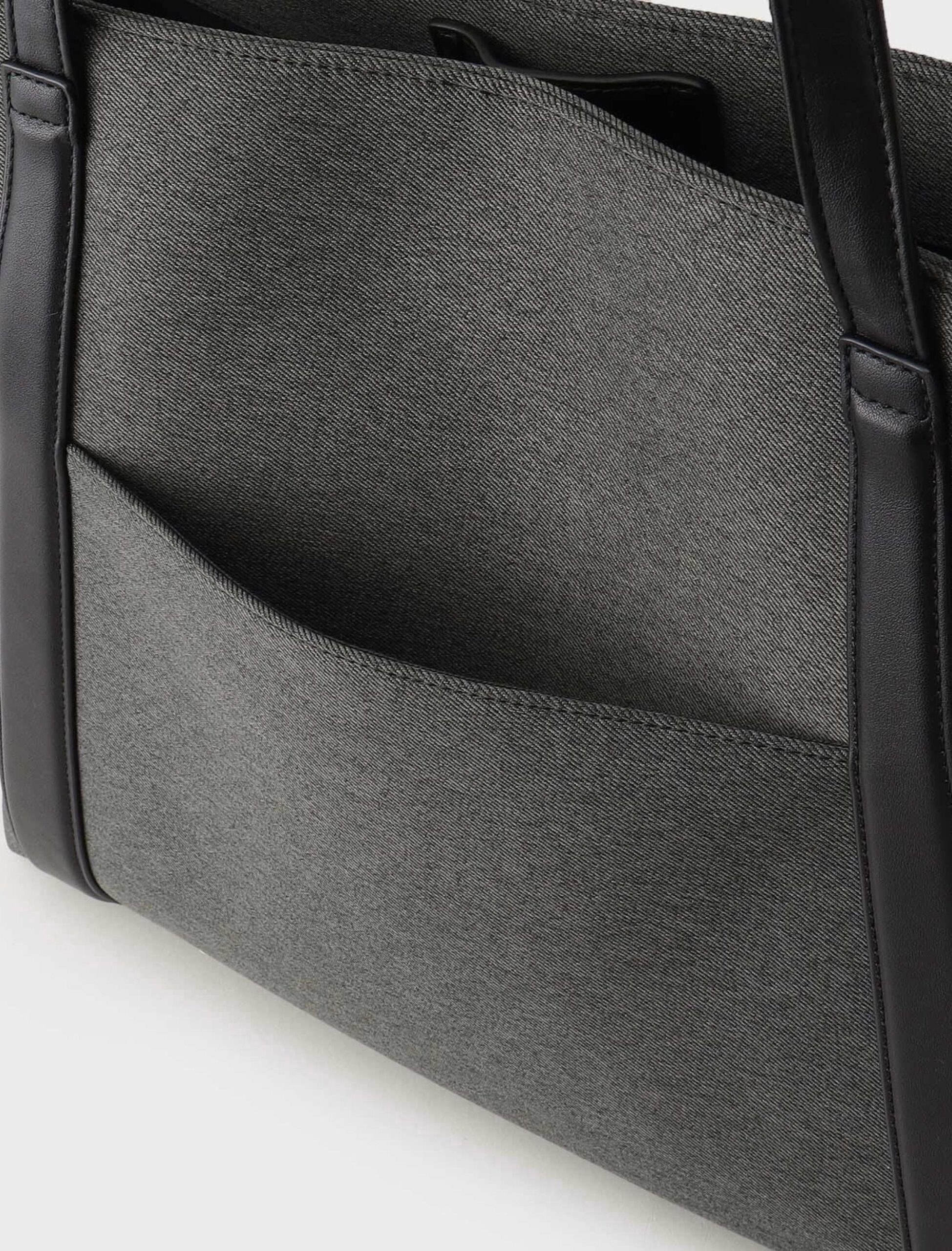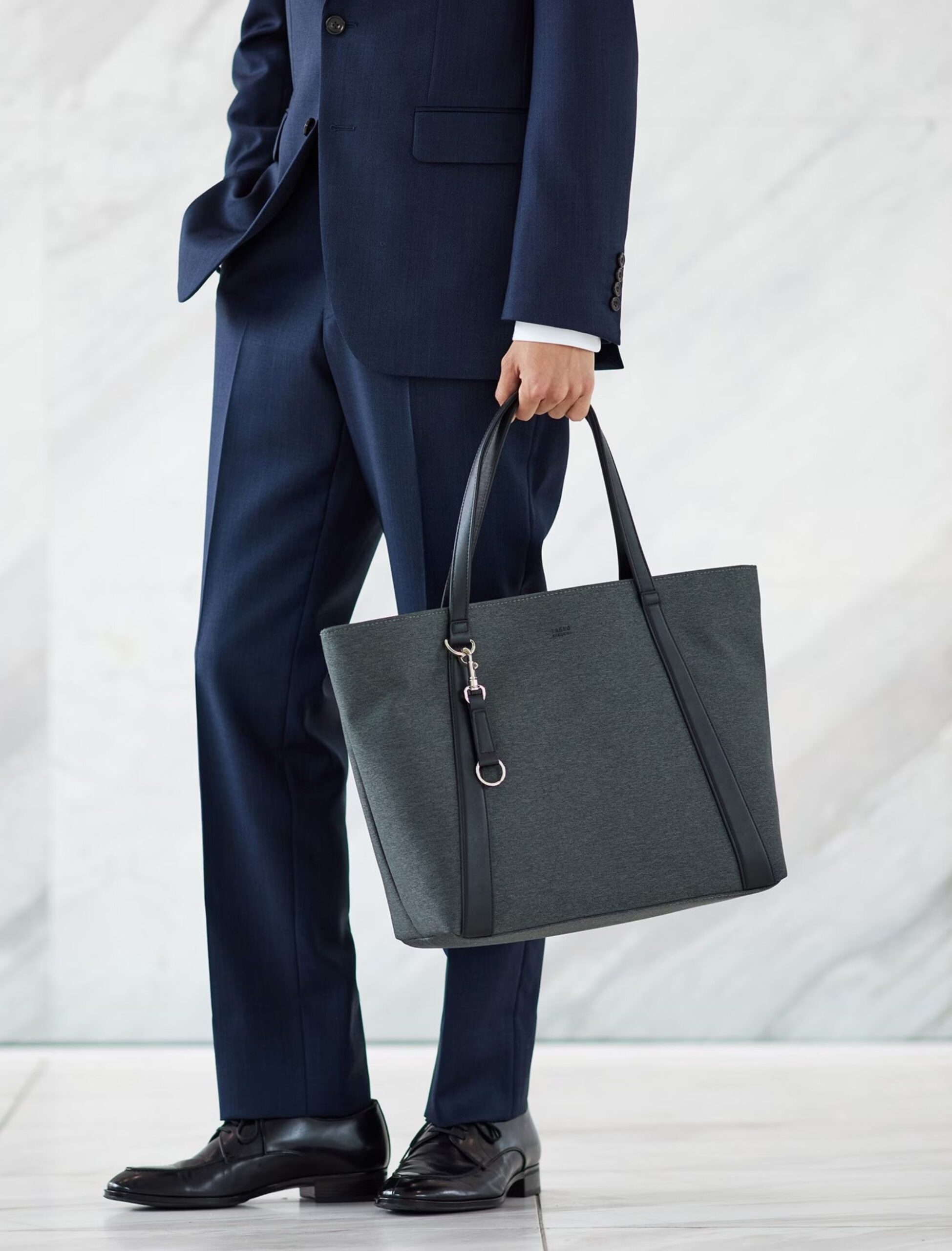 กระเป๋าโท้ทผลิตจาก Polyester ทำให้มีความทนทาน มีดีไซน์ที่โมเดิร์น แต่ยังคงความเรียบง่ายตามสไตล์ Quiet Luxury สามารถใช้ได้ในหลากหลายโอกาสทั้งในวันทำงานและวันหยุด ด้วยวัสดุที่ใช้ทำให้มีน้ำหนักเบา มาพร้อมห่วงสำหรับคล้องกุญแจ