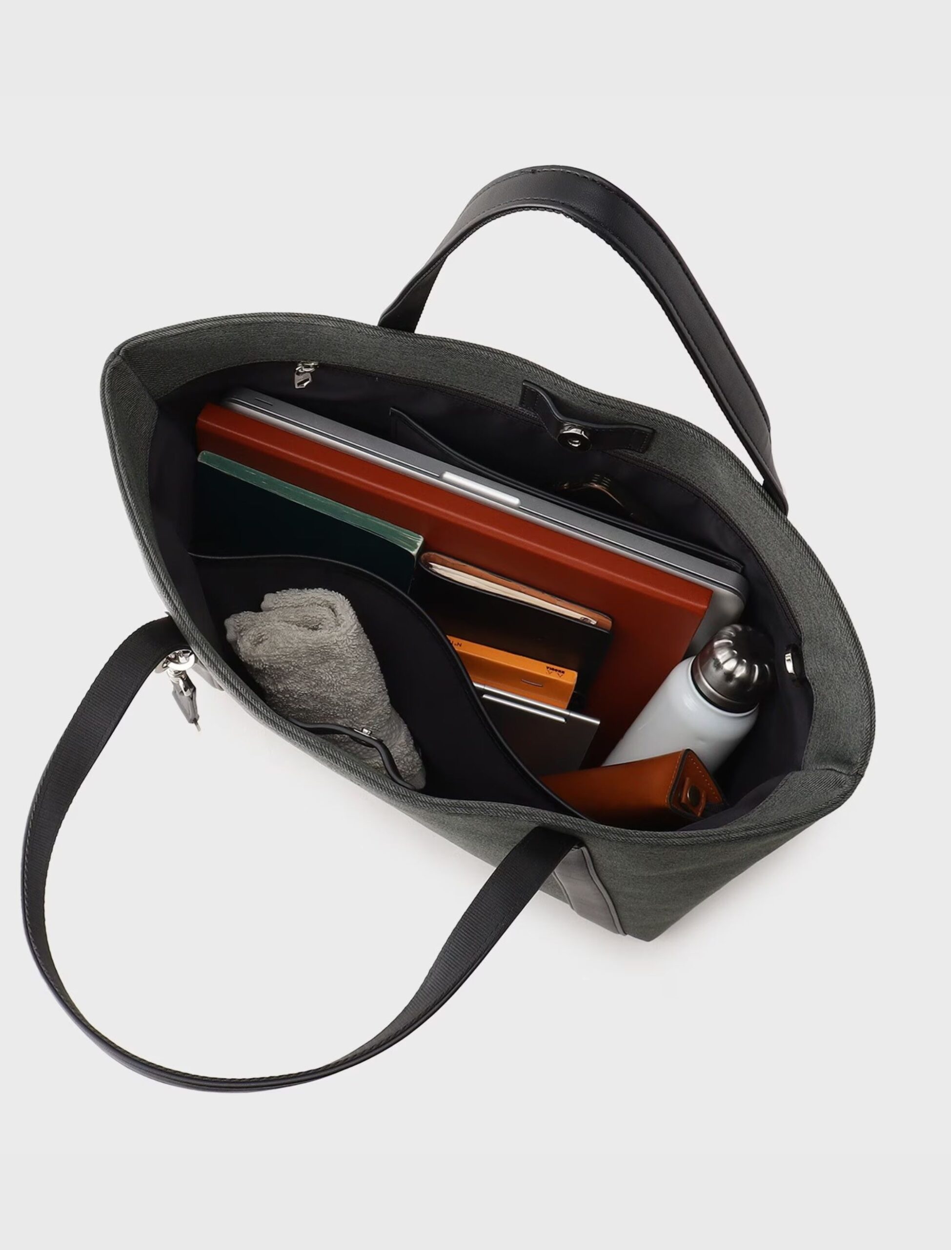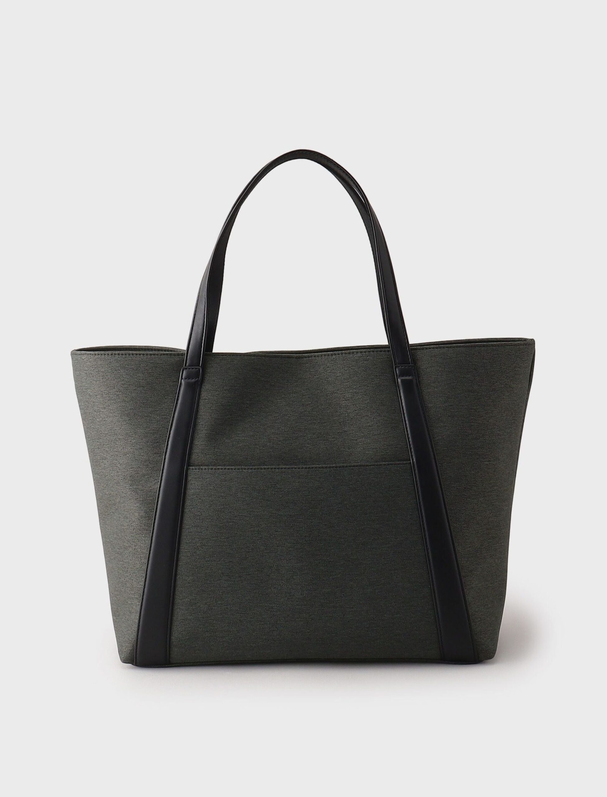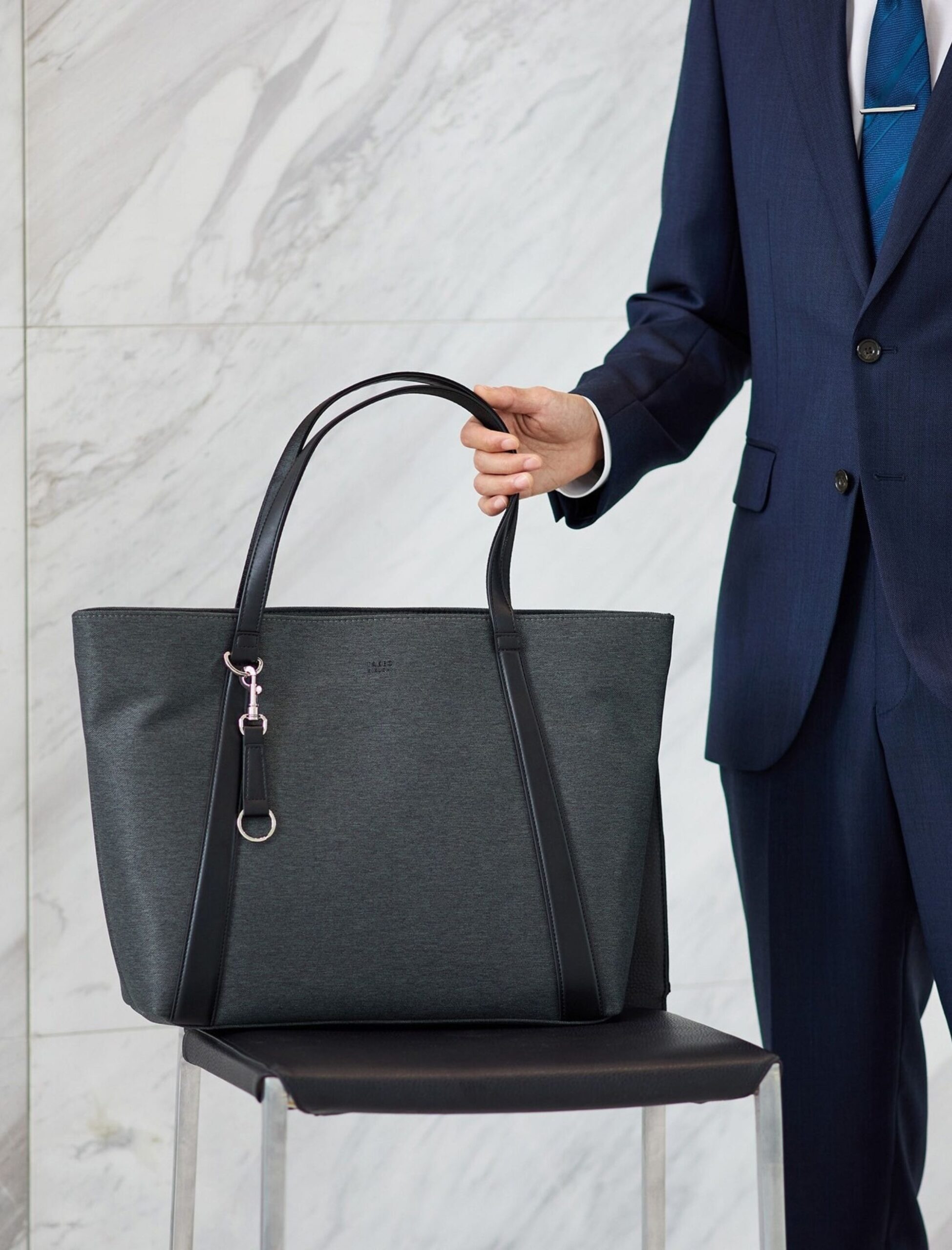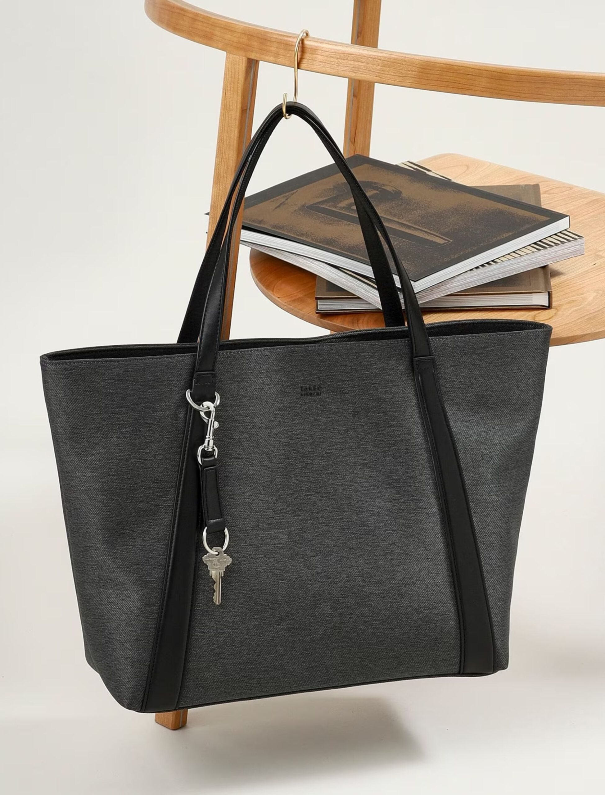 กระเป๋าโท้ทผลิตจาก Polyester ทำให้มีความทนทาน มีดีไซน์ที่โมเดิร์น แต่ยังคงความเรียบง่ายตามสไตล์ Quiet Luxury สามารถใช้ได้ในหลากหลายโอกาสทั้งในวันทำงานและวันหยุด ด้วยวัสดุที่ใช้ทำให้มีน้ำหนักเบา มาพร้อมห่วงสำหรับคล้องกุญแจ