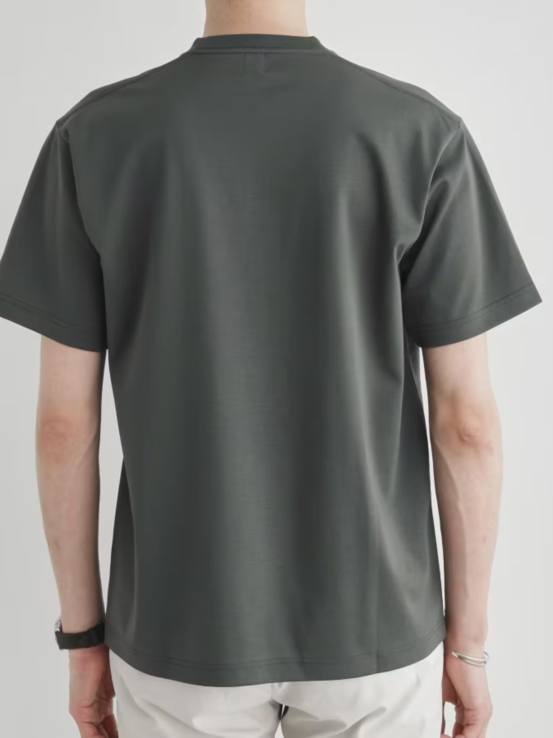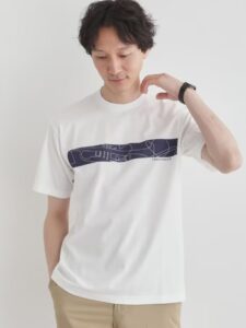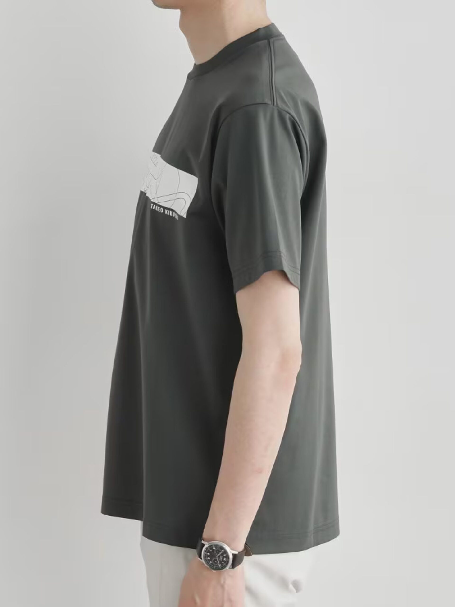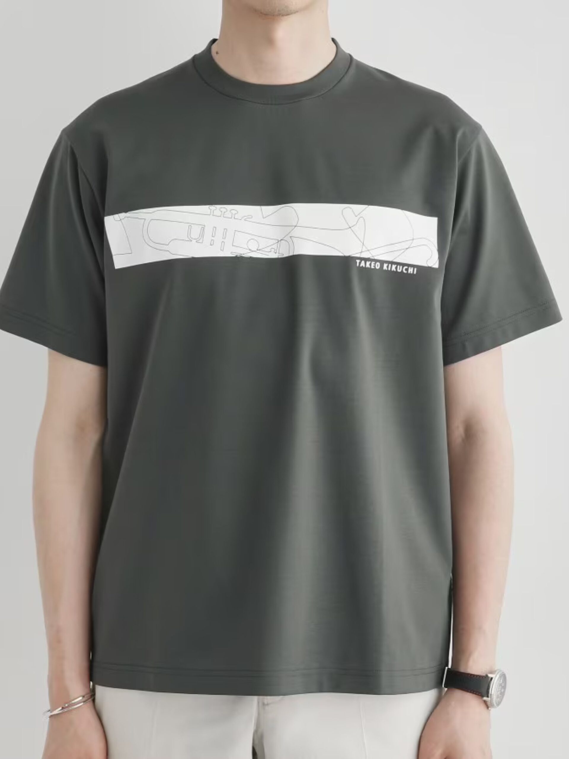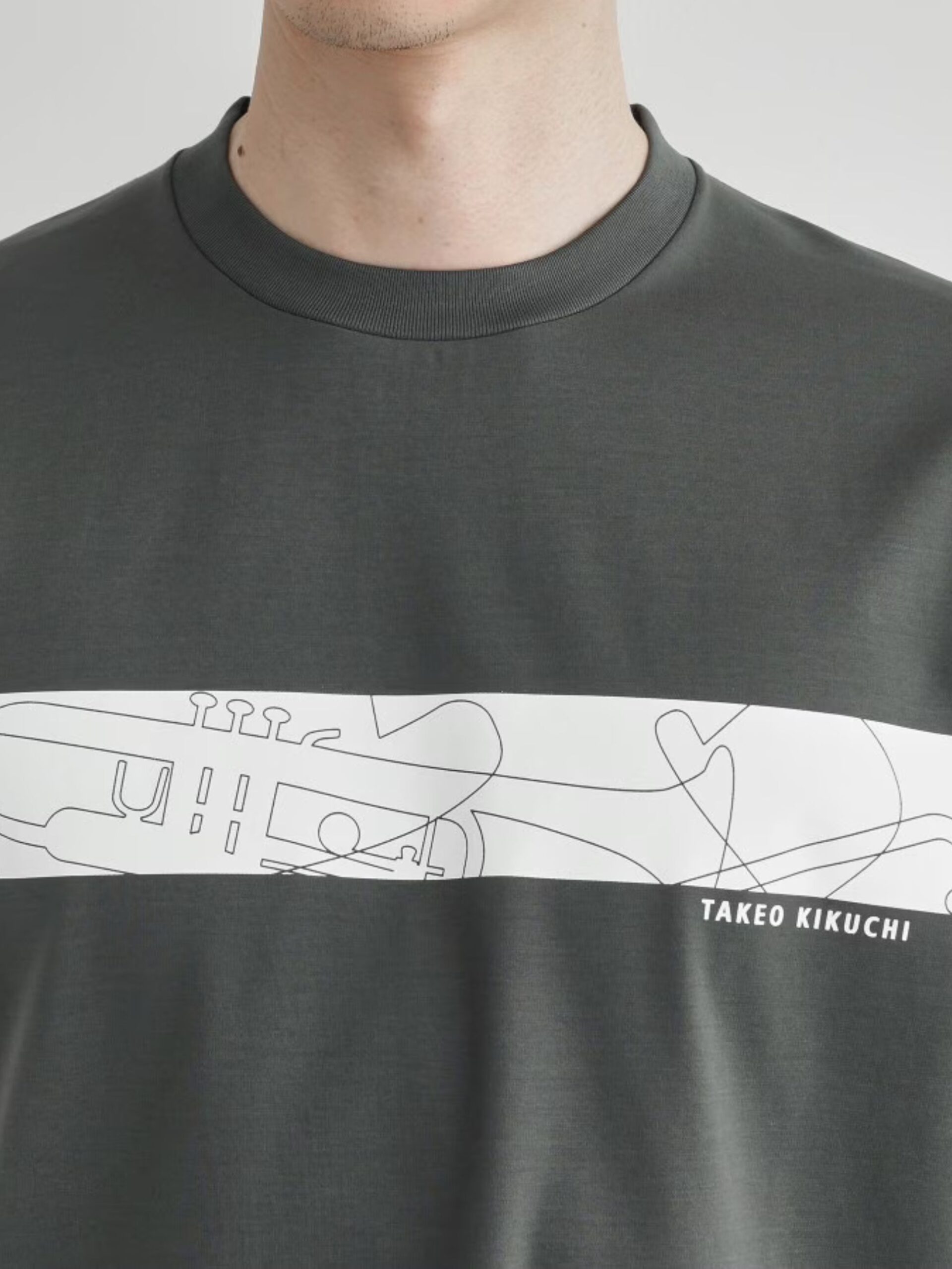 เสื้อยืดคอกลมแขนสั้น พร้อมลายพิมพ์บาร์ที่หน้าอก ลายบาร์ถูกออกแบบให้สื่อถึงแรงบันดาลใจจากดนตรีและสไตล์ซิกเนเจอร์ของแบรนด์ การวางลายพิมพ์ไว้สูงเล็กน้อยช่วยดึงสายตาขึ้นด้านบน ทำให้ลุคโดยรวมดูสมส่วนขึ้น ทรงเสื้อเป็นไซซ์มาตรฐาน ใส่ง่าย เหมาะทั้งใส่เดี่ยวหรือเป็นอินเนอร์ด้านใน นอกจากนี้ยังใส่ใจในทุกรายละเอียด โดยคอเสื้อริบเลือกใช้การเย็บ Triple-layer (สามชั้น) แทนแบบปกติที่มีสองชั้น เพื่อเพิ่มความทนทานต่อการซัก จากการทดสอบในห้องแล็บอิสระ ยืนยันว่าเสื้อยังคงรูปและเกิดรอยยับน้อยมาก แม้ผ่านการซักถึง 10 ครั้ง