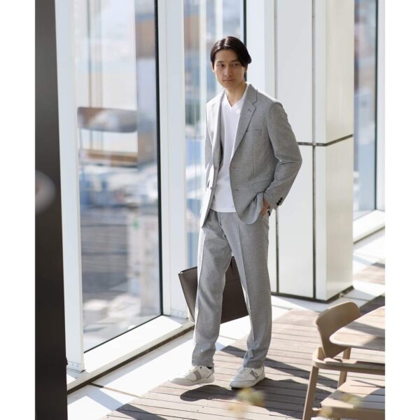 กางเกงจากซีรีส์ยอดนิยม “Oshu Jersey” ย้อมและทอด้วยเส้นใยโพลีเอสเตอร์ผสมลินิน กางเกงรุ่นนี้สามารถสวมใส่ได้ทั้งในวันทำงาน และวันหยุด ด้วยการออกแบบที่พิถีพิถันและความรู้สึกสบายขณะสวมใส่