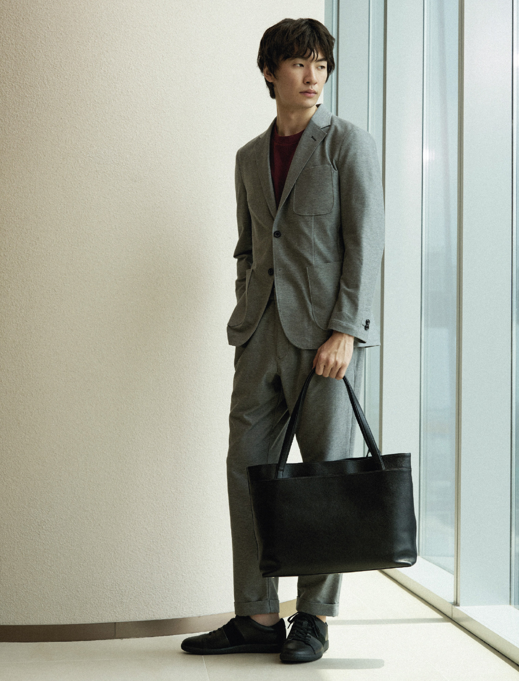 เสื้อแจ็คเก็ต ผ้า Lycra ผสม Cotton และ Polyester เนื้อนิ่ม ทอใส่สบาย มีน้ำหนักค่อนข้างเบา ทอเป็น denim (เหมือนผ้ายีนส์) ทรงเหมือนรุ่น Eco denim stretch blazer ซึ่งเป็นรุ่นขายดีของแบรนด์