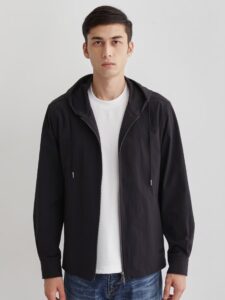 เสื้อฮู้ดซิปตัวนี้ผลิตจากผ้าน้ำหนักเบาและยืดหยุ่นสูง ตัดเย็บโดยอ้างอิงแพทเทิร์นเสื้อเชิ้ต จึงให้ทรงที่ดูเนี้ยบและเพรียวกว่าเสื้อฮู้ดเจอร์ซีย์ทั่วไป ปลายแขนสามารถพับเพื่อปรับอุณหภูมิได้ง่าย พื้นผ้าที่กระชับ มีเท็กซ์เจอร์แบบคมและซิปด้านหน้าที่ดูแข็งแรง ทำให้มีลุคคล้ายเสื้อแจ็กเก็ตเบา ๆ