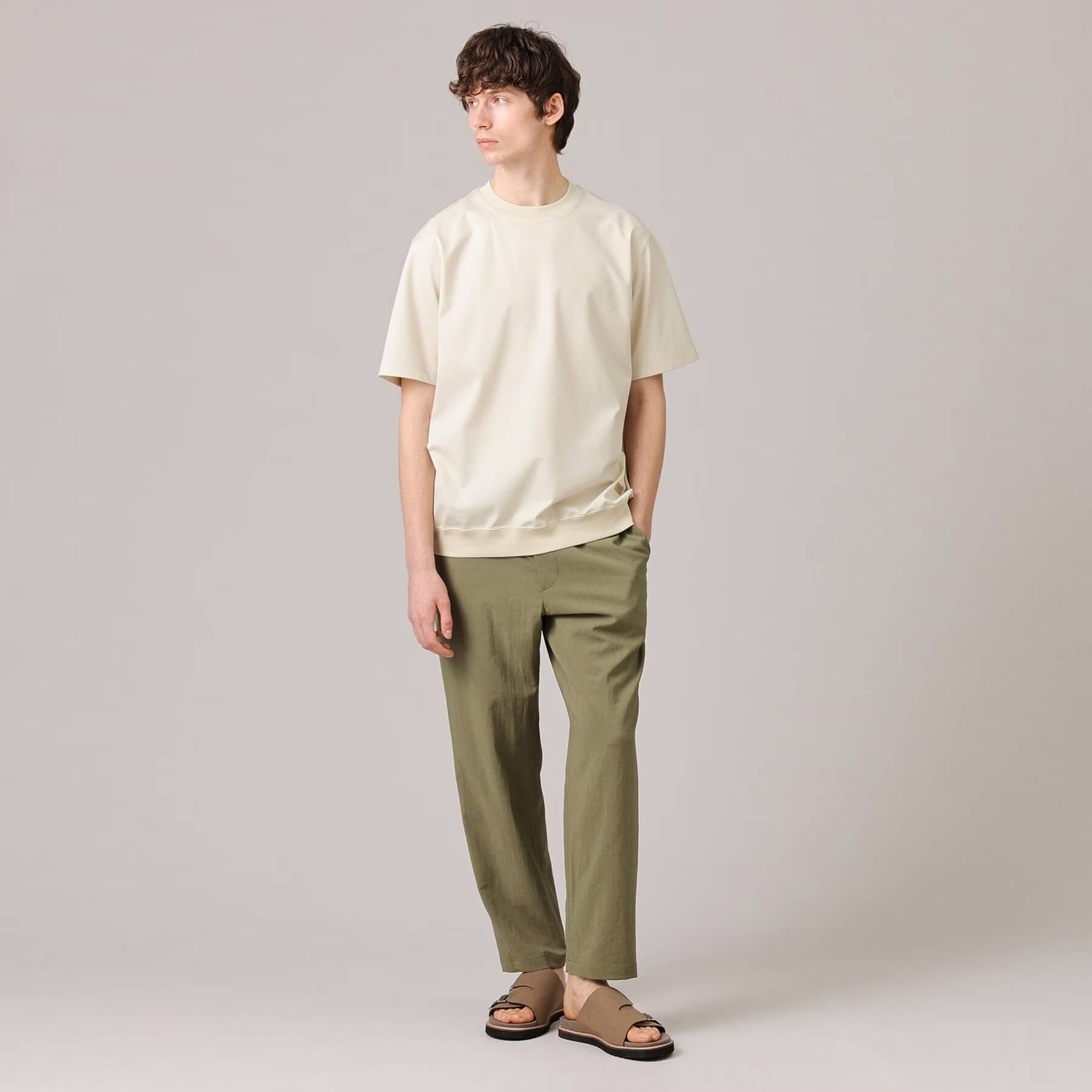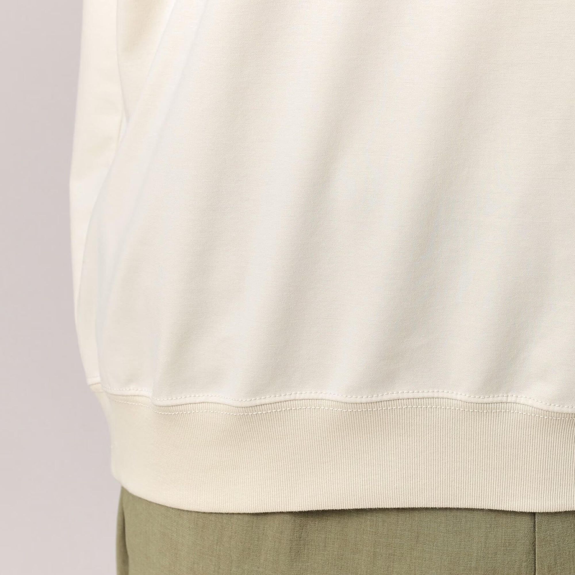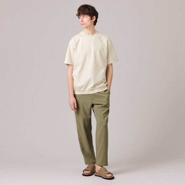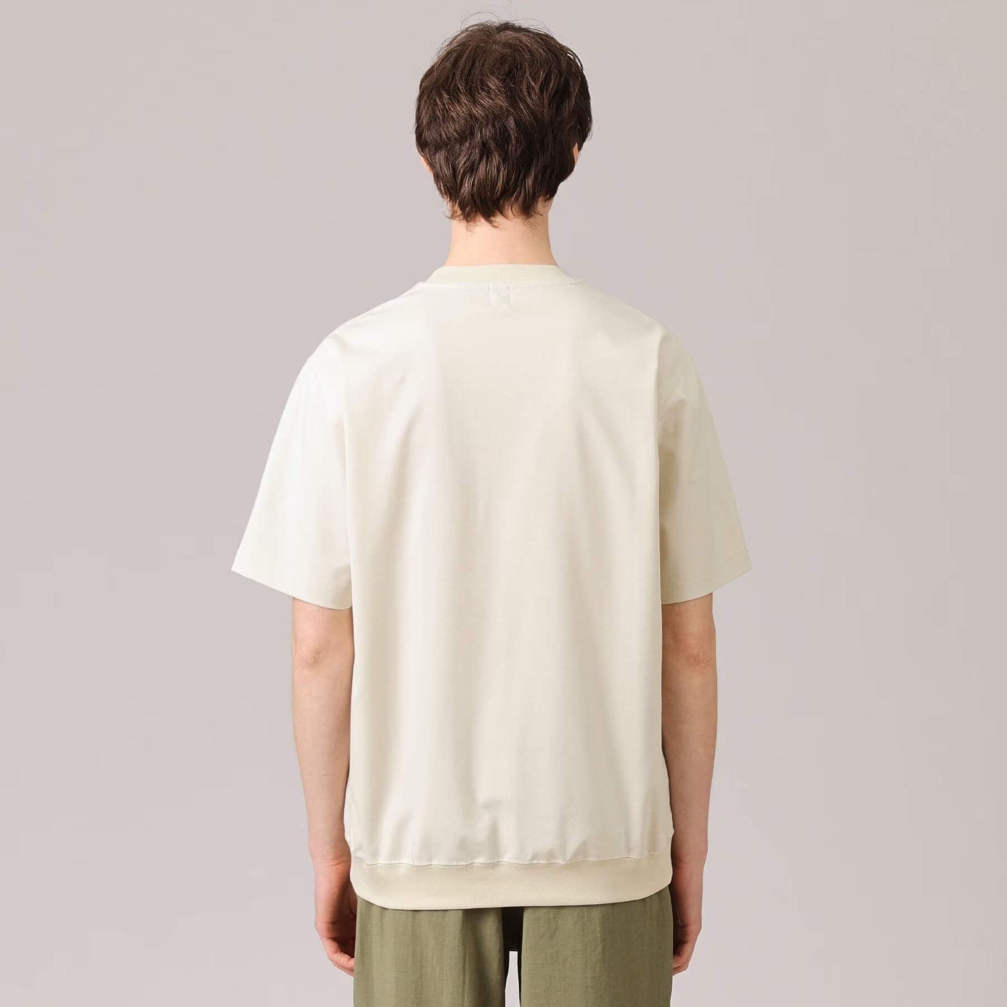 เสื้อคัตแอนด์โซว์ทรงหลวม ผลิตจากผ้าพันช์เนื้อแน่นถักด้วยเกจสูง พื้นผิวของผ้าผ่านกระบวนการเมอร์เซไรซ์เพื่อกำจัดขนละเอียด ทำให้มีประกายเงางามและสัมผัสที่เรียบลื่น เหมาะสำหรับอากาศร้อน ชายเสื้อแบบจั๊มพ์ให้ทรงที่พองและเบา ในขณะเดียวกันก็แนบกระชับ ไม่ดูรุ่มร่าม อีกทั้งยังช่วยปกปิดรูปร่างบริเวณหน้าท้องได้อย่างดี ด้วยดีไซน์ที่เรียบง่ายแต่โดดเด่น ทำให้เสื้อตัวสามารถนำไป Mix & Match กับสไตล์ต่างๆ ได้ง่าย เหมาะสำหรับการใส่ในชีวิตประจำวัน