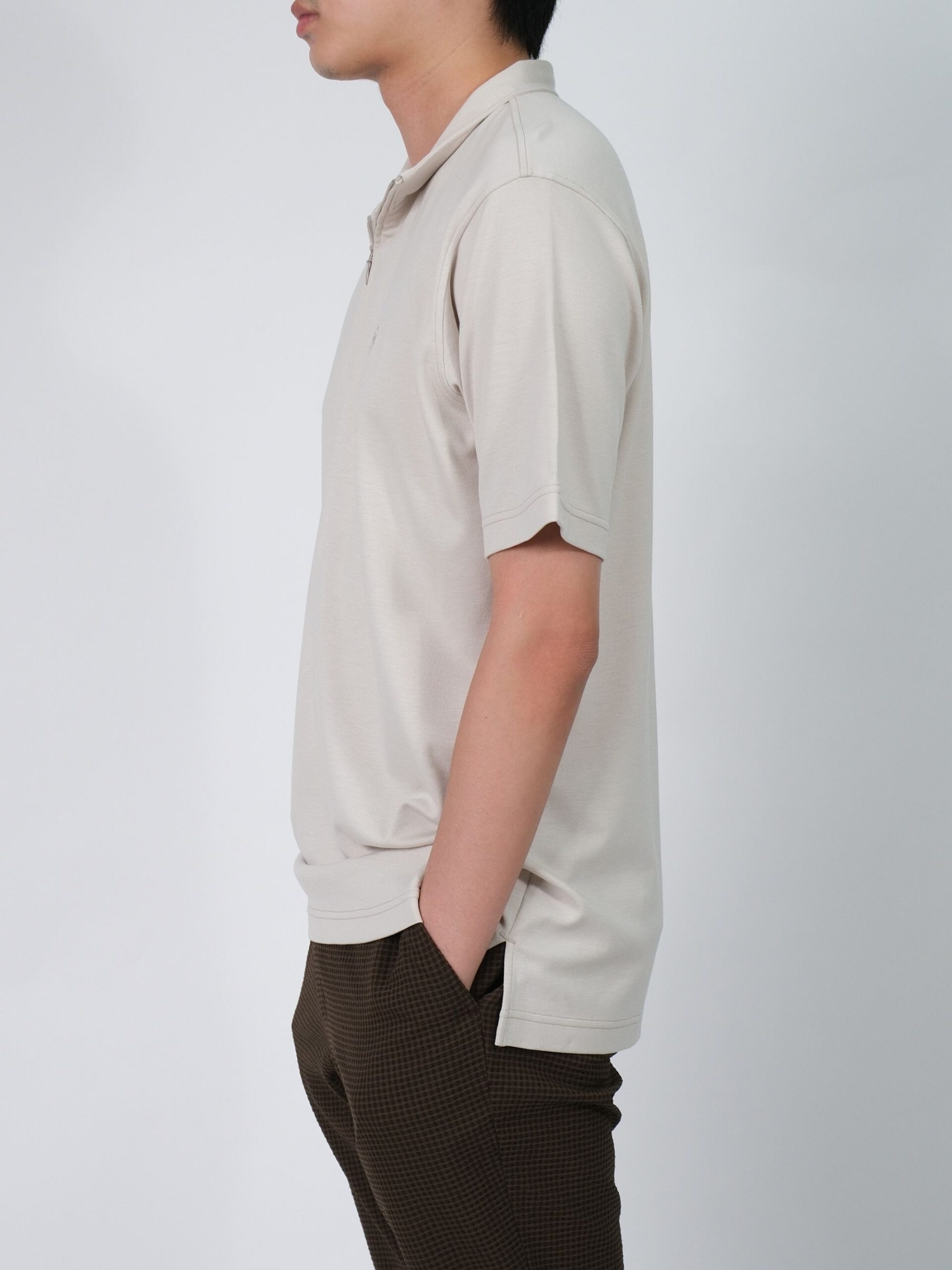 LIGHT BEIGE SUPER SOFT STAND COLLAR ZIPPER POLO SHIRT (K8132601)