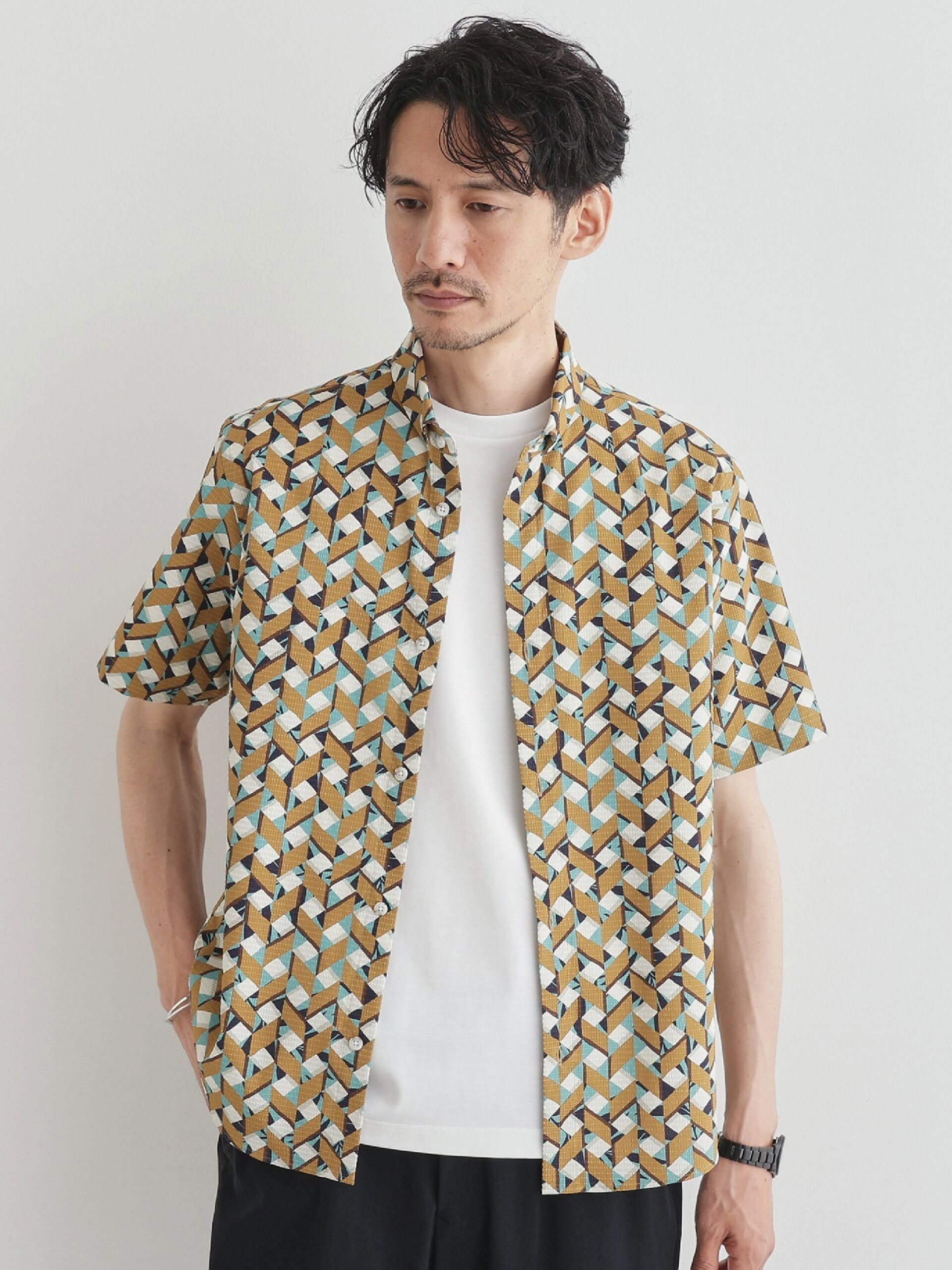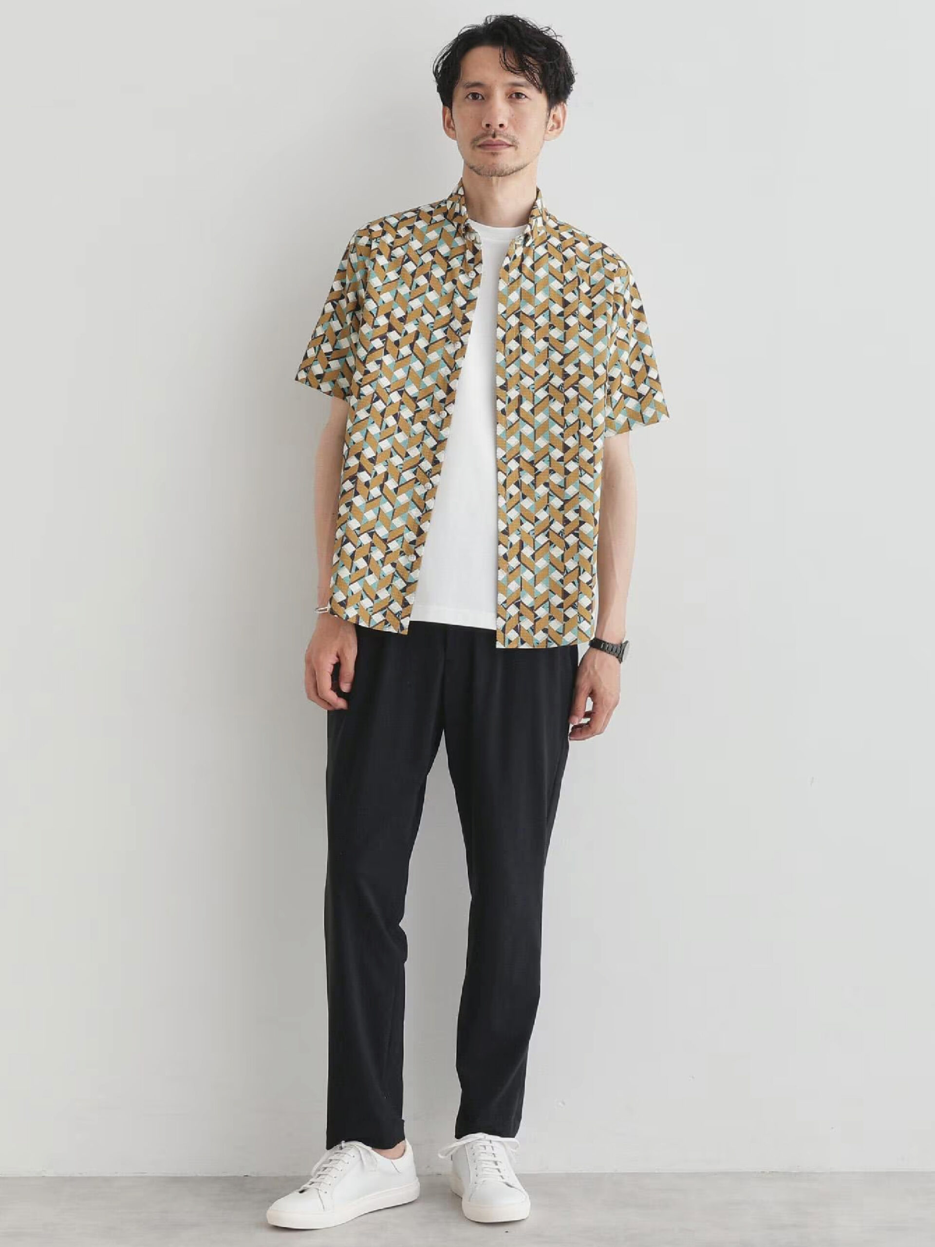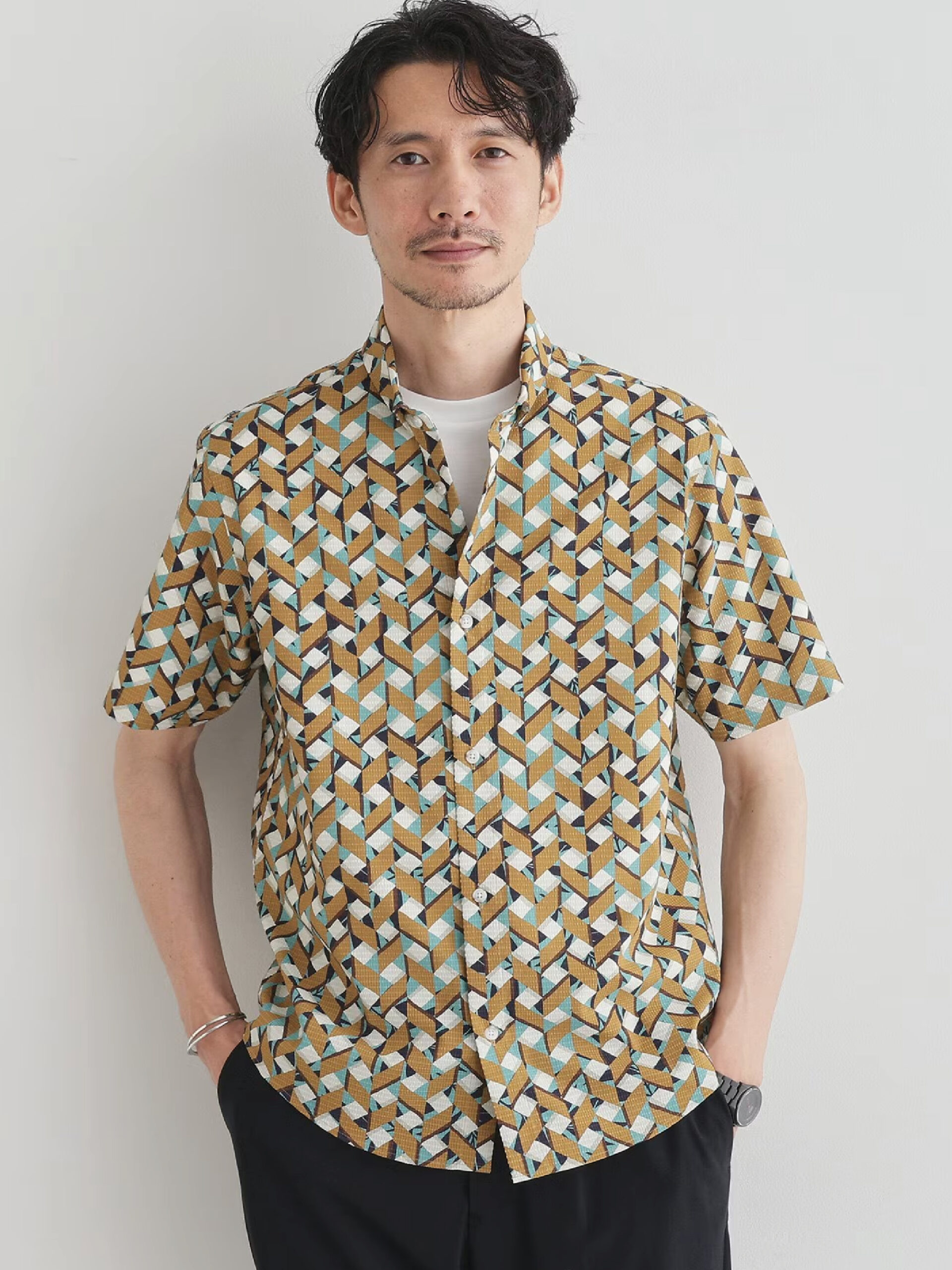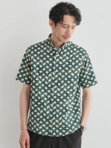 เสื้อเชิ้ตพิมพ์ลายออริจินัลที่นำแรงบันดาลใจจากลาย “Basket Weave” แบบดั้งเดิม มาจัดเรียงใหม่ในสไตล์ศิลป์ เติมลูกเล่นด้วยลายใบไม้ที่สื่อถึงความสดชื่นในฤดูร้อน ลายสานนี้เป็นหนึ่งในลวดลายญี่ปุ่นดั้งเดิมที่ TAKEO KIKUCHI มักนำมาใช้ในหลายคอลเลกชัน รวมถึงชุดสูท โดยมีความหมายถึงการปัดเป่าสิ่งไม่ดี ความเจริญรุ่งเรือง ความมั่นคง และความผูกพัน