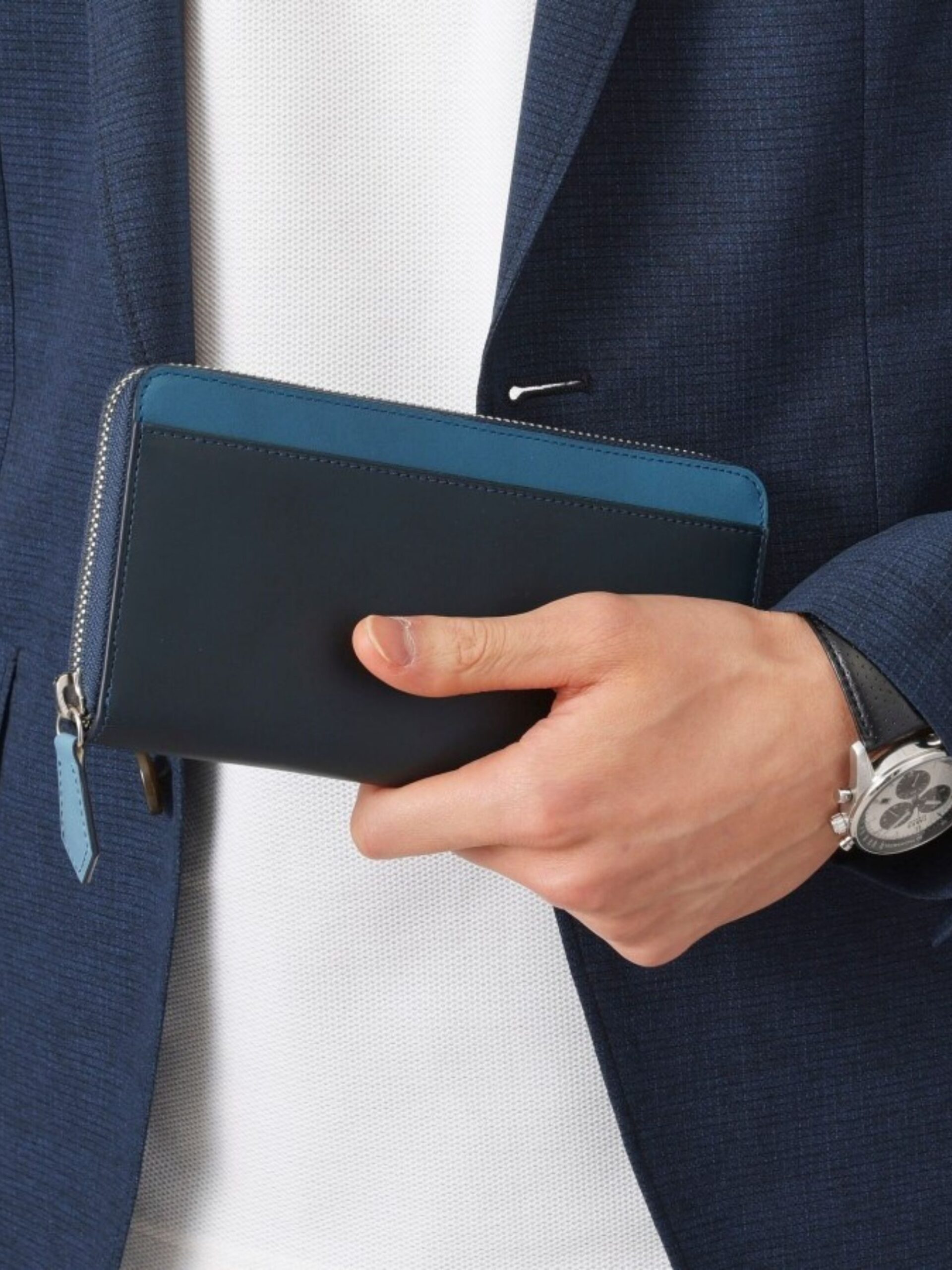 NAVY ANTIQUE ZIP LONG WALLET (07001531)