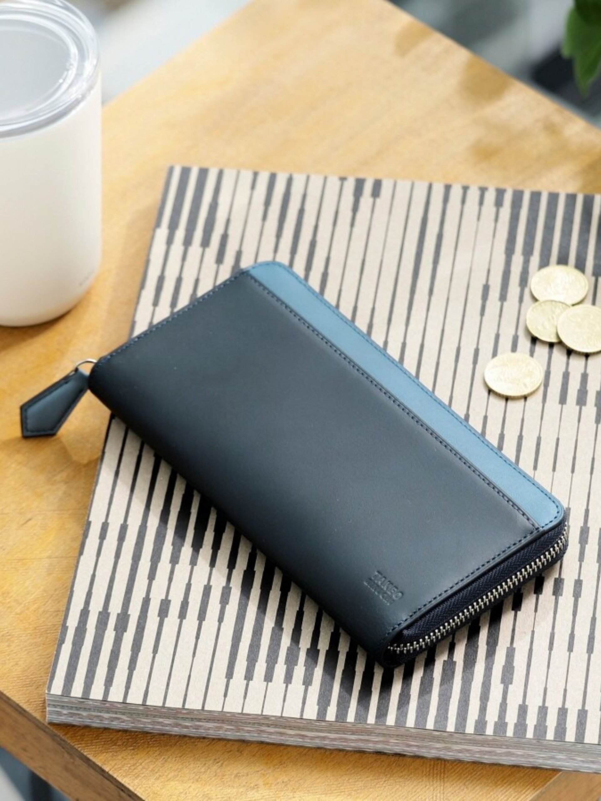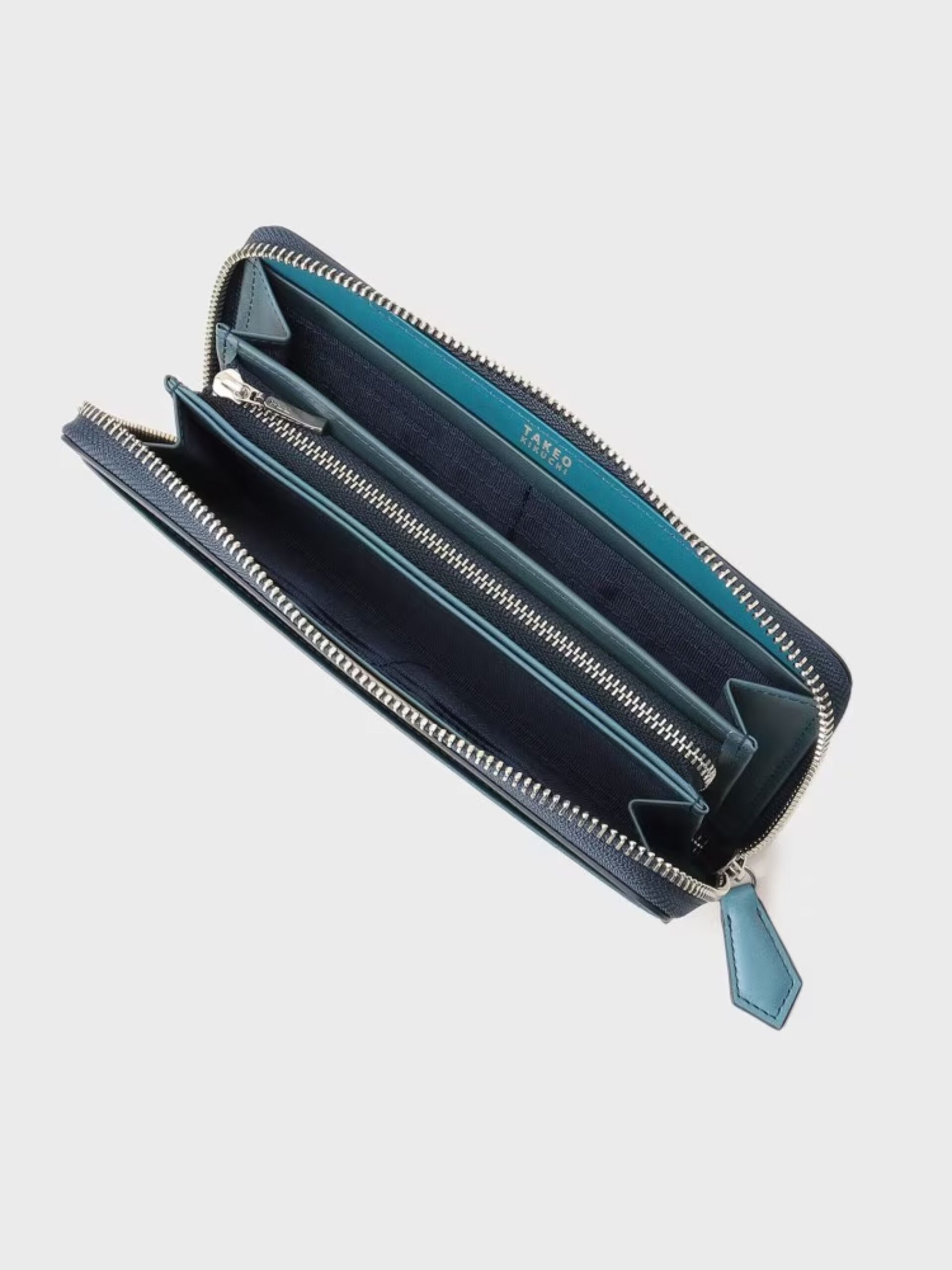 กระเป๋าสตางค์ใบยาวแบบซิปปิดรอบทรงงคลาสสิกมีกระเป๋าช่องด้านหน้า ภายในมีช่องใส่เหรียญแบบซิปตัว L อยู่ตรงกลาง ใส่บัตรได้ทั้งหมด 12 ช่อง
