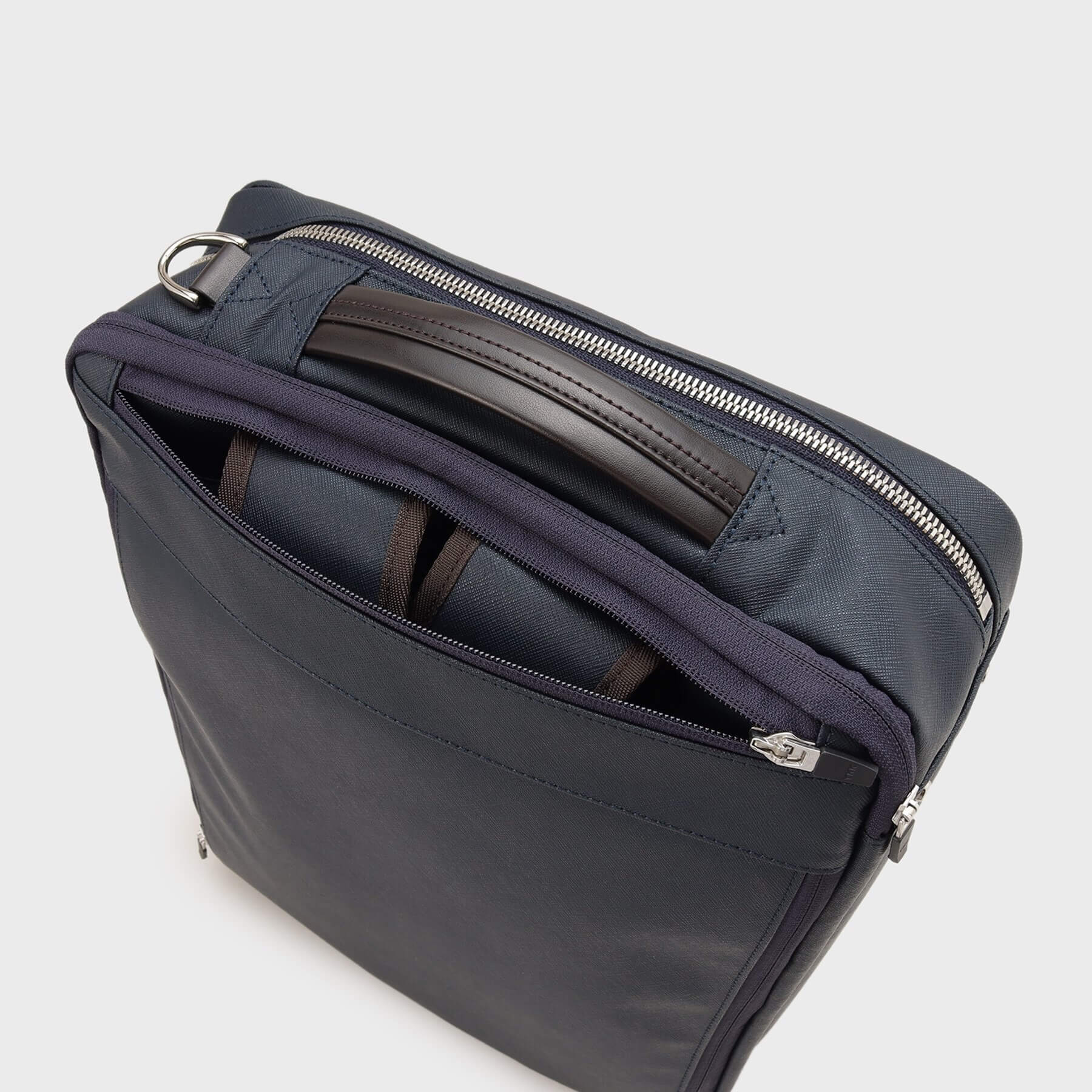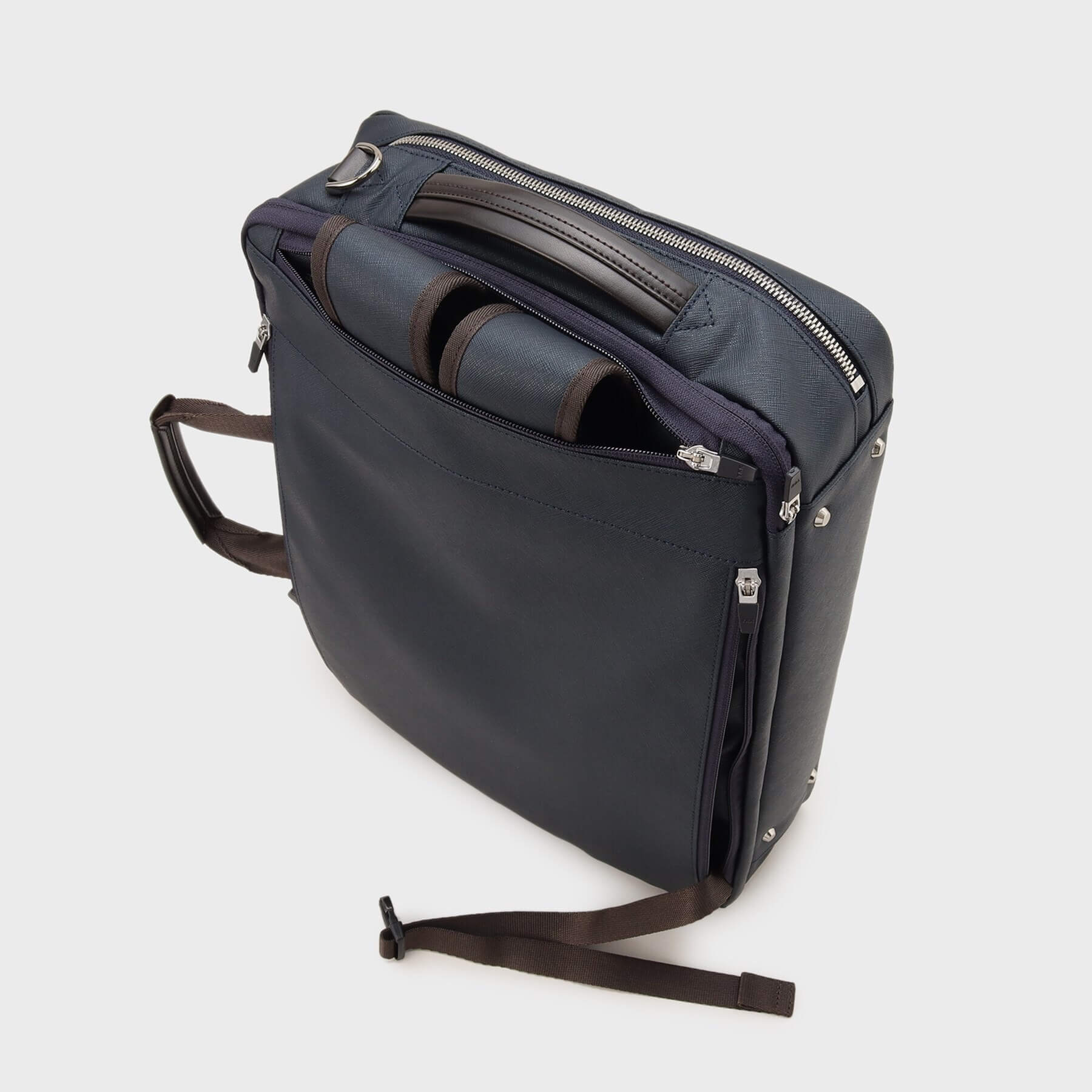 กระเป๋าแบบ 3-Way ที่สามารถใช้งานได้ทั้ง สะพายหลัง, สะพายข้าง, หรือถือแบบกระเป๋าเอกสาร (briefcase) ตอบโจทย์ยุคที่สมาร์ทโฟนมีขนาดใหญ่ขึ้นจนถือมือเดียวลำบาก – กระเป๋าทรงแบ็คแพ็คที่ได้รับความนิยมนี้ช่วยให้คุณ สามารถใช้งานได้อย่างคล่องตัวโดยไม่ต้องใช้มือถือ มาพร้อม ซองกันกระแทกสำหรับใส่แล็ปท็อป/พีซี หูจับสำหรับถือแบบ briefcase สามารถเก็บซ่อนได้ เพื่อให้ดูเรียบร้อย ป้ายชื่อแบรนด์ทำจาก หนังแท้ ดีไซน์เรียบหรู แถบเทปด้านในมีการใช้สีต่างกัน เพื่อให้มองเห็นตำแหน่งของช่องต่าง ๆ ได้ง่ายยิ่งขึ้น