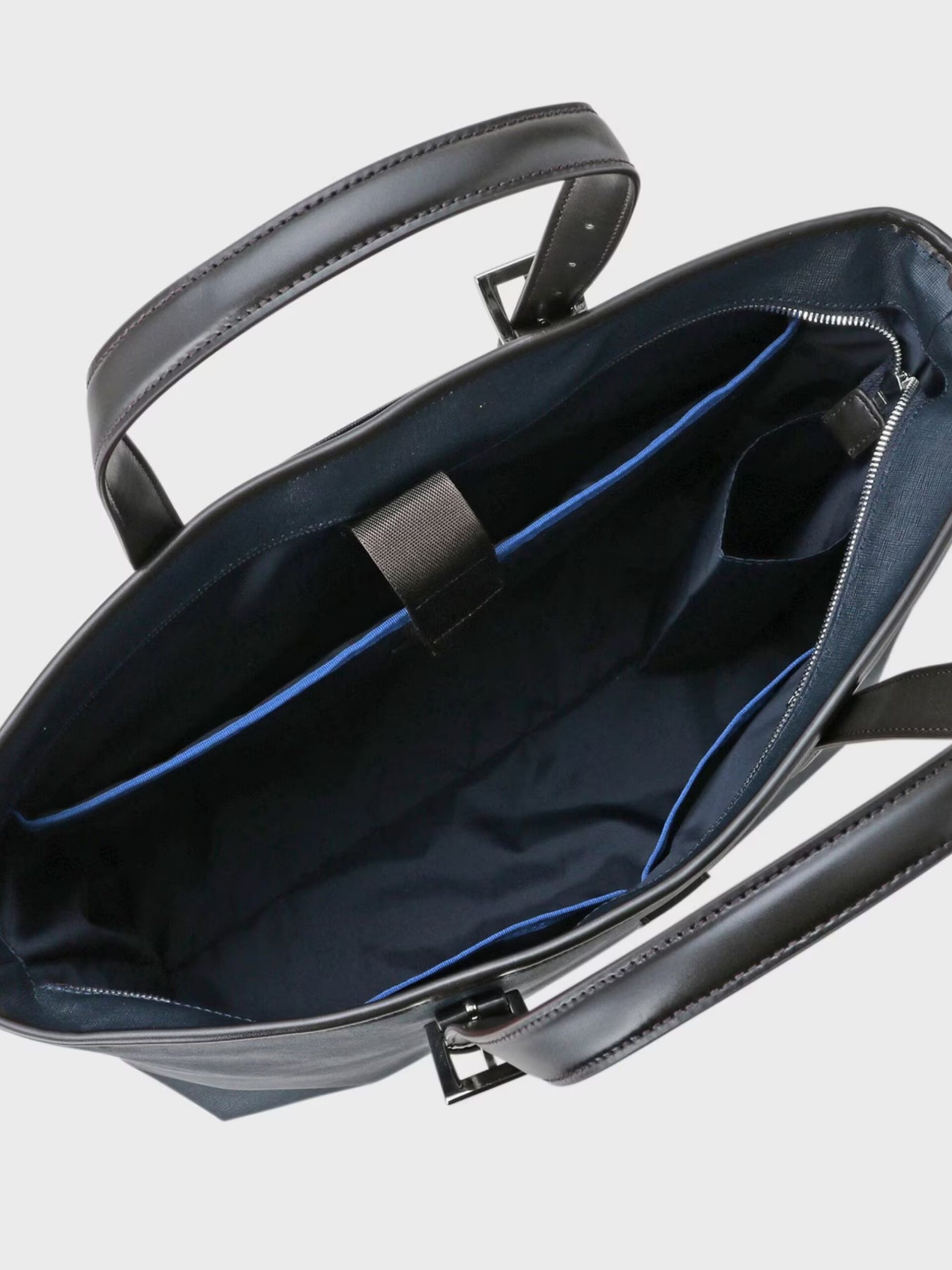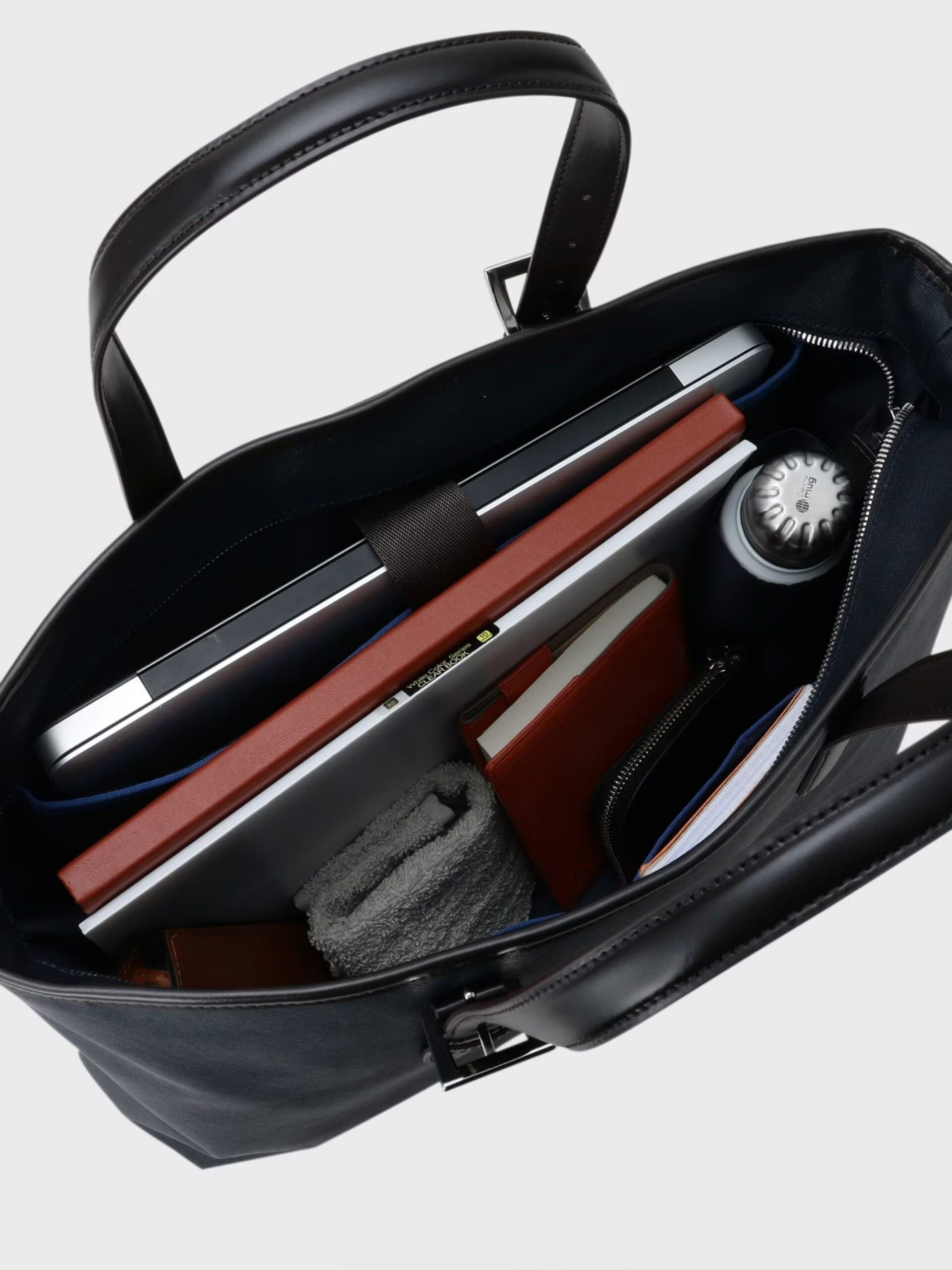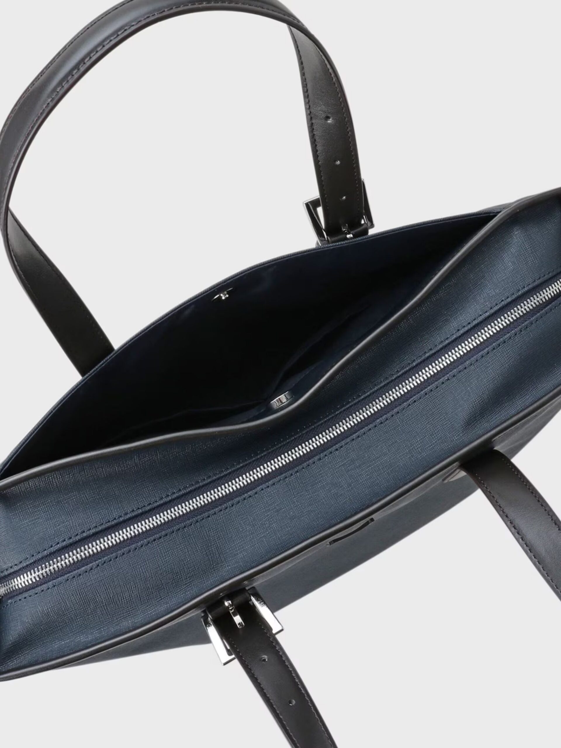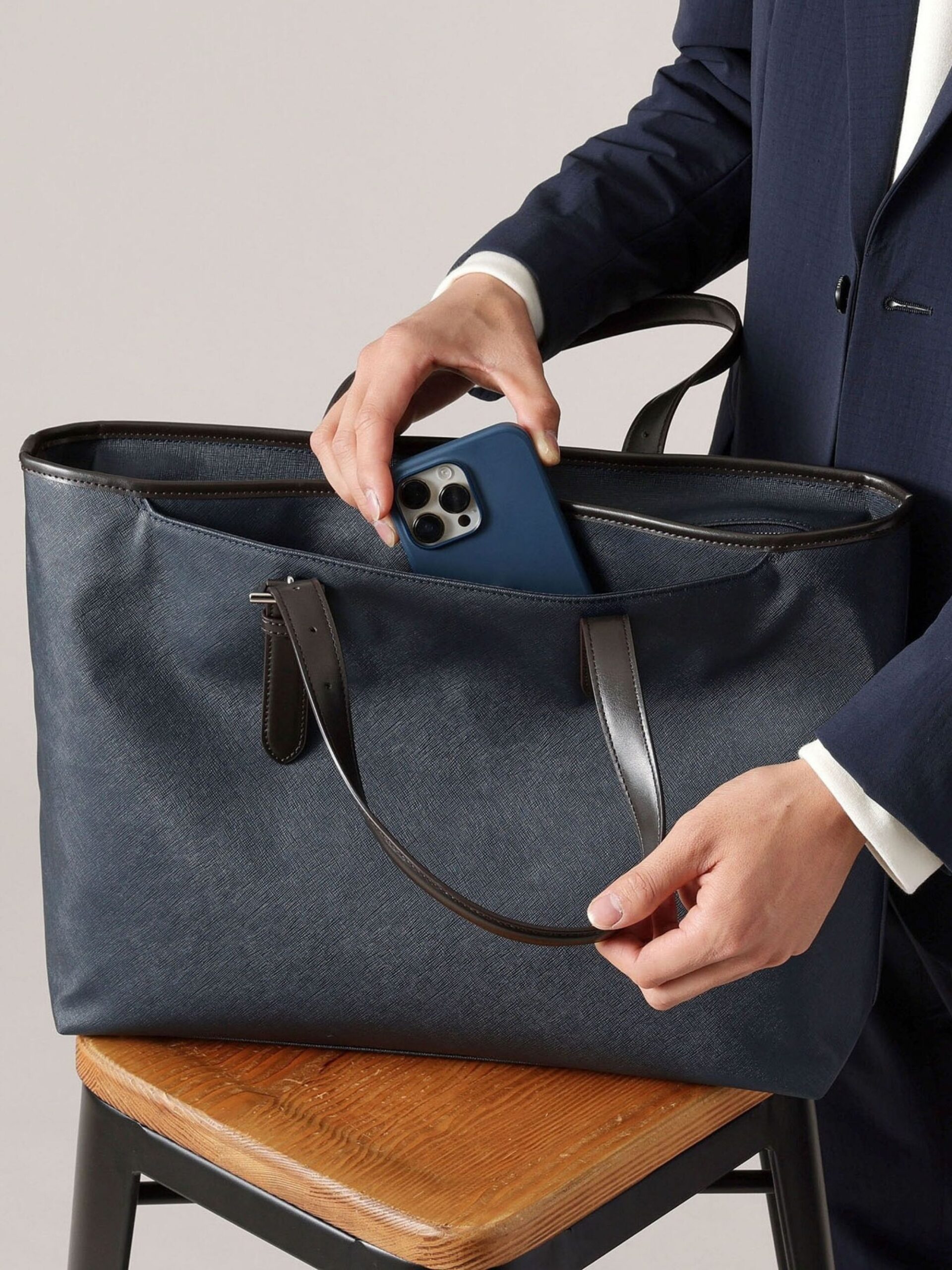 กระเป๋าโท้ทแนวนอน หูหิ้วถูกออกแบบพิเศษ ช่วยลดอาการกดทับเมื่อสะพายไหล่ ภายในมีช่องสำหรับใส่โน๊ตบุ๊คขนาด 15 นิ้ว เพิ่มความสะดวกในการใช้งาน มาพร้อมซิปปิดเพื่อความปลอดภัยและเป็นระเบียบ