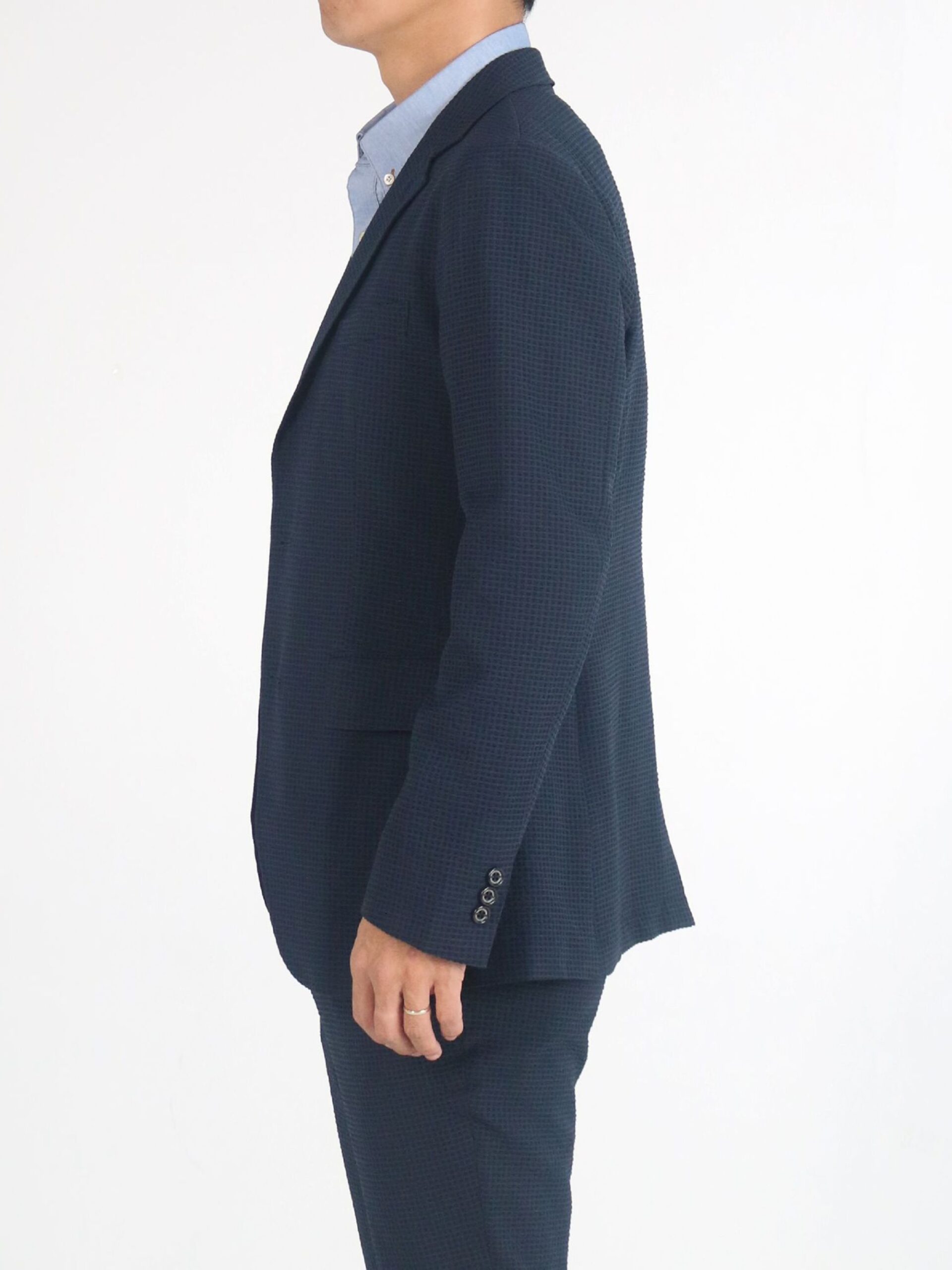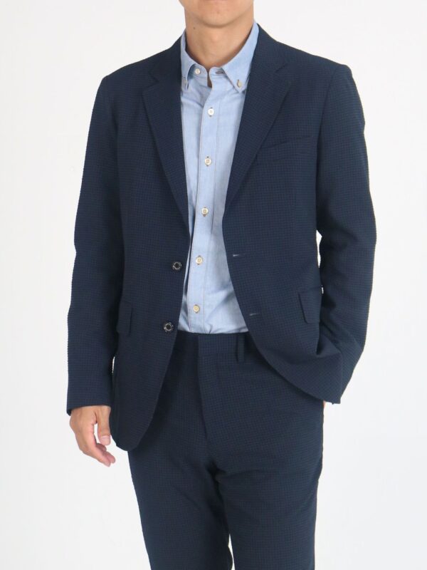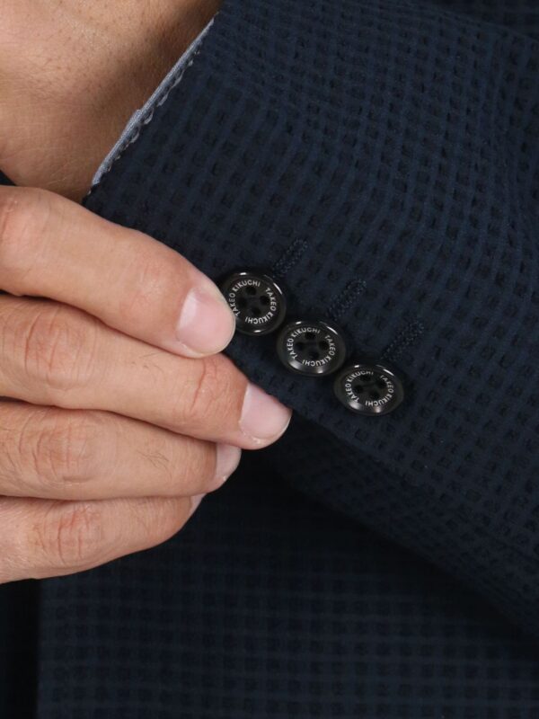 แจ็คเก็ตสูท ผ้า Polyester Primeflex Dotair เป็นรุ่นที่ขายดีของ TAKEO KIKUCHI ใส่สบาย มีคุณสมบัติคือ แห้งเร็ว ระบายอากาศได้ดี เนื่องจากมีโครงสร้างที่เป็น Mesh เหมาะกับฤดูฝน อีกทั้งยังเป็น 2Way stretch เหมาะกับการเคลื่อนไหว และยับยาก เป็น City Setter ที่ผ้าและกระดุมนำเข้าจากประเทศญี่ปุ่น เนื้อผ้ามี texture ใส่แล้วดูสวยงาม ดูไม่ทางการเกินไป สามารถแยกชิ้นใส่กับกางเกงได้ โดยเฉพาะตัว Jacket จะดูมีความ Washed
