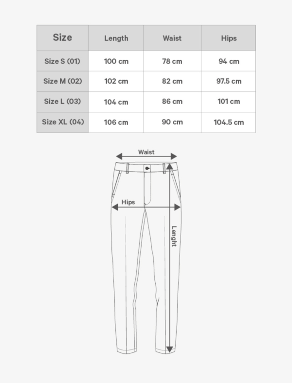 SIZE: M (02) รอบเอว 82 cm, ความยาวกางเกง 102 cm, สะโพกกว้าง 97.5 cm, ปลายขา 17.5 cm