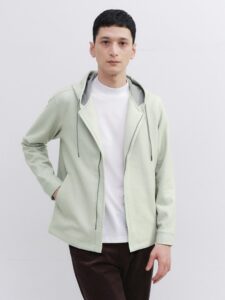 เสื้อฮู้ดมีซิปที่ใช้ผ้า Down Fabric ซึ่งเป็นวัสดุมัลติฟังก์ชั่น พื้นผิวผ้าฟลานเนลทำให้รู้สึกนุ่มนวล แม้เป็นไอเทมลำลองแต่ยังดูหรู เหมาะกับวันพักผ่อน สัมผัสที่นุ่มละมุนและเนื้อผ้าที่พลิ้วสบายช่วยให้ช่วงเวลา OFF ของคุณรู้สึกผ่อนคลายยิ่งขึ้น