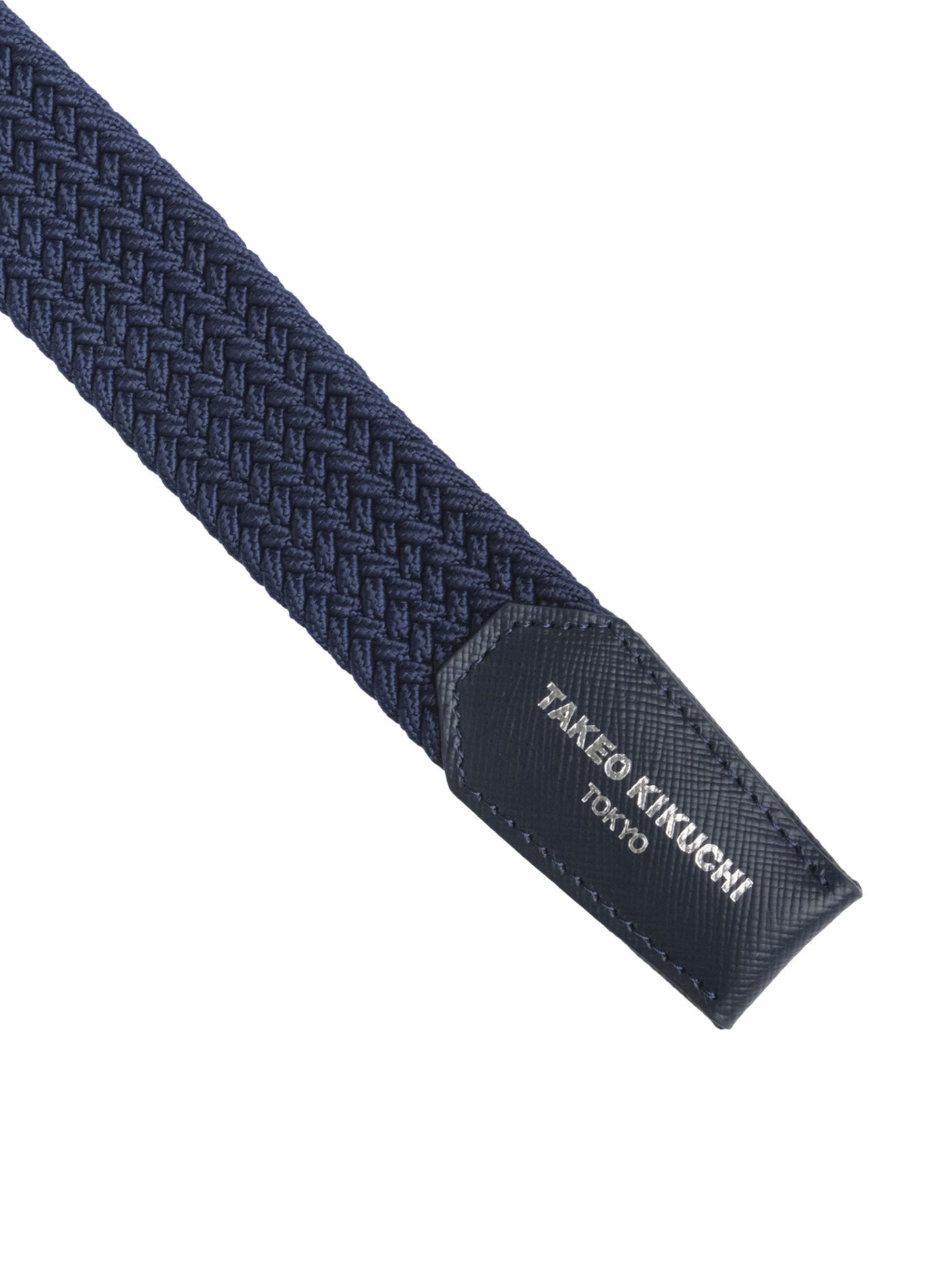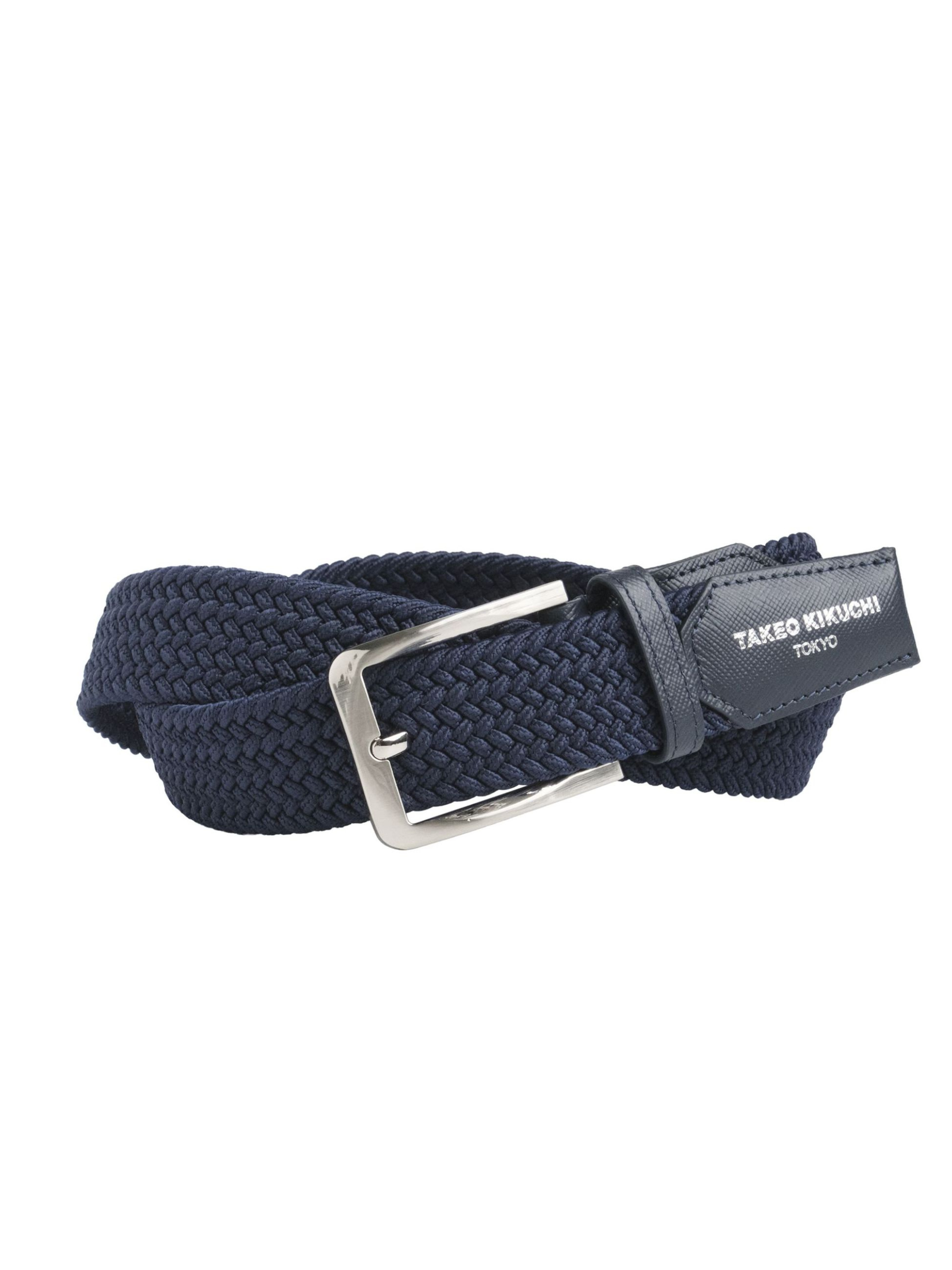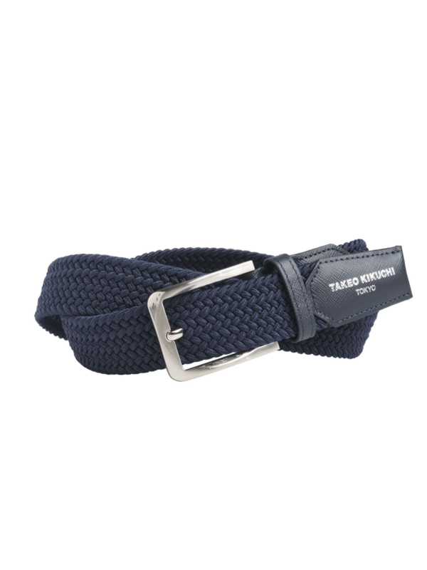เข็มขัดสไตล์ casual สามารถยืดได้เล็กน้อย มีเอกลักษณ์ที่สายเข็มขัดเป็นลายสาน ผลิตจาก Nylon ถักเป็นเส้น ไม่ต้องเจาะรูเหมือนเข็มขัดหนัง จึงสามารถปรับความยาวได้ตามต้องการ แต่งด้วยหนังแท้ สแตมป์โลโก้ TAKEO KIKUCHI ที่ปลายเส้นเข็มขัด