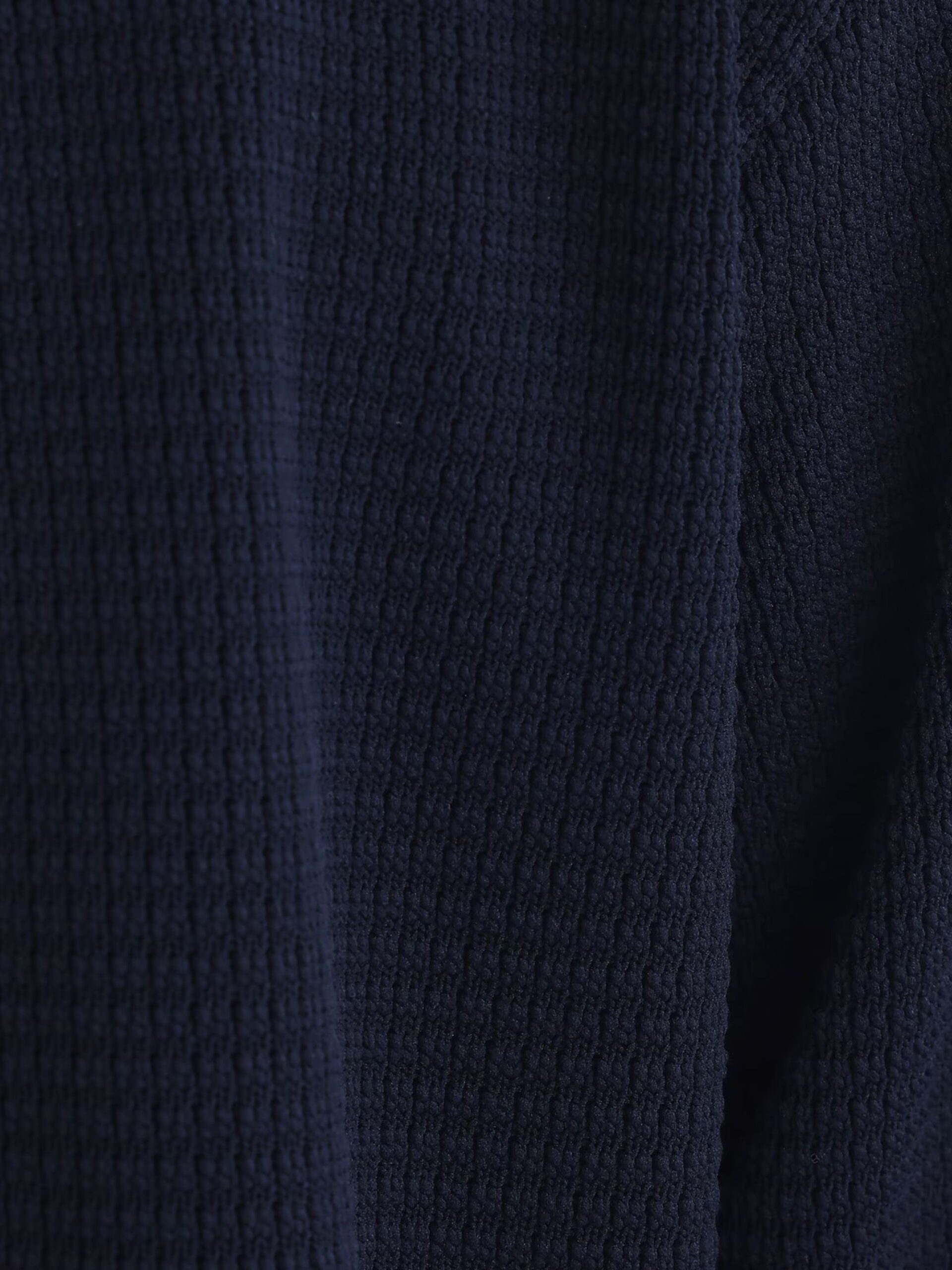– โครงสร้างแบบวาฟเฟิลช่วยเพิ่มมิติให้ตัวผ้าและให้ความรู้สึกอบอุ่น