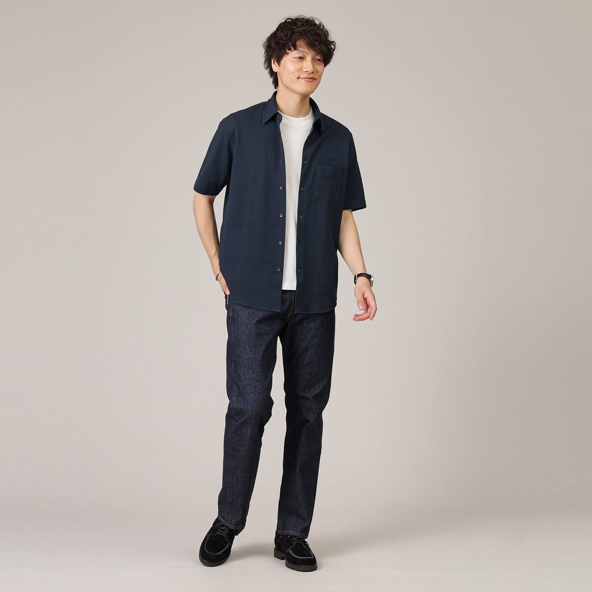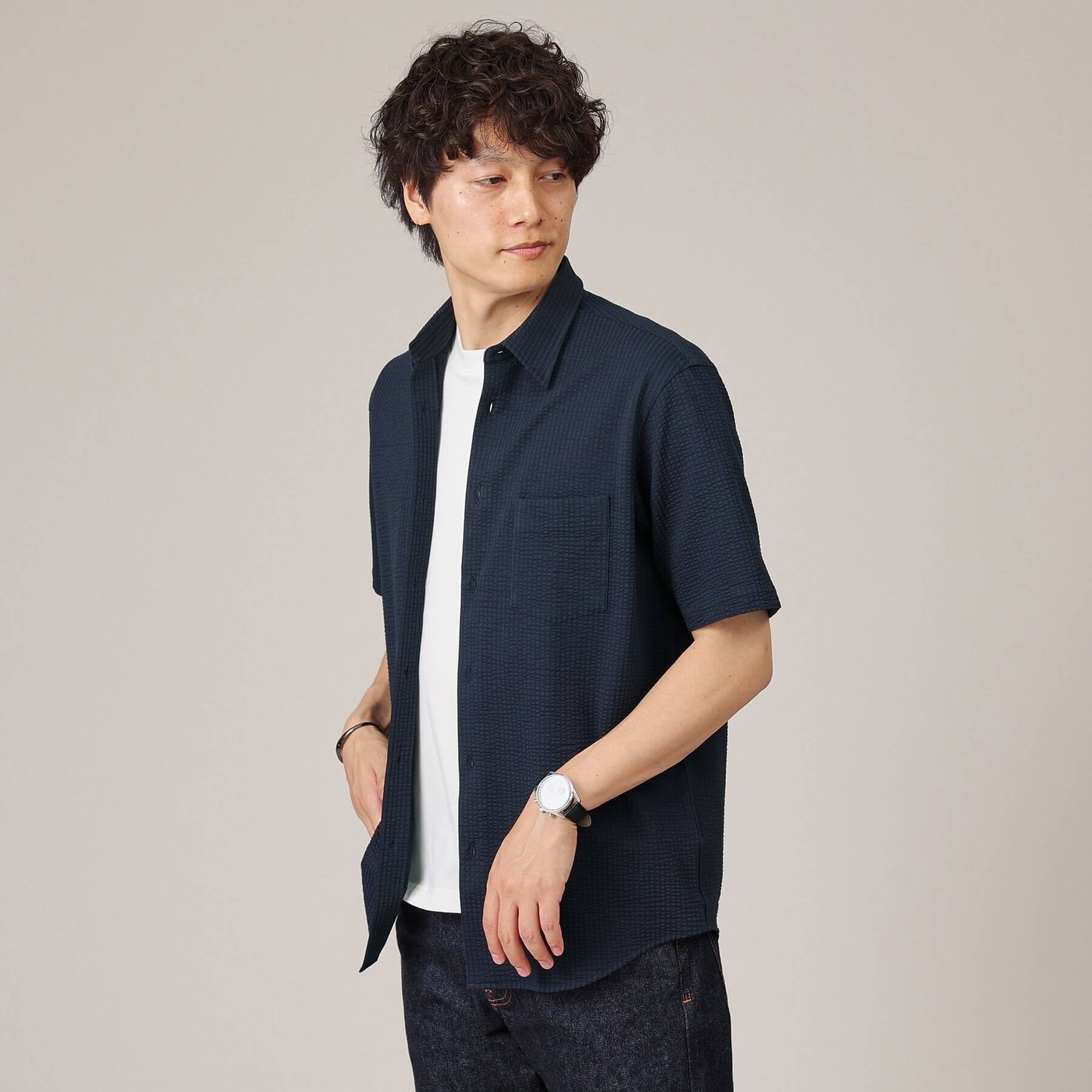 เสื้อเชิ้ตแขนสั้นดีไซน์เรียบง่าย ผลิตจากผ้ายืดลายทาง Seersucker