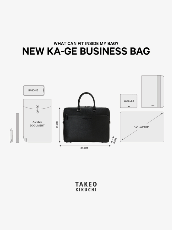 ที่ได้รับแรงบันดาลใจจากความเรียบง่าย ที่ได้รับแรงบันดาลใจในการออกแบบ จากคำว่าเงา (Ka Ge) เงาจากสถาปัตยกรรม modern ไม่ฉูดฉาด แต่แฝงด้วยดีเทล และยังตอบโจทย์การใช้งานของท่านสุภาพบุรุษด้วยฟังก์ชันด้านในที่ดีไซน์มาเพื่อให้ชีวิตคุณผู้ชายง่ายขึ้นอีกด้วย มีช่องใส่คอมพิวเตอร์โน้ตบุ๊ค (รองรับโน้ตบุ๊คขนาด 14 นิ้ว) มาพร้อมสายสะพายปรับความยาวได้