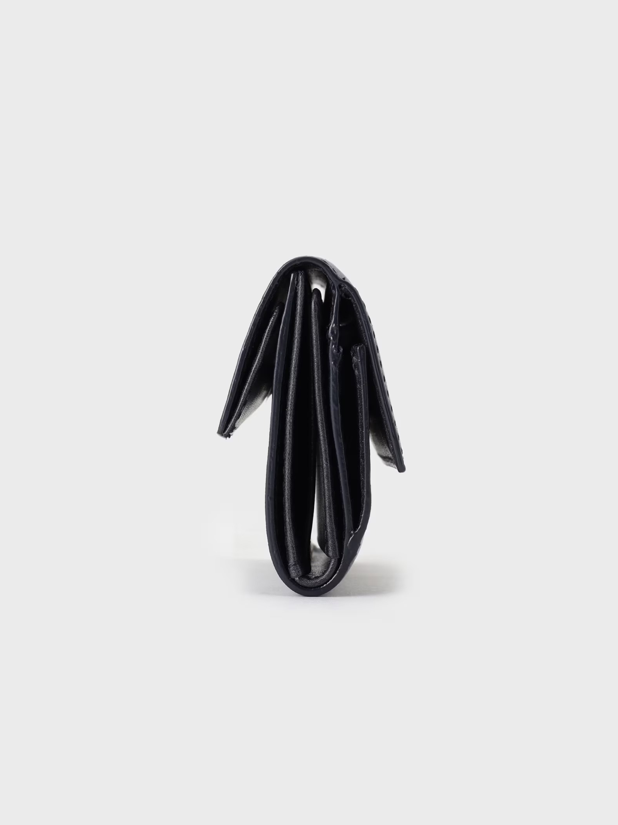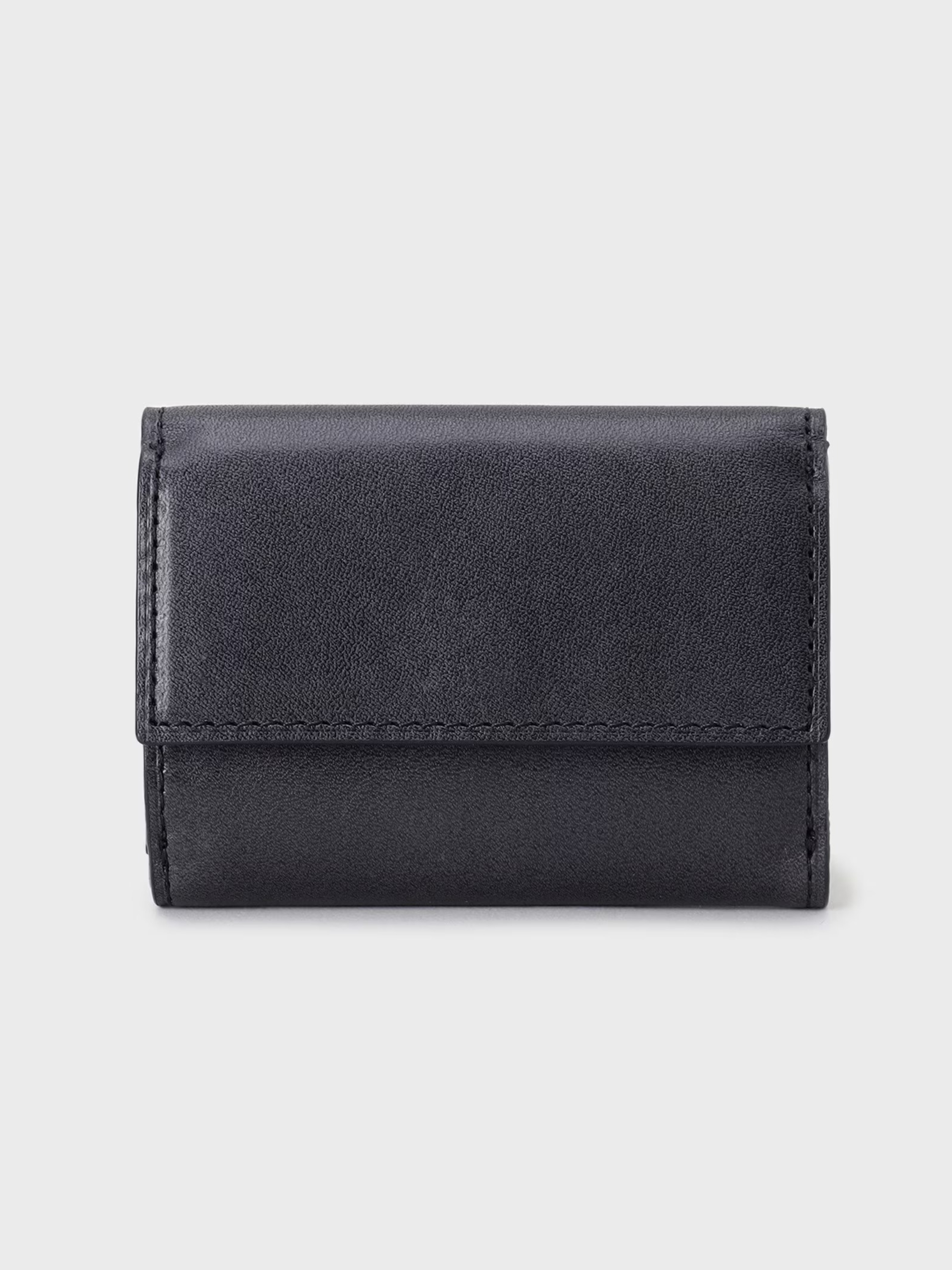 กระเป๋าสตางค์สามพับขนาดกะทัดรัดที่หรูหรา ใช้หนังเรียบโปร่งแสงทั้งสองด้าน ออกแบบมาให้ใส่ธนบัตร เหรียญ และบัตรได้ในปริมาณที่เหมาะสมในขนาดกระทัดรัดพอดีมือ เป็นกระเป๋าสตางค์ที่ตอบโจทย์ไลฟ์สไตล์ยุคใหม่