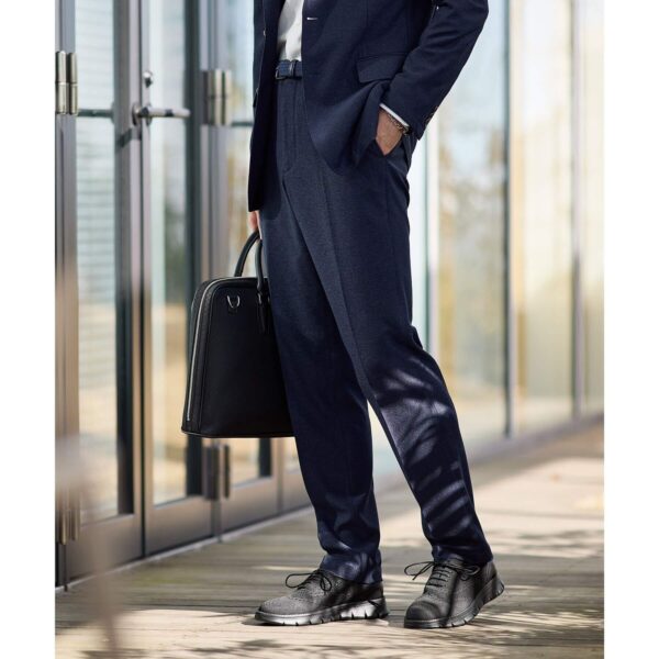 กางเกงจากซีรีส์ยอดนิยม “Oshu Jersey” ย้อมและทอด้วยเส้นใยโพลีเอสเตอร์ผสมลินิน กางเกงรุ่นนี้สามารถสวมใส่ได้ทั้งในวันทำงาน และวันหยุด ด้วยการออกแบบที่พิถีพิถันและความรู้สึกสบายขณะสวมใส่