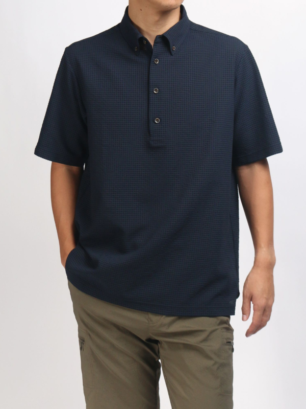 เสื้อโปโล ผ้า polyester primeflex dotair เป็นผ้าที่นิยมของลูกค้า TAKEO KIKUCHI ผ้านิ่ม ใส่สบาย มีคุณสมบัติ Quick Dry (แห้งเร็ว) ทำให้ระบายอากาศได้ดี ด้วยโครงสร้างที่เป็น Mesh เหมาะกับฤดูฝน, 2Way stretch (ยืด 2 ด้าน) เหมาะกับการเคลื่อนไหว และ Crease resistant (ยับยาก) ด้วยดีไซน์ที่เป็น button down collar สามารถแมชต์กับ necktie แล้วใส่คู่กับ City setter เพื่อให้เป็นลุค Business ได้