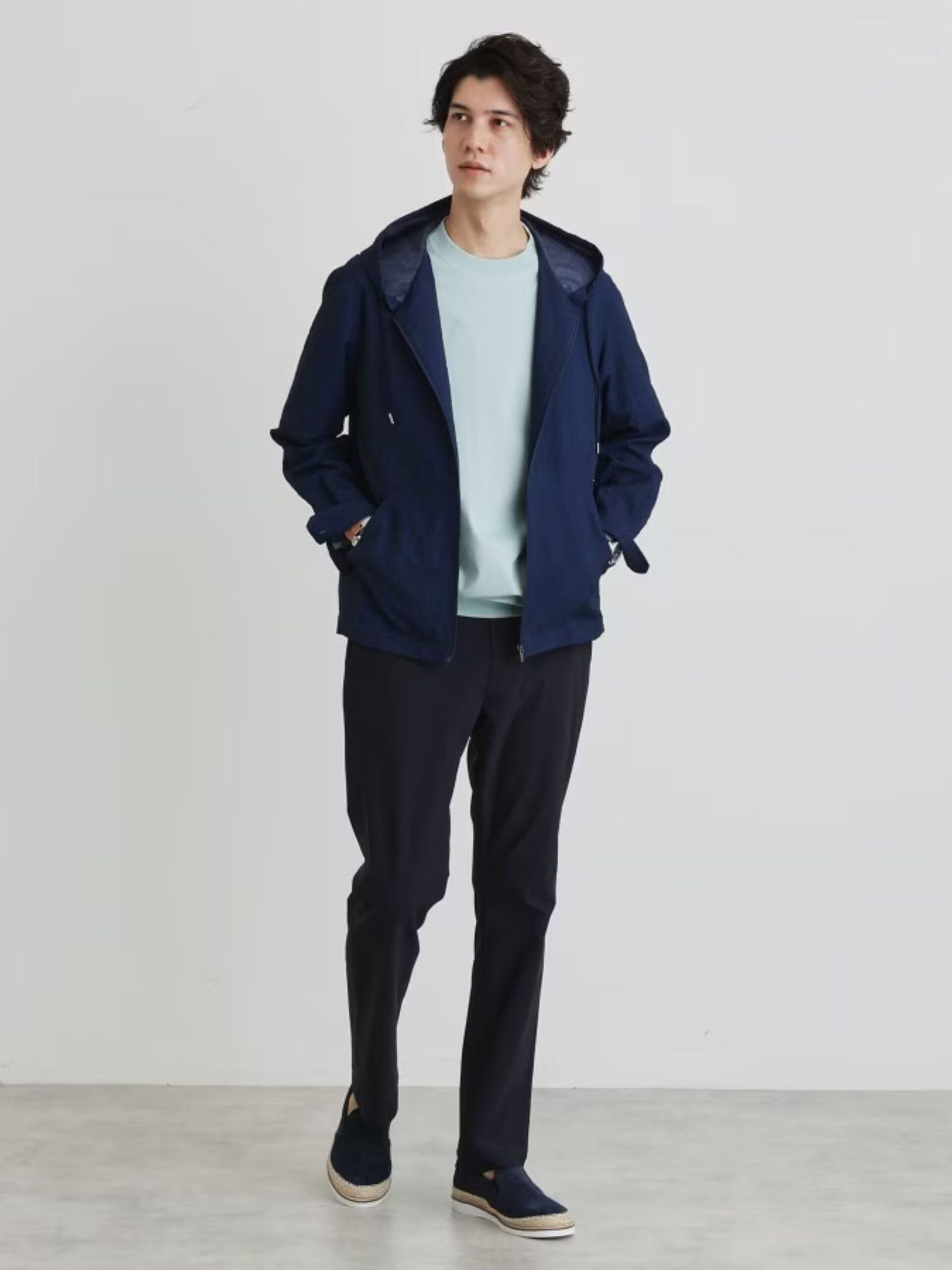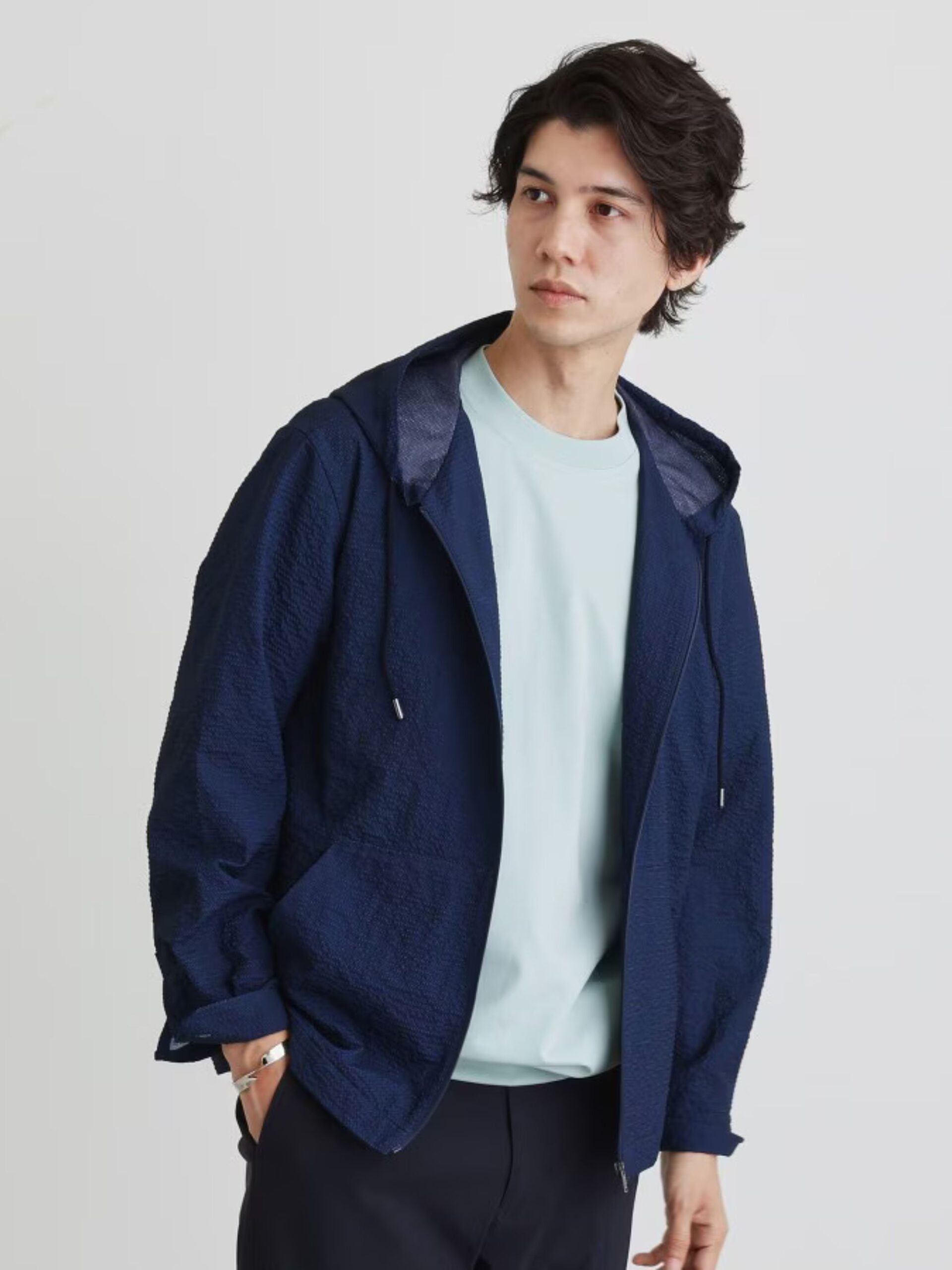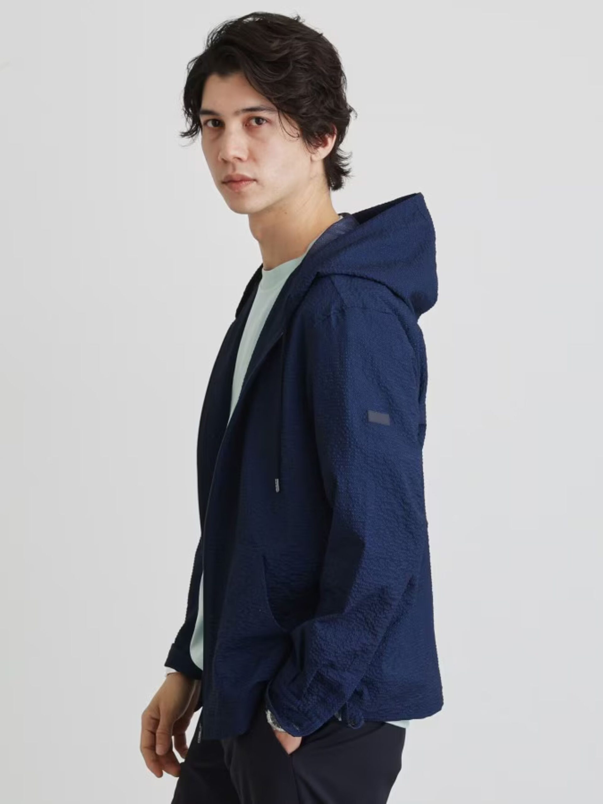 เสื้อเชิ้ตพาร์การุ่นนี้ผลิตจากผ้า Ripple ซึ่งเป็นผ้ายอดนิยมสำหรับหน้าร้อน ด้วยพื้นผิวที่มีลอนนูน ให้ความรู้สึกคล้ายผ้า Seersucker เพิ่มลูกเล่นให้กับเสื้อผ้าอย่างมีเอกลักษณ์ เอฟเฟกต์ลาย Melange Oxford Print ช่วยเพิ่มความหรูหราให้กับตัวผ้า พื้นผิวที่ไม่เรียบยังให้สัมผัสสบายเมื่อสวมใส่และถือเป็นดีไซน์ในตัวเอง เนื้อผ้าโพลีเอสเตอร์น้ำหนักเบา ช่วยให้สวมใส่สบายและโปร่ง ไม่อึดอัด ดีไซน์ที่อ้างอิงจากเสื้อเชิ้ตยังทำให้ได้ซิลูเอตที่ดูเรียบเนี้ยบกว่าพาร์กาที่ทำจากผ้าเจอร์ซี่ทั่วไป ด้านในหมวกมีซับเป็นผ้าตาข่าย ช่วยลดน้ำหนักเสื้อและระบายความชื้นได้ดี แห้งไว เนื้อผ้าที่บาง เบา และไม่ยับง่าย ดูแลรักษาง่าย