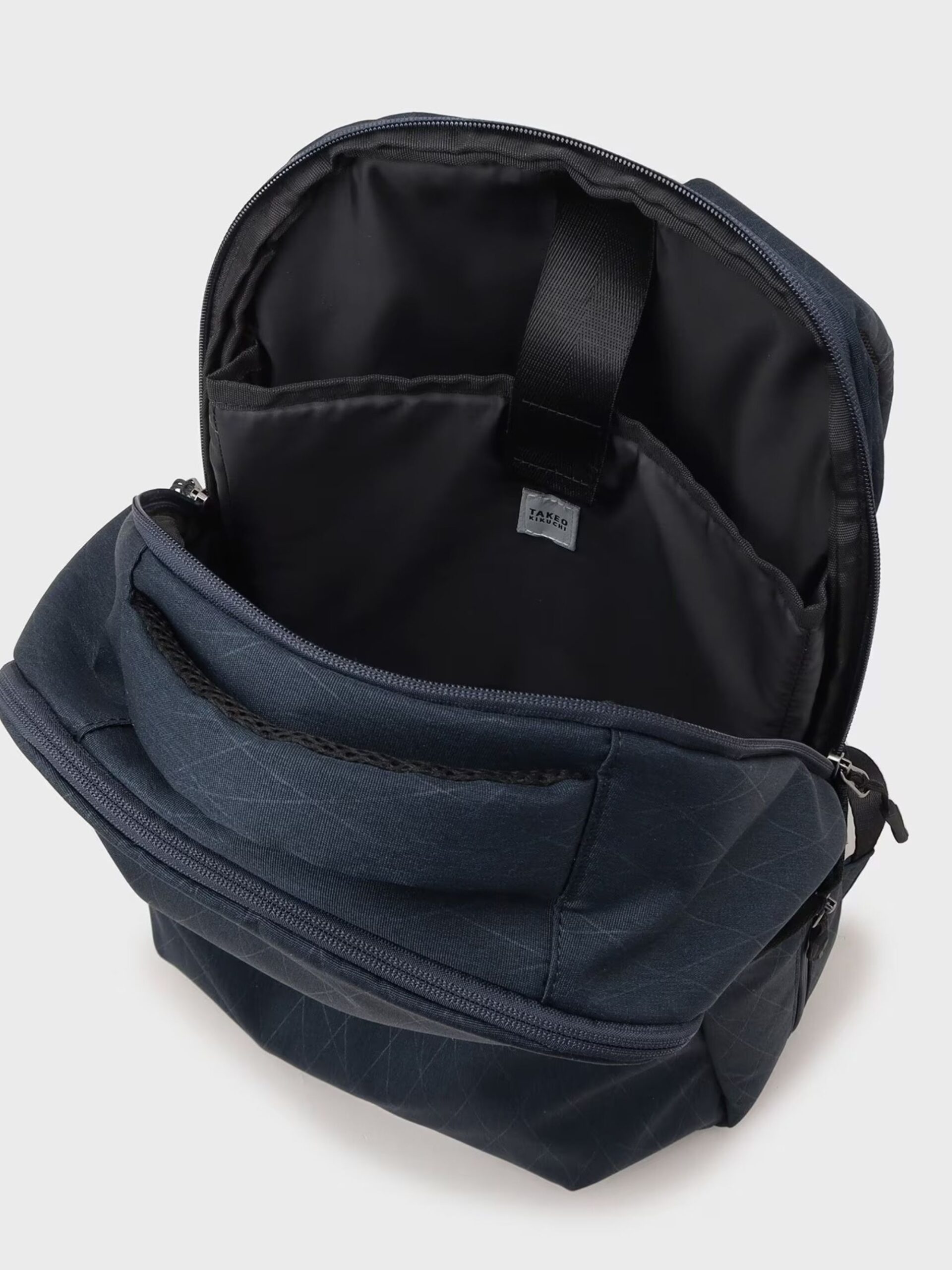 เมื่อเปิดซิปด้านหน้าจะพบช่องกระเป๋า neoprene และช่องซิป ส่วนภายในช่องหลักจะมีช่องสำหรับใส่แล็ปท็อป ช่องซิป และช่องเล็กๆเพื่อจัดเก็บสิ่งของได้สะดวก ภายนอกมีการออกแบบที่ไม่ฉูดฉาดเกินไป ใช้วัสดุน้ำหนักเบาที่มีลวดลายเงา ส่วนวัสดุด้านในมีความบางและนุ่ม เพิ่มความลงตัวและภาพลักษณ์ที่ดูอ่อนโยน สามารถเข้ากับการแต่งกายทั้งวันทำงานและวันหยุด ใส่ใจในฟังก์ชันการจัดเก็บ มีช่องกระเป๋าที่ใช้งานสะดวก เช่น ช่องที่มองเห็นของด้านในได้ง่าย และช่องซิปด้านข้างที่สามารถใส่ขวดน้ำหรือร่มพับได้