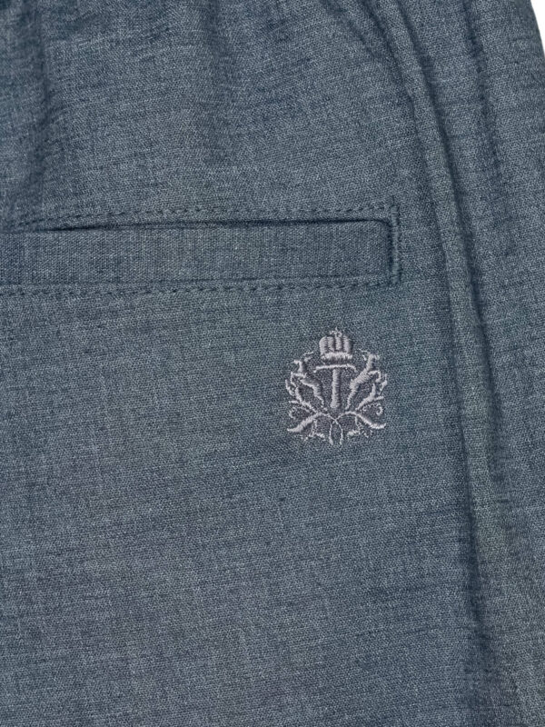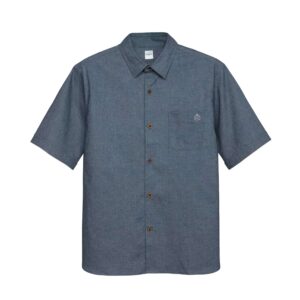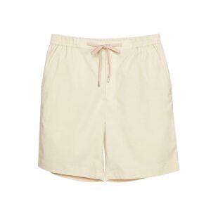 กางเกงขาสั้น ใย Organic hemp ให้ความรู้สึก summer และมีความทนทาน ส่วน Polyester ที่เลือกใช้ เป็น Recycled polyester + PU ทำให้ยืดและใส่สบาย มีคุณสมบัติ UV protection, Quick dry และ Cool Touch กางเกงทรงกว้างใส่สบาย ยางยืดรอบเอวและความยาวอยู่ประมาณเข่า กระดุมเข้าชุดกับเสื้อ