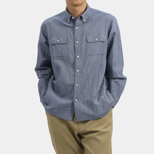 เสื้อเชิ้ตแขนยาวทรง Semi Oversize พร้อมปกแบบ Button-Down ผลิตจากผ้า Linen ผสม Cotton และ Polyester ซึ่งเป็นเนื้อผ้ายอดนิยมของแบรนด์ เนื่องจากให้สัมผัสที่เป็นธรรมชาติ สวมใส่สบาย และมีความยับในตัวอยู่แล้ว จึงไม่จำเป็นต้องรีด เสื้อเชิ้ตตัวนี้เน้นการโชว์ Texture ของผ้า มีน้ำหนักเบาและให้ความรู้สึกเย็นสบาย มาพร้อม กระเป๋าที่อกและกระเป๋าด้านข้าง เพิ่มดีเทลด้วย การเดินด้ายสีตัดกัน บริเวณฝากระเป๋า ปากกระเป๋าเอว รังดุมที่ฝากระเป๋า และบริเวณข้อมือ นอกจากนี้ยังใช้ กระดุมคุณภาพนำเข้าจากญี่ปุ่น เพิ่มความพรีเมียมให้กับดีไซน์