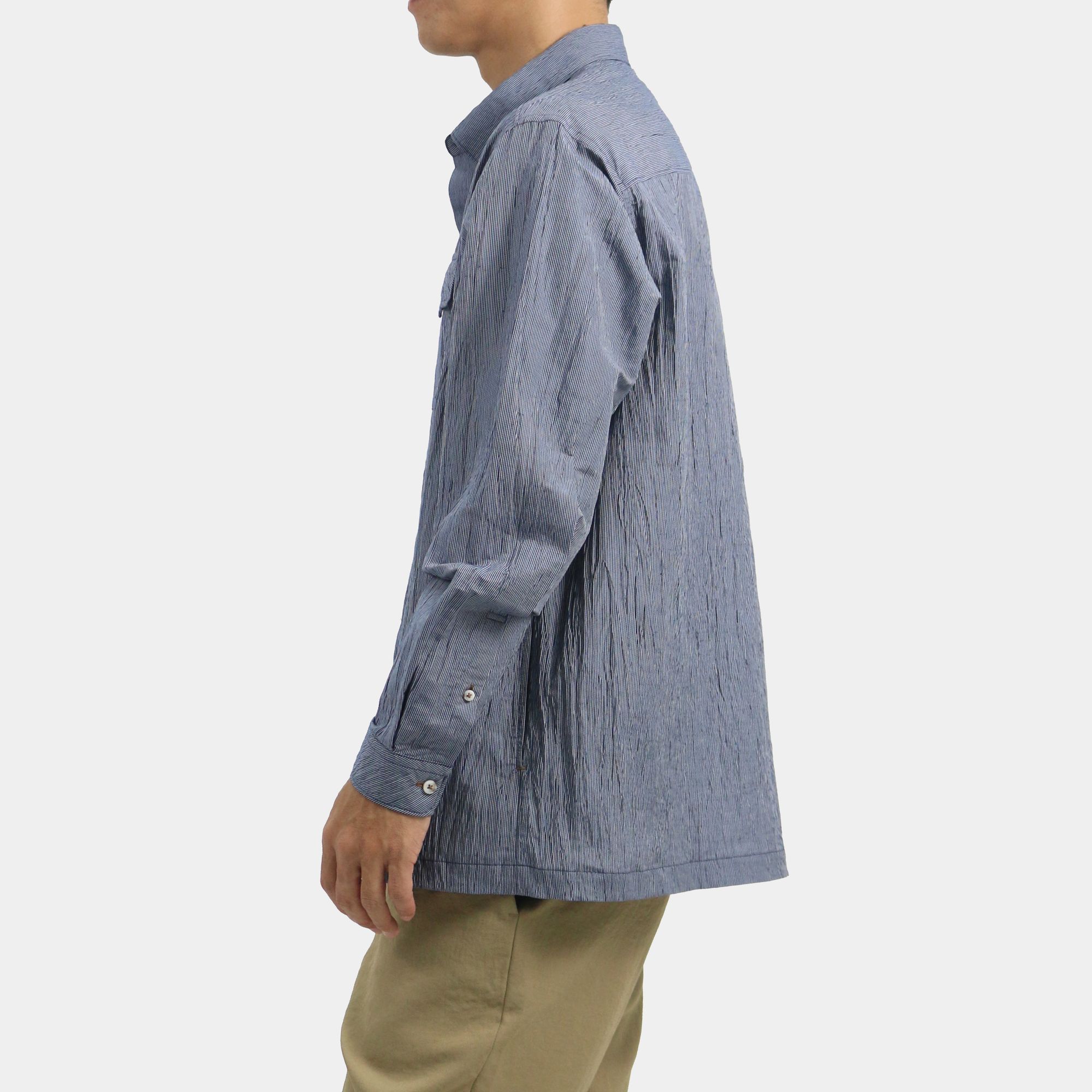 NAVY STRIPE TEXTURED STRIPE CHECK OVERSIZED SHIRT (K8189201)