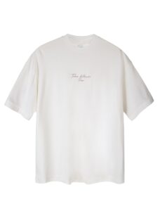 เสื้อยืดคอกลม ผลิตจากผ้าเจอร์ซีย์เนื้อเด้ง นุ่ม และใส่สบาย พร้อมคุณสมบัติ Kickback ดีเยี่ยม โรงทอแจ้งว่าผ้ามีคุณสมบัติ Anti-Pilling ซึ่งช่วยลดการเกิดขนบนผ้าหลังการสวมใส่ มีงานปักกลางอกเสื้อยืด เป็นลายเหมือนงาน K81-32401