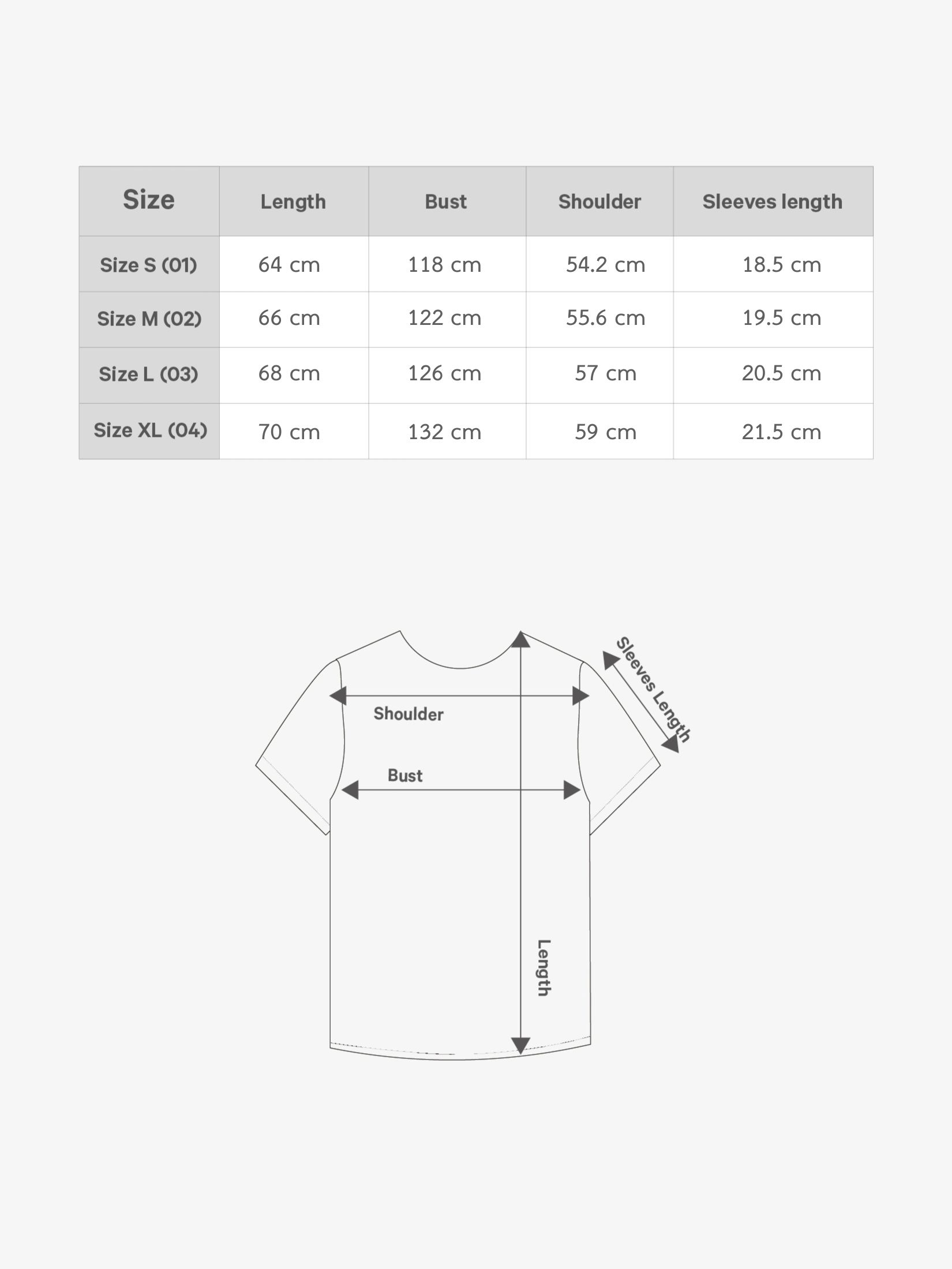 SIZE: S (01) รอบอก 118 cm, ความยาวเสื้อ 64 cm, ไหล่กว้าง 54.2 cm, ความยาวแขน 18.5 cm