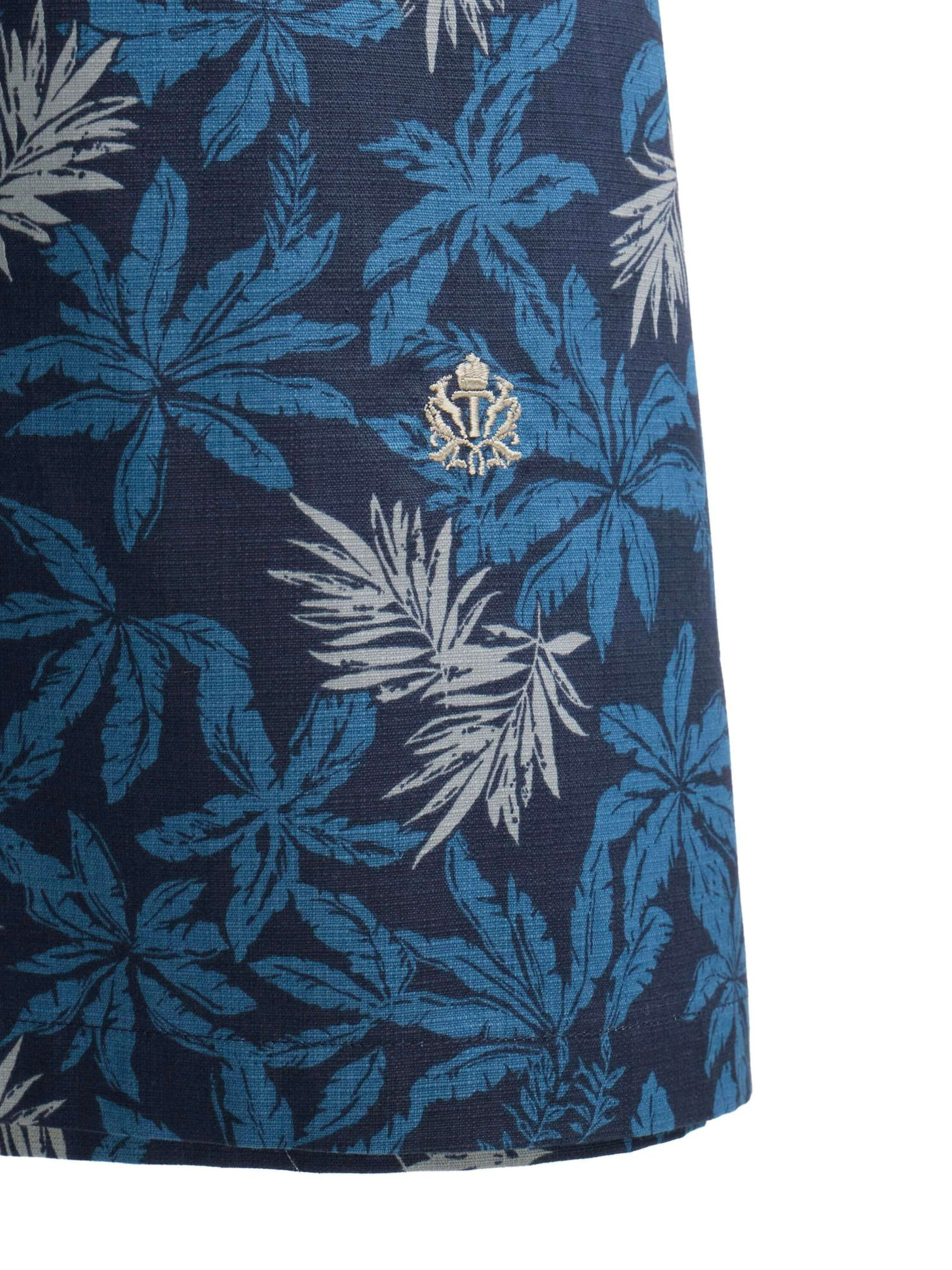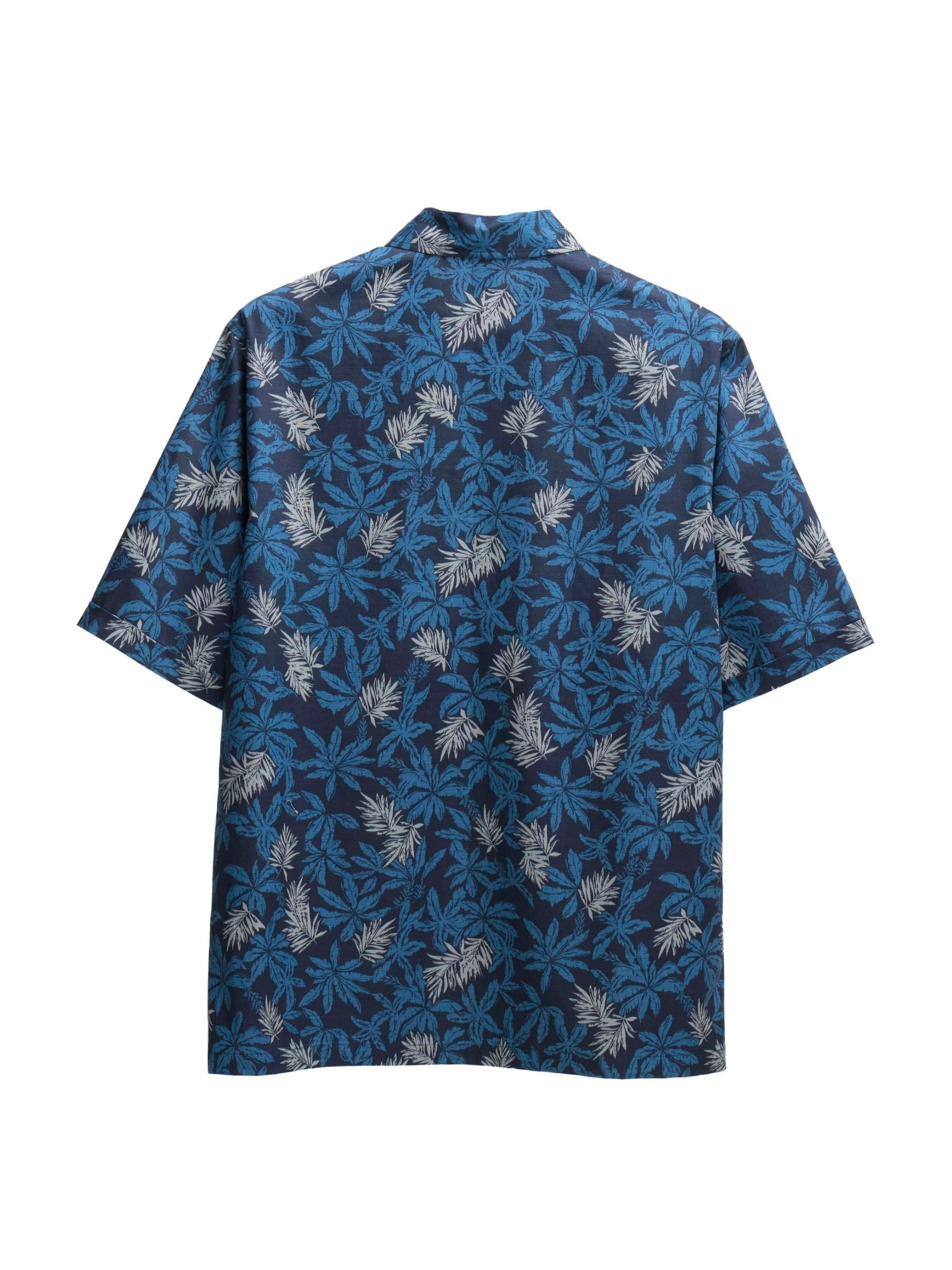 NAVY TROPICAL PRINTED BUTCHER COTTON ZIPPER SHIRT (K8182204)
