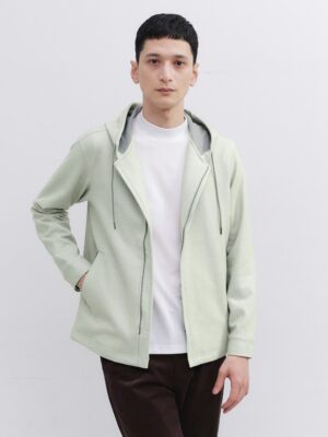 แจ็กเก็ตผ้าถักโครงรังผึ้งรุ่นใหม่จากซีรีส์ Oshu Jersey รุ่นยอดนิยม ผลิตจากผ้าเจอร์ซีย์ถักสองชั้น ใช้เส้นใยโพลีเอสเตอร์และขนแกะทอผสมกัน ตั้งแต่ขั้นตอนการถักจนถึงการฟินิชชิ่ง ผลิตที่เมืองโอชู หนึ่งในแหล่งผลิตผ้าขนแกะชั้นนำของญี่ปุ่น เส้นใยขนแกะที่ทอผสมให้ความเงางามแบบพรีเมียม สัมผัสเรียบลื่น และเนื้อผ้าที่คงรูปได้ดี ดูภูมิฐาน ส่วนด้านในเป็นโพลีเอสเตอร์ 100% ให้ความรู้สึกนุ่มลื่นสบายผิว