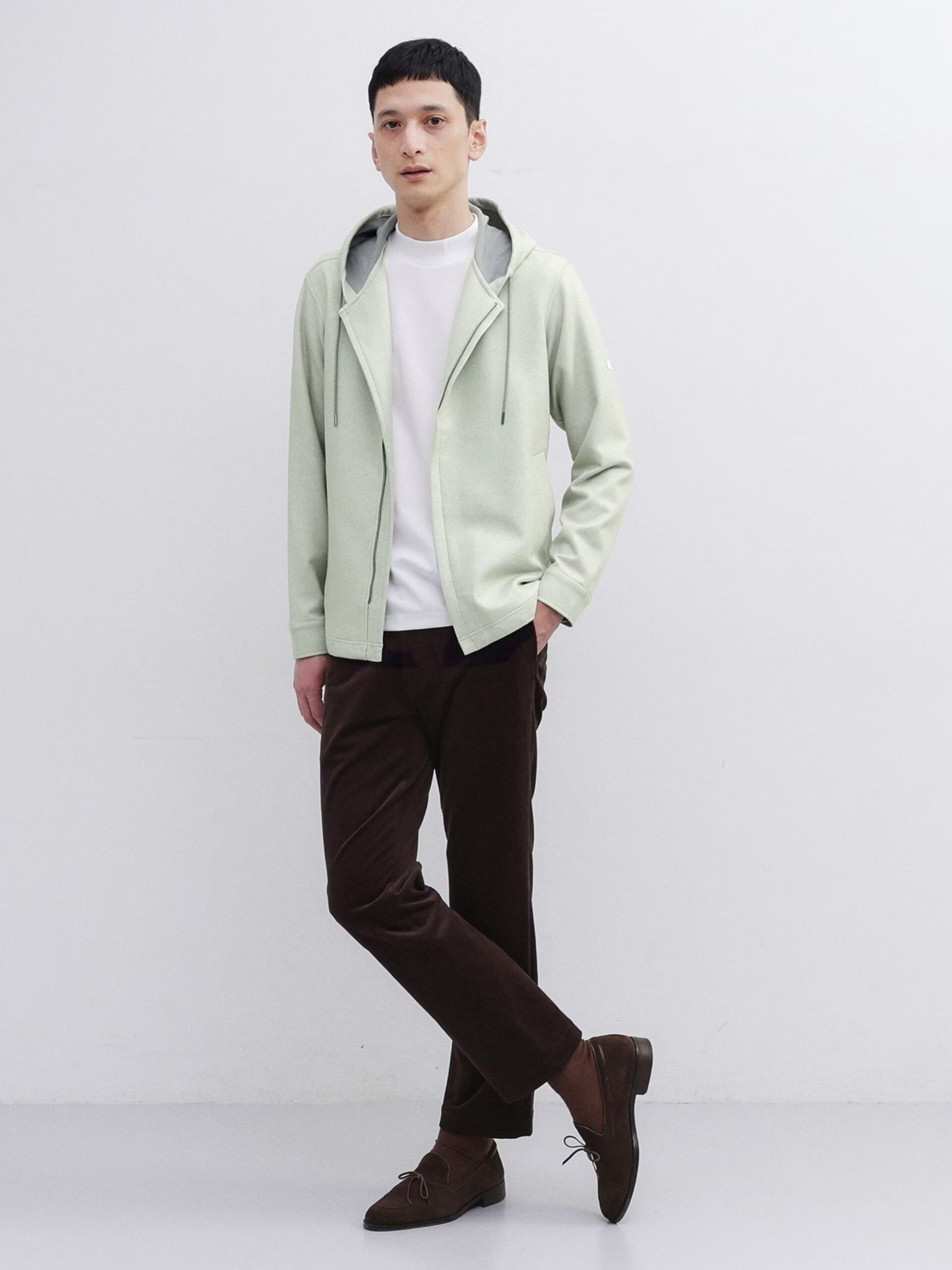ด้วยสีและพื้นผ้าที่แมตช์ง่าย ทำให้แจ็กเก็ตตัวนี้สามารถเข้าคู่กับกางเกงได้หลากหลายสไตล์ สีที่แนะนำในซีซันนี้คือ น้ำตาล และ ดำ โดยเฉพาะอย่างยิ่ง การใส่เป็นเซ็ตคู่กับกางเกงผ้าเดียวกันจะให้ลุคที่สมบูรณ์แบบ เหมาะได้ทั้งโอกาสทางการและลำลอง สามารถใส่คู่กับเสื้อเจอร์ซีย์ (รุ่น 931-84500) หรือเสื้อคอ Mock Neck (รุ่น 931-33906)