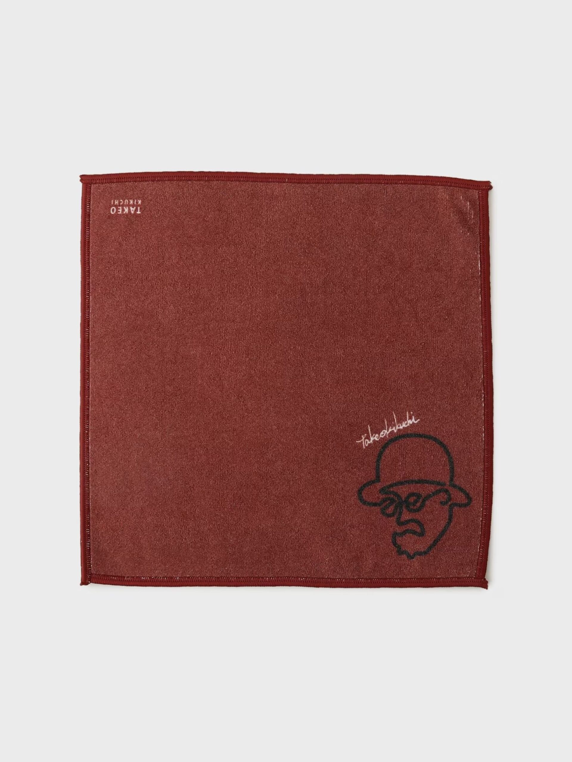 ผ้าเช็ดหน้าผ้าขนหนูพิมพ์ลายสไตล์ศิลปะ พร้อมภาพวาดพอร์เทรตของ Take-sensei ซึ่งเป็นชื่อเดียวกับแบรนด์ เนื้อผ้ามีพื้นผิวเรียบเนียน ไม่มีความขรุขระ ทำให้สามารถพิมพ์ลวดลายและภาพถ่ายได้อย่างสวยงาม ด้านหนึ่งของผ้าออกแบบให้เป็นผ้าเช็ดทำความสะอาดพกพา สามารถใช้เช็ดทำความสะอาดได้สะดวก แม้ขณะเดินทาง