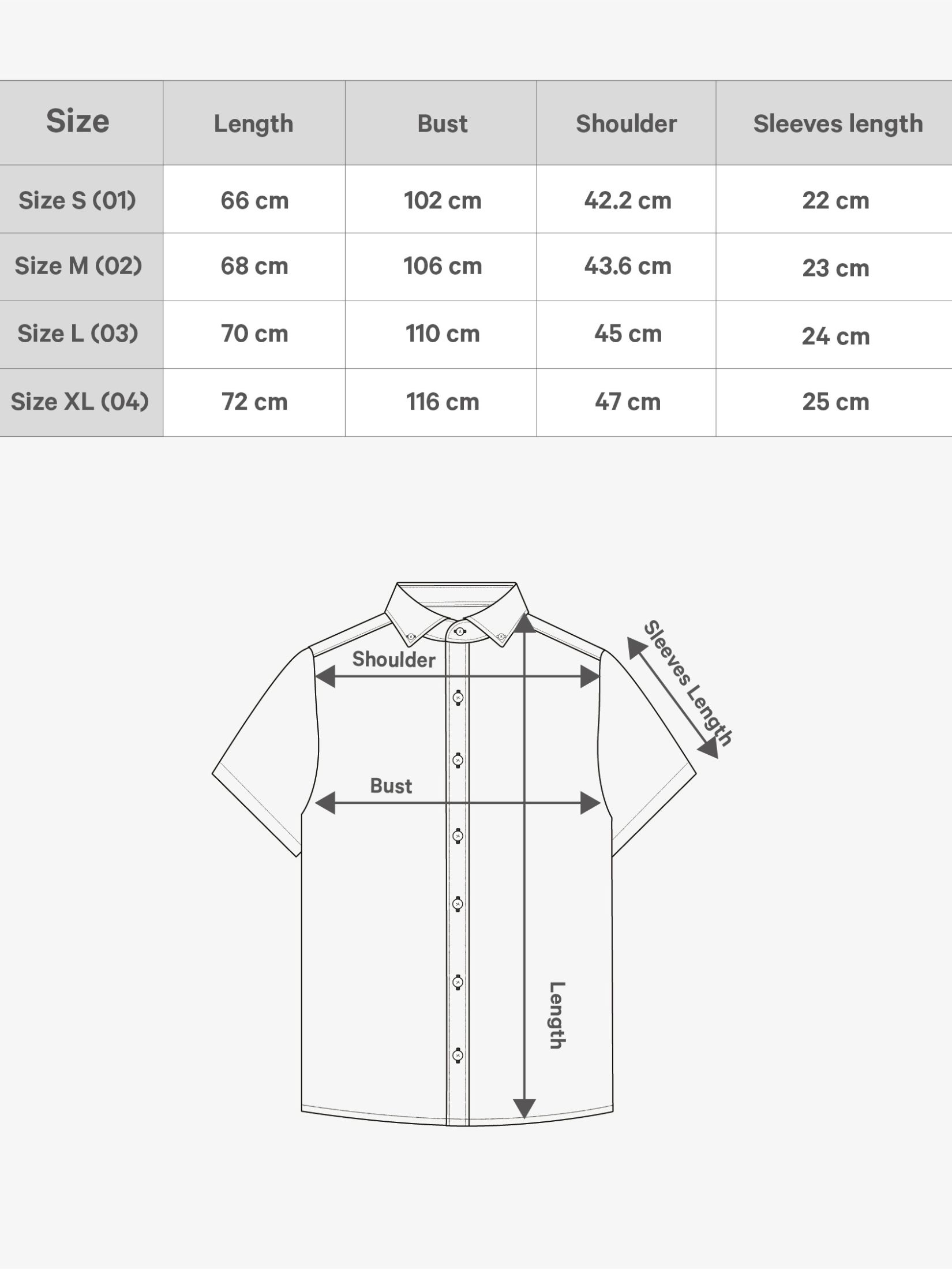 SIZE: S (01) รอบอก 102 cm, ความยาวเสื้อ 66 cm, ไหล่กว้าง 42.2 cm, ความยาวแขน 22 cm